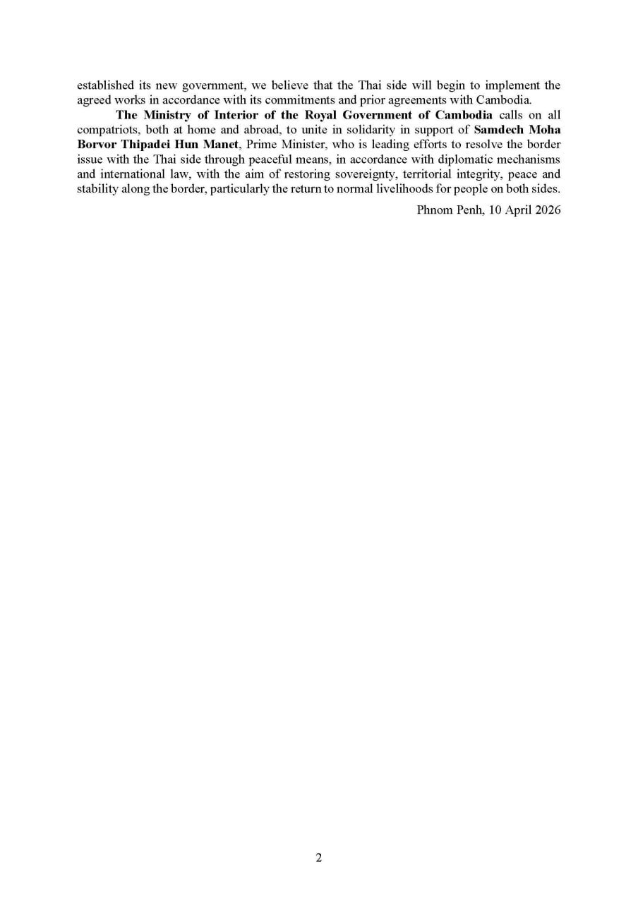 ខាងក្រោមនេះ ជាសេចក្ដីប្រកាសព័ត៌មានរបស់ក្រសួងមហាផ្ទៃ៖