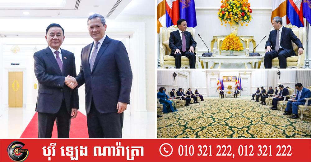 (ភ្នំពេញ)៖ នាព្រឹកថ្ងៃទី១០ ខែមេសា ឆ្នាំ២០២៦ សម្ដេចមហាបវរធិបតី ហ៊ុន ម៉ាណែត នាយករដ្ឋមន្ត្រីនៃកម្ពុជា បានជួបពិភាក្សាការងារជាមួយលោក ត្រិន កឹមទូ សមាជិកការិយាល័យនយោបាយ និងជាសមាជិកប្រចាំការគណៈលេខាធិការមជ្ឈិមបក្សកុម្មុយនីស្តវៀតណាម នៅវិមានសន្តិភាព។