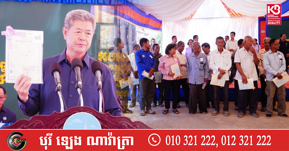 ក្រសួងរៀបចំដែនដី និងរដ្ឋបាលខេត្តកណ្ដាល ចែកប្លង់ដីជាង ៦ពាន់ប័ណ្ណជូនពលរដ្ឋ៦ភូមិ ស្ថិតនៅស្រុកល្វាឯម