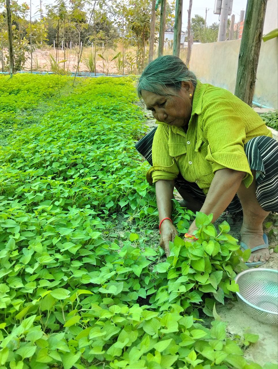 អ្នកស្រីបន្ថែមថា បន្លែបង្ការរួមមាន៖ ស្លឹកខ្ទឹម ជីគ្រប់មុខ ឃ្លោក និងននោង រួមទាំងការចិញ្ចឹមខ្យង និងមាន់ អាចធ្វើជាម្ហូបអាហារប្រចាំថ្ងៃបាន ស្ទើរតែមិនចាំបាច់ទិញពីខាងក្រៅ និងអាចលក់ដូរបានជាបន្តបន្ទាប់ដើម្បីផ្គត់ផ្គង់ជីវភាព។ លើសពីនេះ អ្នកស្រីក៏មានគម្រោងសាងសង់កន្លែងសម្រាប់ចិញ្ចឹមបង្កងបន្ថែមទៀតនាពេលអនាគត។