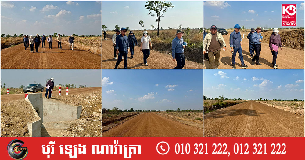 (ឧត្តរមានជ័យ)៖ លោកស្រី ឯក គន្ធវារី អនុរដ្ឋលេខាធិការ តំណាងដ៏ខ្ពង់ខ្ពស់លោក ឆាយ ឫទ្ធិសែន រដ្ឋមន្ត្រីក្រសួងអភិវឌ្ឍន៍ជនបទ អញ្ជើញដឹកនាំគណៈកម្មការអន្តរក្រសួង រួមមានក្រសួងអភិវឌ្ឍន៍ជនបទ និងក្រសួងសេដ្ឋកិច្ច និងហិរញ្ញវត្ថុ នៅថ្ងៃទី១០ ខែមេសា ឆ្នាំ២០២៦ បានចុះត្រួតពិនិត្យ និងវាយតម្លៃលទ្ធផលការងារស្ថាបនាផ្លូវក្រាលដីល្បាយក្រួស ចំនួន១ខ្សែ មាន ៤កំណាត់ ប្រវែងសរុប ៩ ០០០ម៉ែត្រ ទទឹង ៨ម៉ែត្រ កម្រាស់ ០,២ម៉ែត្រ សាងសង់លូមូលមុខមួយចំនួន ៦កន្លែង និងលូមូលមុខពីរចំនួន២កន្លែង ស្ថិតនៅទីតាំងដីសម្បទានសង្គមកិច្ច ក្នុងភូមិស្រះទឹកតេជោសែនជ័យ ឃុំចុងកាល់ ស្រុកចុងកាល់ ខេត្តឧត្តរមានជ័យ អនុវត្តដោយក្រុមហ៊ុន វិស្វកម្ម សំណាងខនស្ត្រាក់សិន។