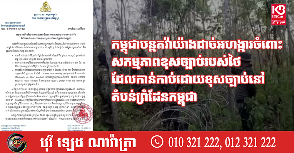 កម្ពុជាបន្ដតវ៉ាយ៉ាងដាច់អហង្ការចំពោះសកម្មភាពខុសច្បាប់របស់ថៃ ដែលកាន់កាប់ដោយខុសច្បាប់នៅតំបន់ព្រំដែនកម្ពុជា (Video inside)