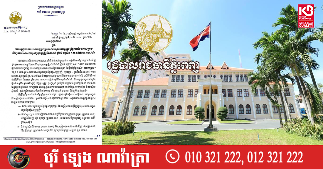 ខាងក្រោមនេះ ជាសេចក្ដីជូនដំណឹងរបស់រដ្ឋបាលរាជធានីភ្នំពេញ៖