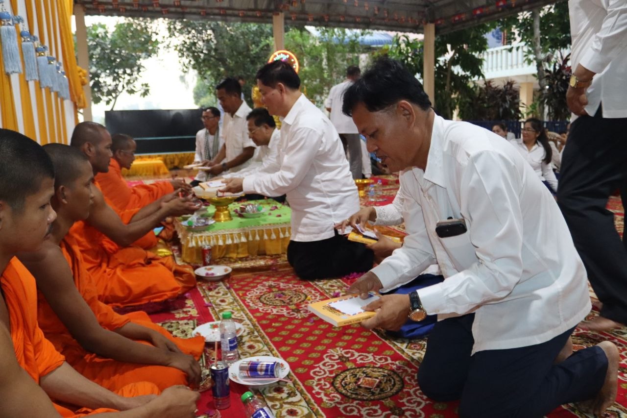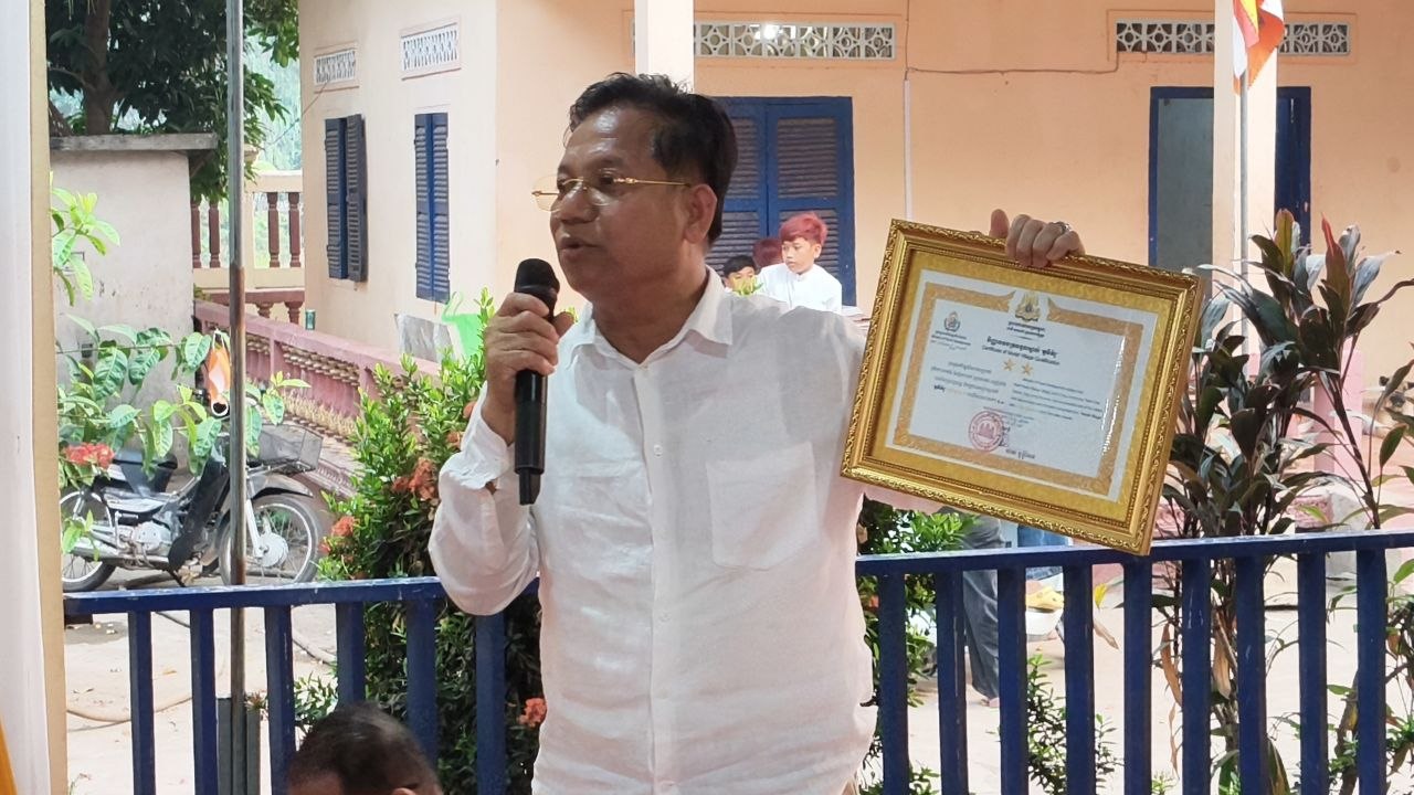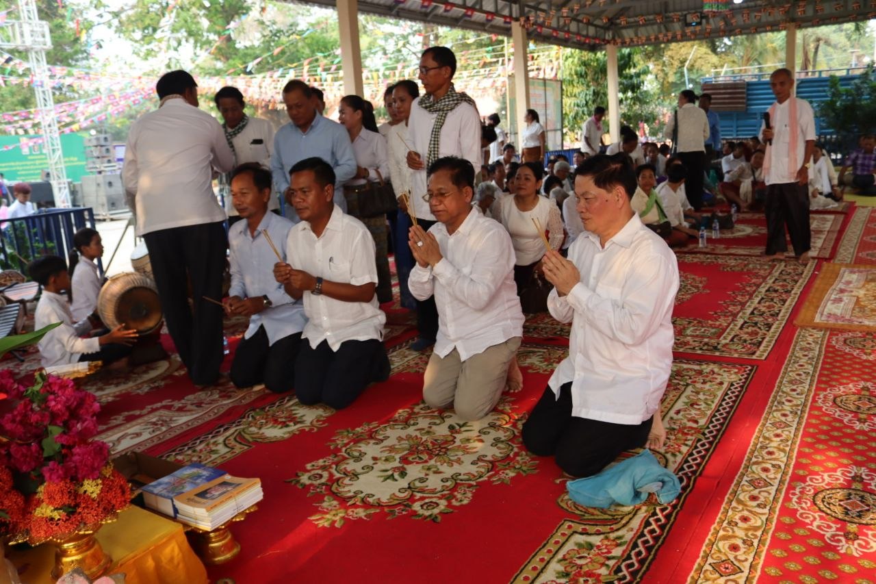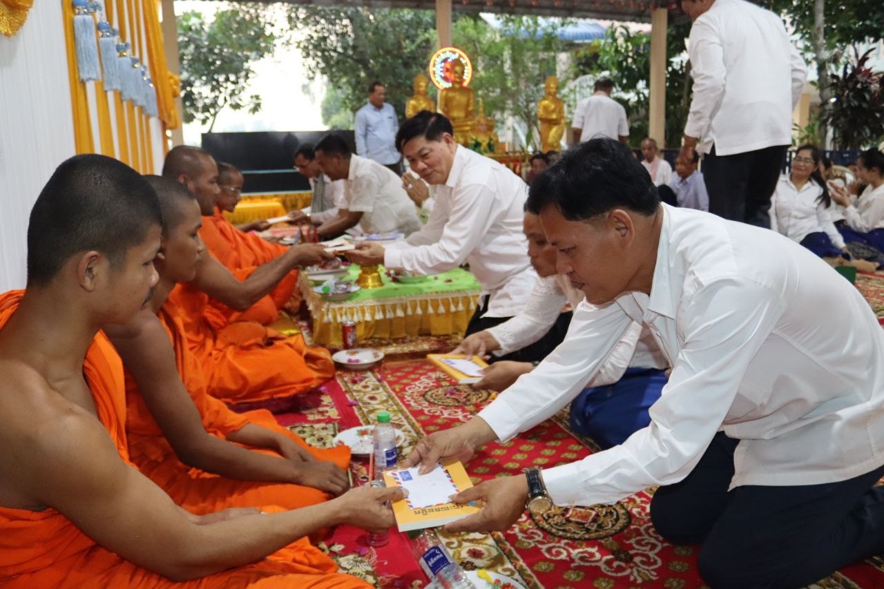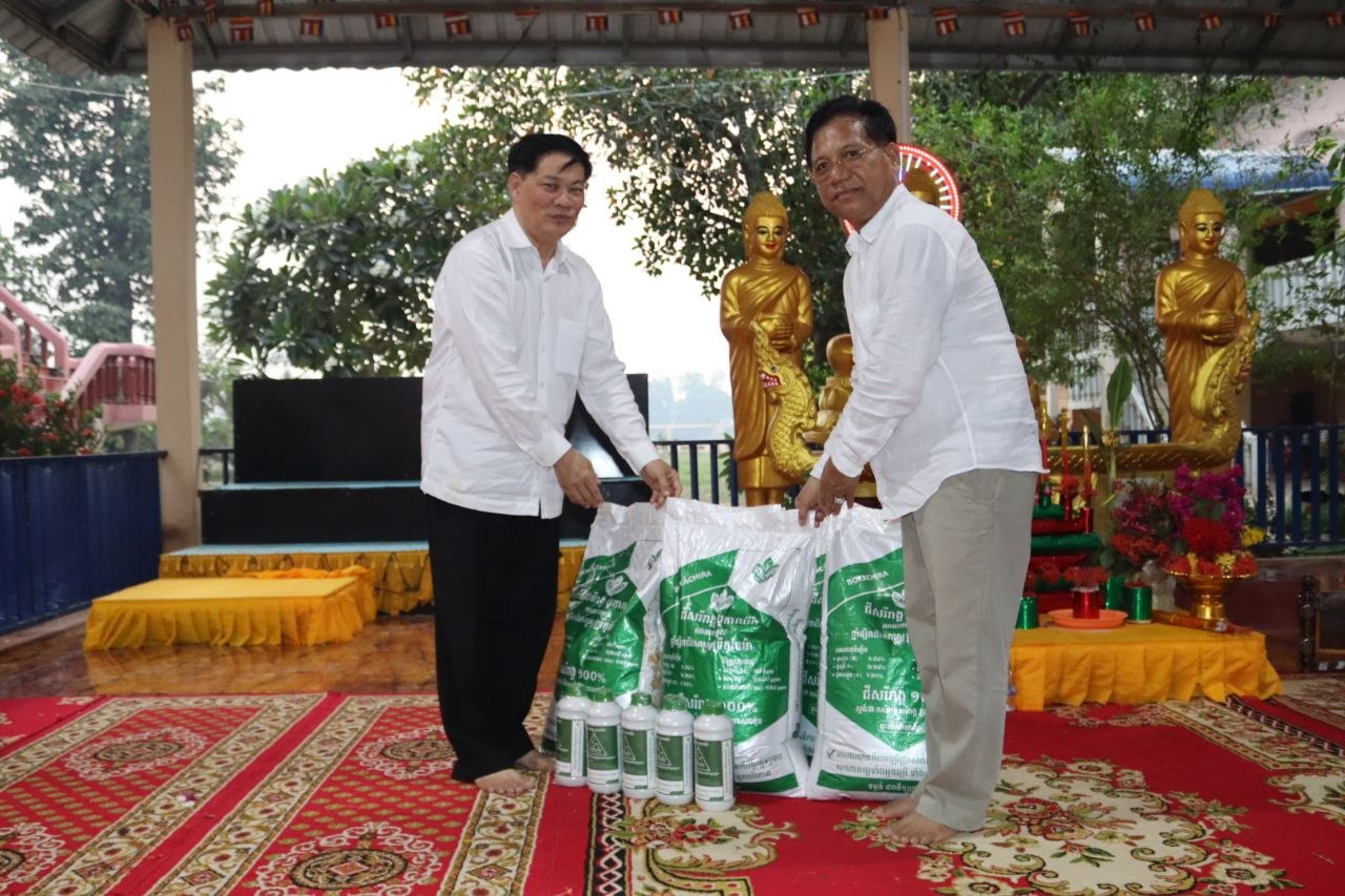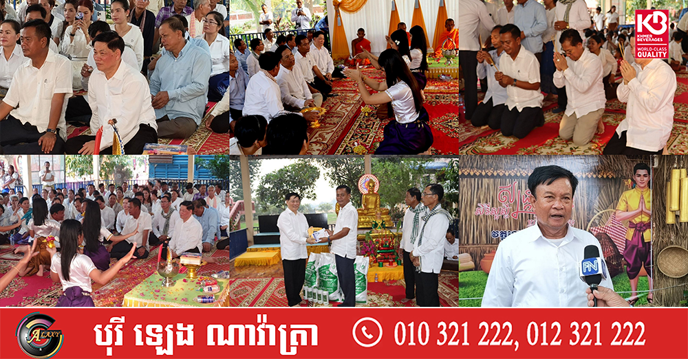 (ព្រៃវែង)៖ លោក ឡុក វុឌ្ឍី ប្រធានមន្ទីរអភិវឌ្ឍន៍ជនបទខេត្តព្រៃវែង និងមហាឧបាសកពុទ្ធសាសនូបត្ថម្ភក៍ អៀង សុធារ៉ា ទីប្រឹក្សាគណៈសង្ឃនាយក គណៈមហានិកាយនៃព្រះរាជាណាចក្រកម្ពុជា និងជាប្រធានសមាគមពាណិជ្ជកម្ម និងវិនិយោគកម្ពុជា-ជប៉ុន នៅរសៀលថ្ងៃទី៩ ខែមេសា ឆ្នាំ២០២៦ បានអញ្ជើញដឹកនាំរៀបចំពិធីបុណ្យអបអរសាទរ ភូមិកោះពាមរាំង ទទួលបានជាភូមិគំរូកម្រិតផ្កាយ២ ទូទាំងប្រទេស។