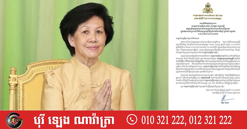 ទូលព្រះបង្គំ សូមសម្តែងនូវការកោតសរសើរចំពោះ សម្តេចរាជបុត្រីព្រះអនុជ ដែលបានខិតខំប្រឹងប្រែង យ៉ាងសកម្ម និងលះបង់កម្លាំងកាយចិត្ត ក្នុងការបំពេញភារកិច្ចថ្វាយ សម្តេចព្រះមហាក្សត្រី ព្រះវររាជ មាតាជាតិខ្មែរ ជាទីគោរពសក្ការៈដ៏ខ្ពង់ខ្ពស់បំផុត និងបានចូលរួមជ្រោមជ្រែងស្ថាប័ននីតិប្បញ្ញត្តិឱ្យទទួលបាន លទ្ធផលដ៏ត្រចះត្រចង់ និងបានរួមចំណែកយ៉ាងសំខាន់ជួយឱ្យប្រជាជនកម្ពុជារស់ក្រោមម្លប់សុខសន្តិភាព សុវត្ថិភាព និងមានការអភិវឌ្ឍឥតឈប់ឈរ។ សម្តេចរាជបុត្រីព្រះអនុជ តែងខិតខំប្រឹងប្រែងលើកតម្កើងតម្លៃ និងតួនាទីរបស់ស្ត្រីកម្ពុជាឱ្យមានការយល់ដឹង និងទទួលស្គាល់ពីគ្រប់មជ្ឈដ្ឋានជាតិ និងអន្តរជាតិដែលជាគំរូដ៏ ល្អប្រពៃដល់ការប្រតិបត្តិសម្រាប់យុវជន យុវនារីជំនាន់ក្រោយ។