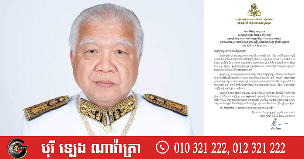(ភ្នំពេញ)៖ សម្តេចអគ្គមហាសេនាបតីតេជោ ហ៊ុន សែន ប្រមុខរដ្ឋស្តីទីនៃកម្ពុជា បានផ្ញើសារលិខិតសារលិខិតថ្វាយព្រះពរ សម្តេចក្រុមព្រះ នរោត្តម ច័ក្រពង្ស់ ឧត្តមប្រឹក្សាផ្ទាល់ព្រះមហាក្សត្រ នៃព្រះរាជាណាចក្រកម្ពុជា ក្នុងឱកាសនៃព្រះរាជពិធីបុណ្យចូលឆ្នាំថ្មីប្រពៃណីជាតិខ្មែរ ឆ្នាំមមី អដ្ឋស័ក ព.ស.២៥៧០ គ.ស.២០២៦។