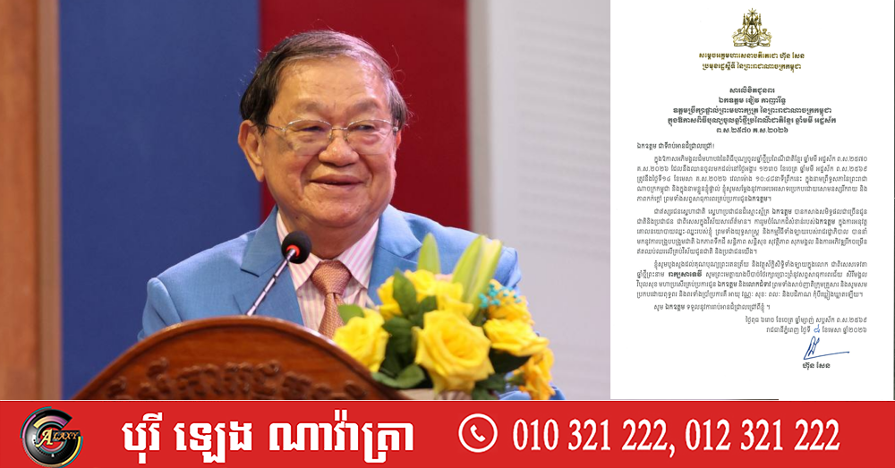 (ភ្នំពេញ)៖ សម្តេចអគ្គមហាសេនាបតីតេជោ ហ៊ុន សែន ប្រមុខរដ្ឋស្តីទីនៃកម្ពុជា បានផ្ញើសារលិខិតសារលិខិតជូនពរ ឯកឧត្តម ខៀវ កាញារីទ្ធ ឧត្តមប្រឹក្សាផ្ទាល់ព្រះមហាក្សត្រ នៃព្រះរាជាណាចក្រកម្ពុជា ក្នុងឱកាសពិធីបុណ្យចូលឆ្នាំថ្មីប្រពៃណីជាតិខ្មែរ ឆ្នាំមមី អដ្ឋស័ក ព.ស.២៥៧០ គ.ស.២០២៦។