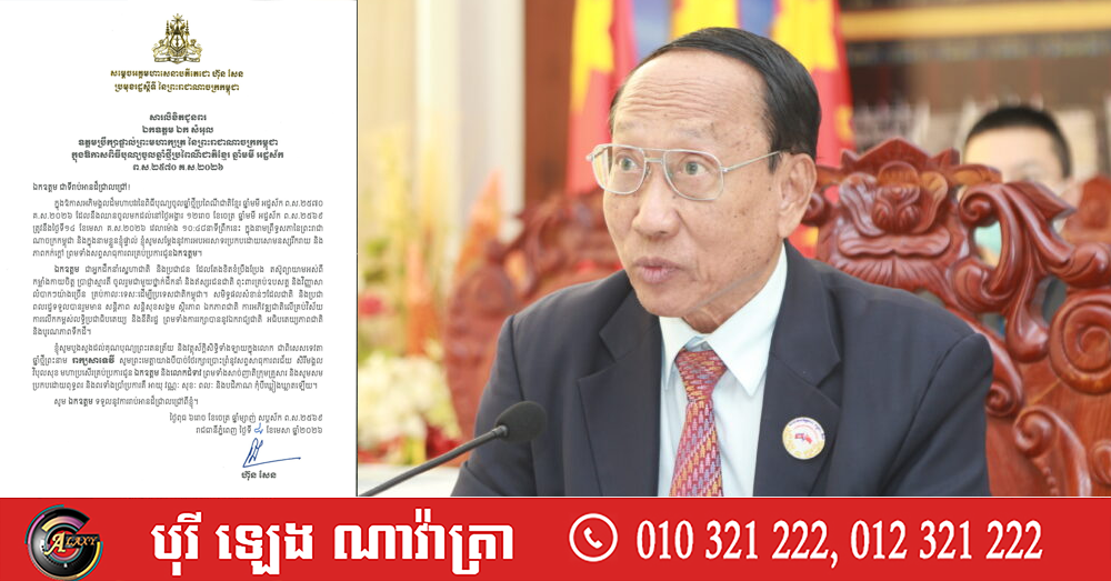 (ភ្នំពេញ)៖ សម្តេចអគ្គមហាសេនាបតីតេជោ ហ៊ុន សែន ប្រមុខរដ្ឋស្តីទីនៃកម្ពុជា បានផ្ញើសារលិខិតជូនពរ ឯកឧត្តម ឯក សំអុល ឧត្តមប្រឹក្សាផ្ទាល់ព្រះមហាក្សត្រ នៃព្រះរាជាណាចក្រកម្ពុជា ក្នុងឱកាសពិធីបុណ្យចូលឆ្នាំថ្មីប្រពៃណីជាតិខ្មែរ ឆ្នាំមមី អដ្ឋស័ក ព.ស.២៥៧០ គ.ស.២០២៦។