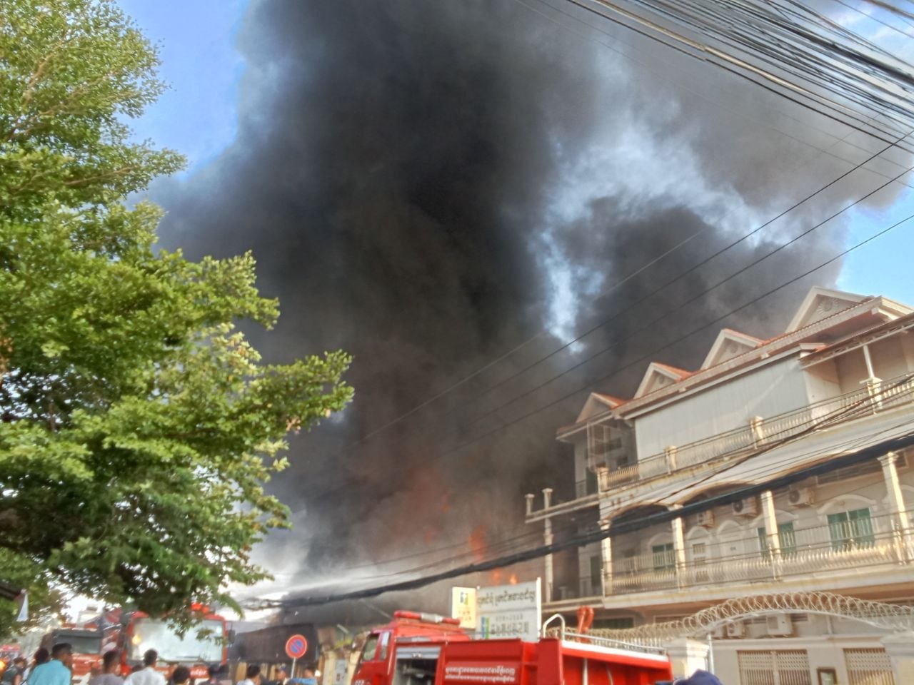 អគ្គីភ័យឆេះឃ្លាំងស្ដុកសម្ភារនៅសង្កាត់គោកឃ្លាង ខណ្ឌសែនសុខ សមត្ថកិច្ចប្រើប្រាស់ទឹកអស់៦៦ឡានទើបពន្លត់ទាំងស្រុង