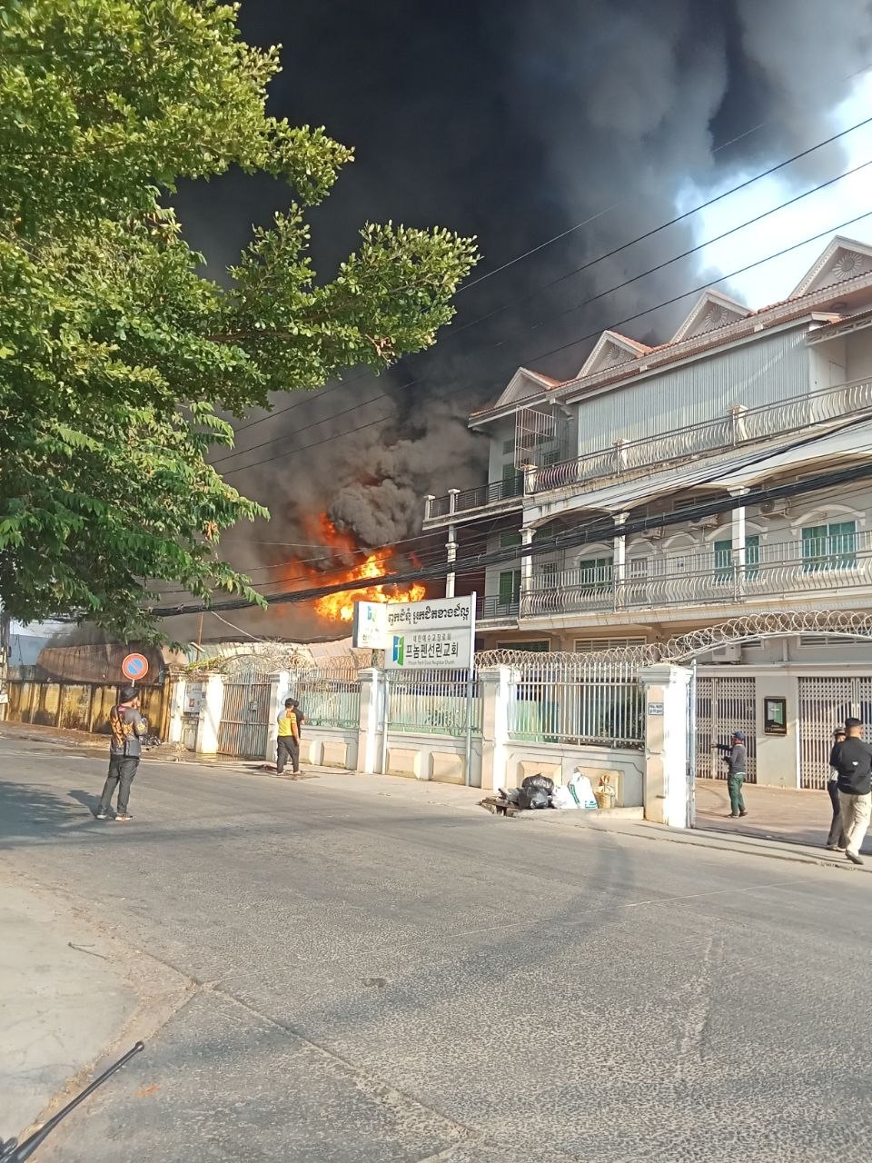 (ភ្នំពេញ)៖ នៅវេលាម៉ោង៤៖០៦នាទីល្ងាច ថ្ងៃទី១១ ខែមេសា ឆ្នាំ២០២៦ មានករណីអគ្គីភ័យមួយកន្លែងកើតឡើងនៅចំណុច ឃ្លាំងស្តុកសម្ភារ ផ្លូវ៧២P ភូមិរោងចក្រ សង្កាត់គោកឃ្លាង ខណ្ឌសែនសុខ រាជធានីភ្នំពេញ។
