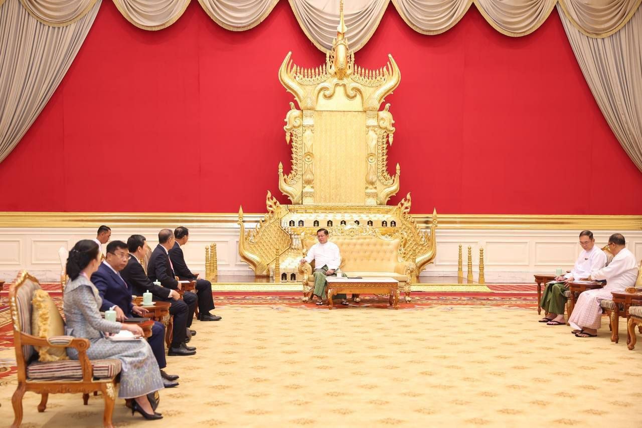 អញ្ជើញចូលរួមពីធីចូលកាន់តំណែងនេះ លោកកិត្តិសេដ្ឋាបណ្ឌិត ចម ប្រសិទ្ធ ឧត្តមប្រឹក្សាផ្ទាល់ព្រះមហាក្សត្រនៃព្រះរាជាណាចក្រកម្ពុជា និងជាប្រេសិតពិសេសរបស់រាជរដ្ឋាភិបាលកម្ពុជា ដើម្បីគាំទ្រដល់ការងារទំនាក់ទំនងអាស៊ាន និងគណៈប្រតិភូកម្ពុជា បានចូលជួបសម្តែងការគួរសមជាមួយលោក មីន អោងឡាំង ប្រធានាធិបតីមីយ៉ាន់ម៉ា និងមន្ត្រីសំខាន់ៗមួយចំនួនទៀត។