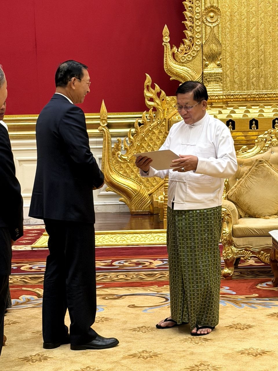 (មីយ៉ាន់ម៉ា)៖ ក្នុងឱកាសដឹកនាំគណៈប្រតិភូកម្ពុជា ទៅចូលរួមពិធីស្បថចូលកាន់តំណែងរបស់ប្រធានាធិបតី នៃសាធារណរដ្ឋសហភាពមីយ៉ាន់ម៉ា ដែលបានប្រព្រឹត្តិទៅនៅព្រឹកថ្ងៃទី១០ ខែមេសា ឆ្នាំ២០២៦ នៅទីក្រុងណៃពិដោ ផ្អែកតាមការអញ្ជើញពីសាធារណរដ្ឋសហភាពមីយ៉ាន់ម៉ា, លោកកិត្តិសេដ្ឋាបណ្ឌិត ចម ប្រសិទ្ធ ឧត្តមប្រឹក្សាផ្ទាល់ព្រះមហាក្សត្រនៃព្រះរាជាណាចក្រកម្ពុជា និងជាប្រេសិតពិសេសរបស់រាជរដ្ឋាភិបាលកម្ពុជា បានថ្លែងបញ្ជាក់ថា កម្ពុជានៅតែជាមិត្តដ៏ល្អរបស់មីយ៉ាន់ម៉ា និងនៅតែប្តេជ្ញាចិត្តក្នុងការលើកកម្ពស់ភាពជាដៃគូរបស់ប្រទេសទាំង២ ដើម្បីគាំទ្រដល់ការងារទំនាក់ទំនងនៃអាស៊ាន។