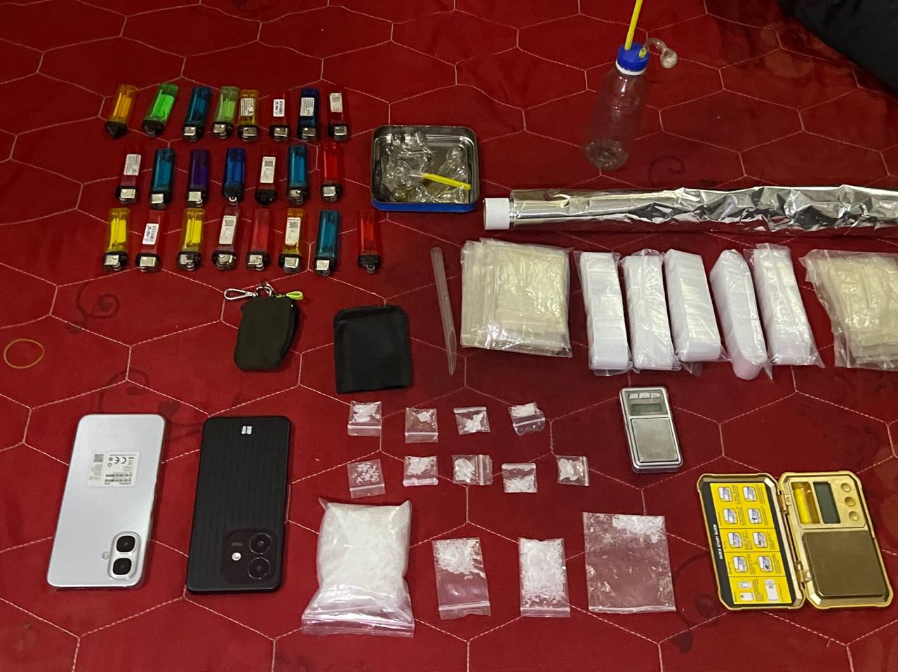 (កំពង់ស្ពឺ)៖ អនុវត្តតាមគោលការដឹកនាំយ៉ាងមុឺងម៉ាត់របស់របស់នាយឧត្តមសេនីយ៍ សៅ សុខា អគ្គ មេបញ្ជាការរង កងយោធពលខេមរភូមិន្ទ និងជា មេបញ្ជាការកងរាជអាវុធហត្ថលើផ្ទៃប្រទេស និងមានការណែនាំជាប្រចាំពីសំណាក់លោកបណ្ឌិត ជាម ច័ន្ទសោភ័ណ អភិបាលខេត្តកំពង់ស្ពឺ ក្រោមការដឹកនាំបញ្ជារបស់ឧត្តមសេនីយ៍ត្រី ម៉េង ស្រ៊ុន មេបញ្ជាការកងរាជអាវុធហត្ថខេត្តកំពង់ស្ពឺ ព្រមទាំងមានការសម្របសម្រួលនីតិវិធីពីព្រះរាជអាជ្ញាអមសាលាដំបូងខេត្តកំពង់ស្ពឺ កម្លាំងជំនាញការិយាល័យប្រឆាំងគ្រឿងញៀន មន្ទីរស្រាវជ្រាវ និងបង្រ្កាបបទល្មើសនៃបញ្ជាការដ្ឋានកងរាជអាវុធហត្ថខេត្តកំពង់ស្ពឺ បានបើកប្រតិបត្តិ ការស្រាវជាវកំណត់មុខសញ្ញាបង្ក្រាប ដោយឃាត់ខ្លួនជនសង្ស័យចំនួន ៩នាក់ និងចាប់យកវត្ថុតាងគ្រឿងញៀនមួយចំនួន។