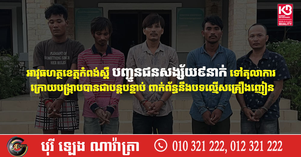 អាវុធហត្ថខេត្តកំពង់ស្ពឺ បញ្ជូនជនសង្ស័យ៩នាក់ ទៅតុលាការ ក្រោយបង្ក្រាបបានជាបន្តបន្ទាប់ ពាក់ព័ន្ធនឹងបទល្មើសគ្រឿងញៀន