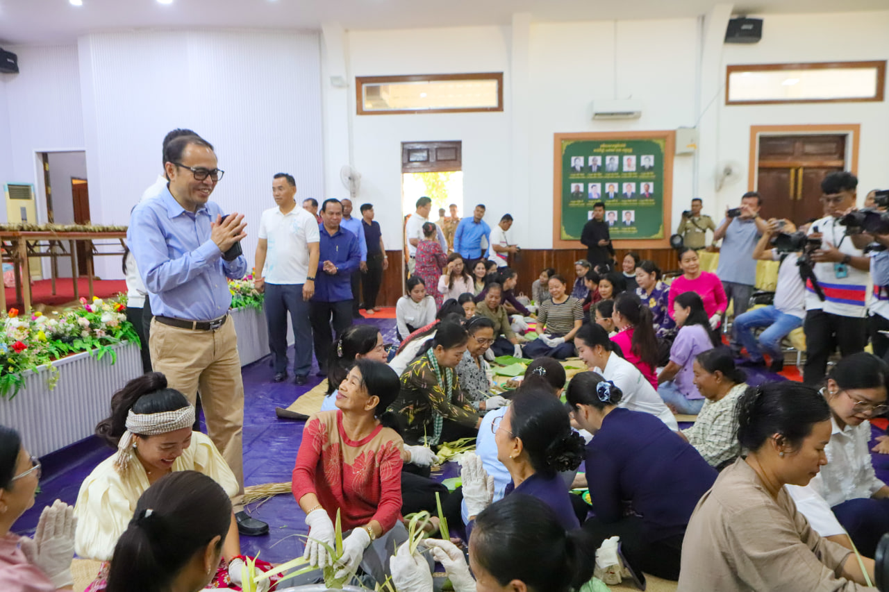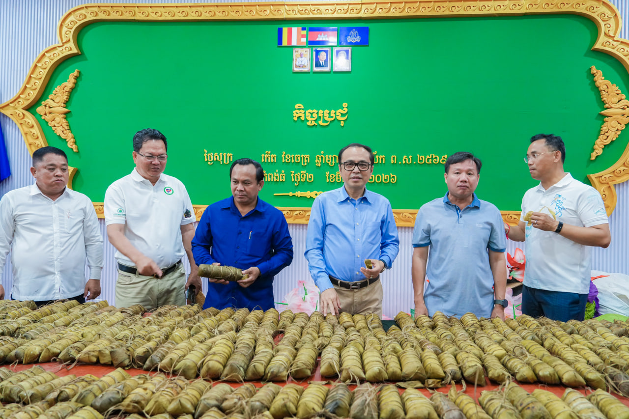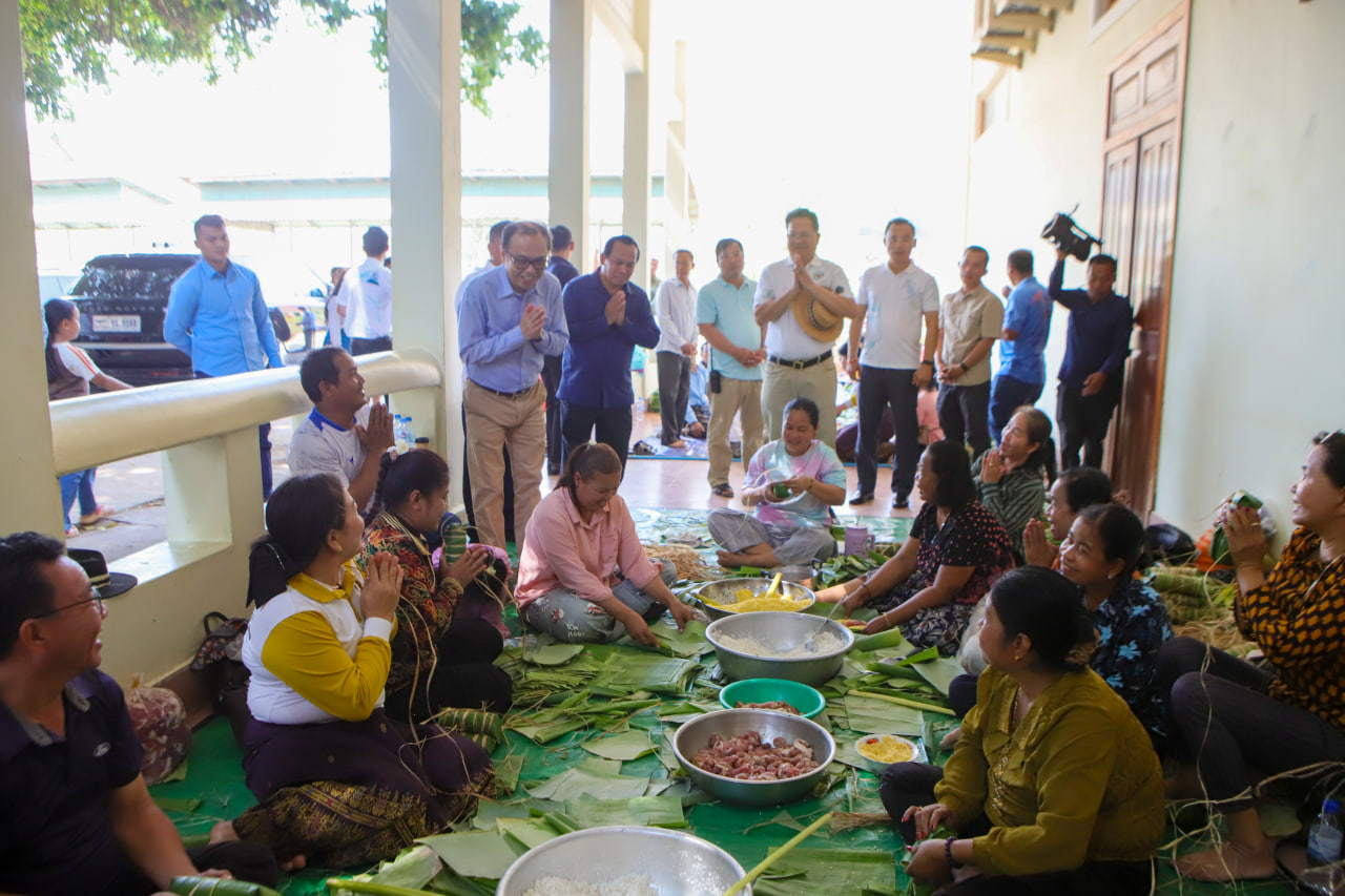 (កំពង់ធំ)៖ នាព្រឹកថ្ងៃទី១១ ខែមេសា ឆ្នាំ២០២៦ នៅក្នុងឱកាសចូលរួមព្រឹត្តិការណ៍បើកសង្រ្កាន្តលោក វង្សី វិស្សុត ឧបនាយករដ្ឋមន្ត្រីប្រចាំការ រដ្ឋមន្ត្រីទទួលបន្ទុកទីស្តីការគណៈរដ្ឋមន្ត្រី និងជាប្រធានក្រុមការងាររាជរដ្ឋាភិបាលចុះមូលដ្ឋានខេត្តកំពង់ធំ និងលោកជំទាវ ក៏បានអញ្ជើញចូលរួមវេចនំអន្សមជាមួយមន្រ្តីរដ្ឋបាលខេត្តកំពង់ធំប្រជាពលរដ្ឋ និងសិស្សានុសិស្ស សរុបចំនួន ៥ ០០០នំ សម្រាប់រៀបចំផ្ញើជូនវីរកងទ័ពដែលកំពុងឈរជើងនៅតាមបណ្ដោយព្រំដែន កម្ពុជា-ថៃ ក្នុងឱកាសនៃពិធីបុណ្យចូលឆ្នាំថ្មីប្រពៃណីជាតិខ្មែរ។