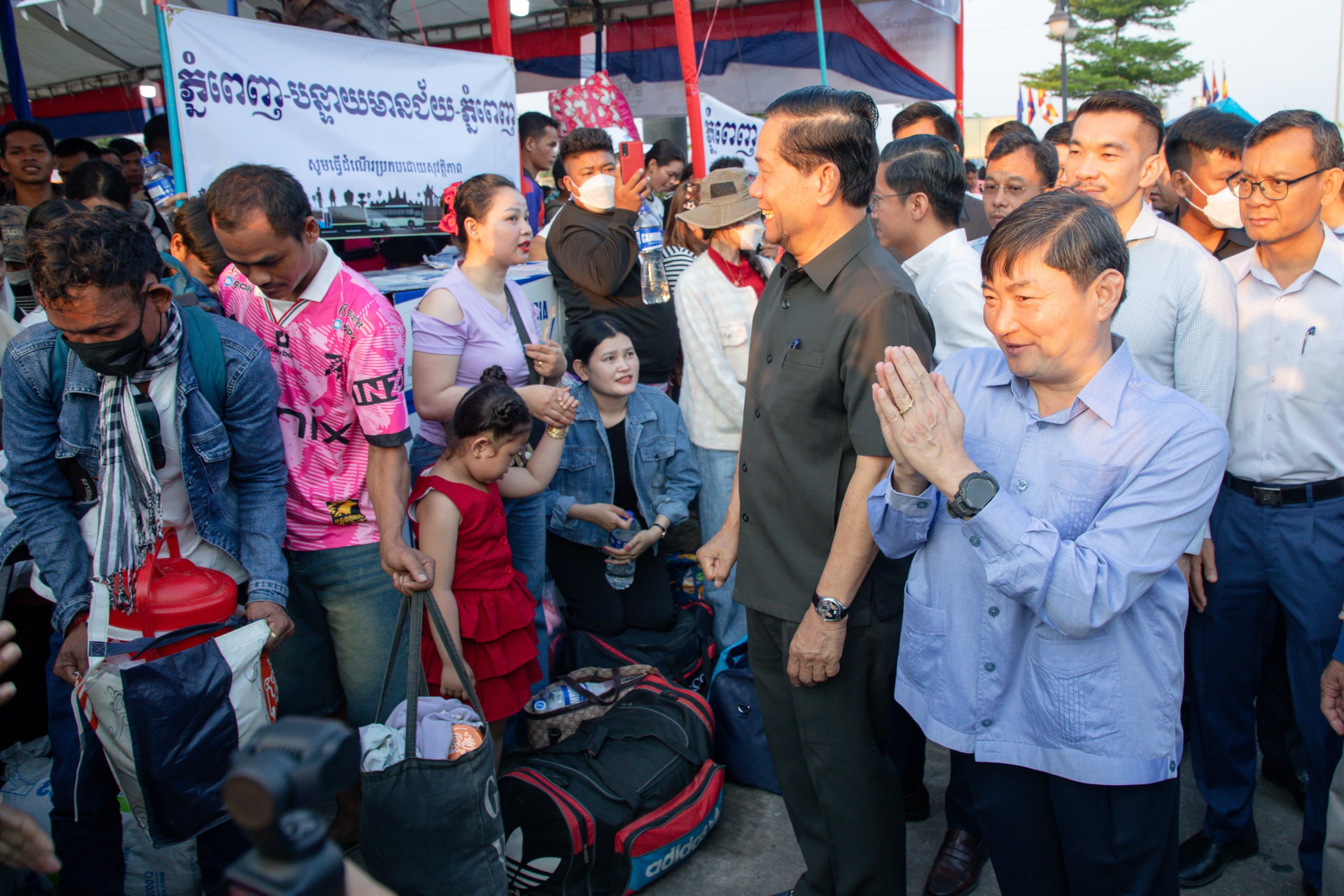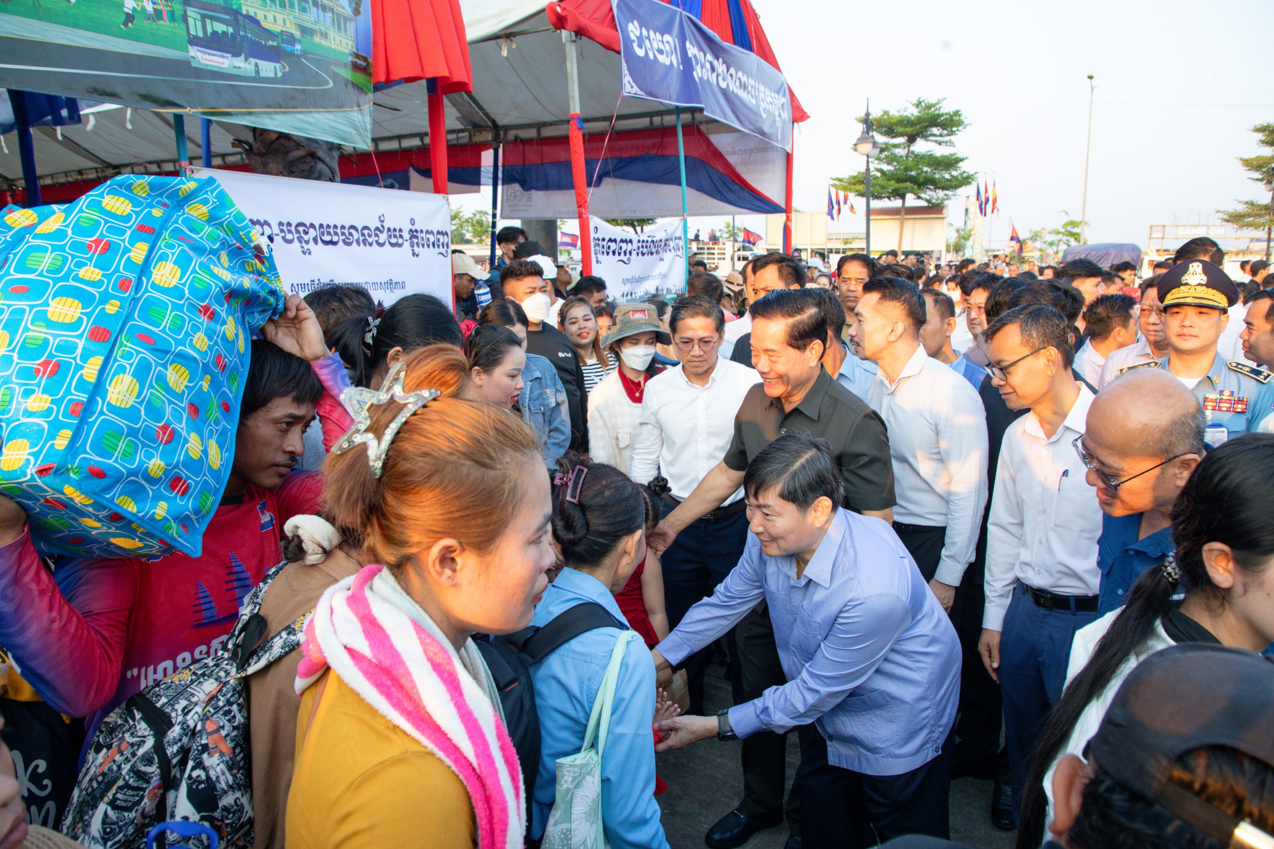 នាឱកាសនោះ បងប្អូនកម្មករនិយោជិតនិងប្រជាពលរដ្ឋបានសម្តែងនូវក្តីសប្បាយរីករាយ និងថ្លែងអំណរគុណដ៏ជ្រាលជ្រៅជូនចំពោះសម្តេចធិបតី និងលោកជំទាវបណ្ឌិត រដ្ឋបាលរាជធានី ដែលបានជួយដោះស្រាយផ្តល់មធ្យោបាយបានទៅលេងស្រុកកំណើត ក្នុងខណ:ថ្លៃធ្វើដំណើរឡើងថ្លៃខ្ពស់ដោយសារវិបត្តិប្រេងឥន្ធន:។