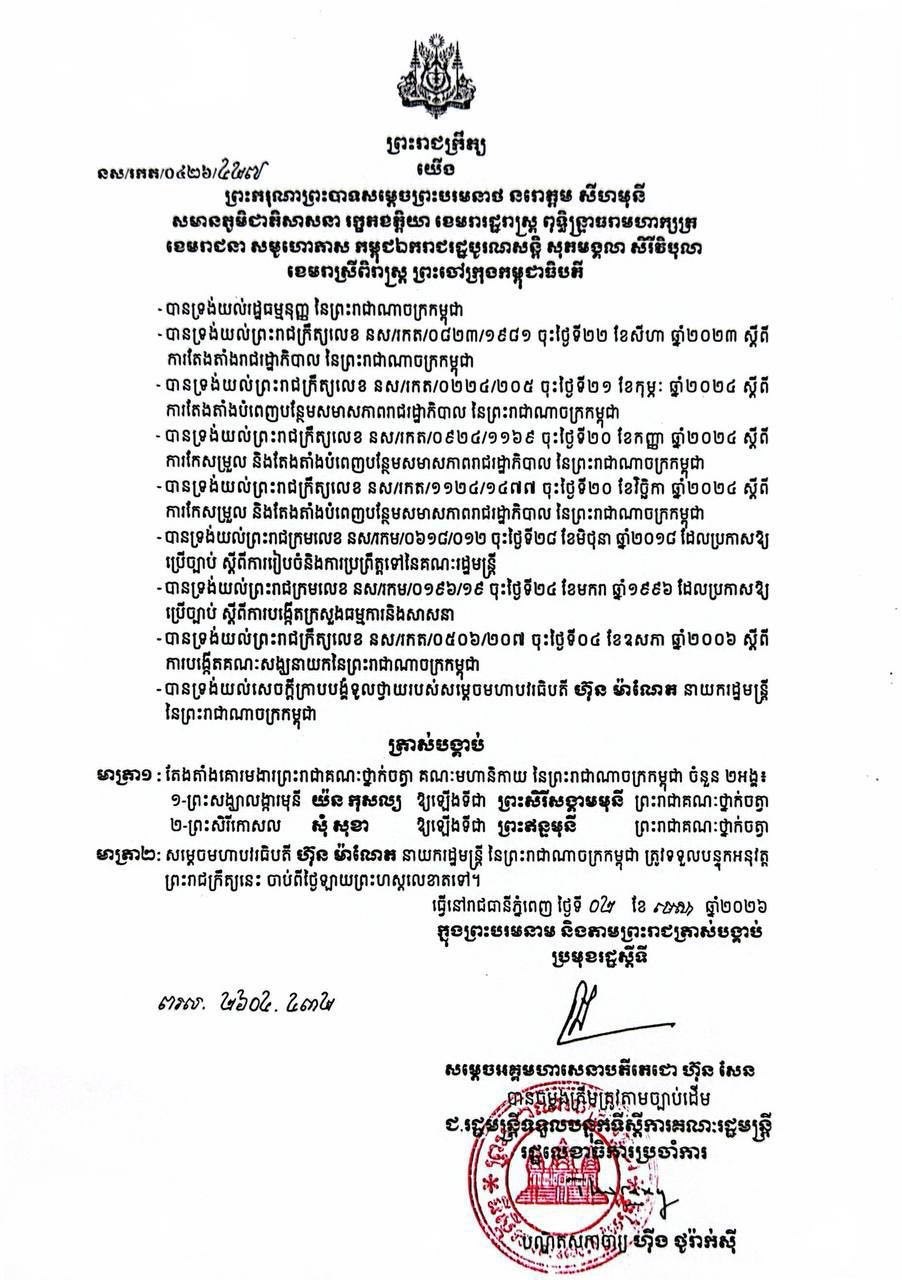 (ភ្នំពេញ)៖ គណៈកម្មាធិការនាយក ពុទ្ធិកសមាគមកម្ពុជរដ្ឋ និងសមាជិក សមាជិកាទាំងអស់ សូមចូលរួមអនុមោទនា ត្រេកអរ អបអរសាទរយ៉ាងក្រៃលែងជាទីបំផុត ប្រគេនចំពោះ ព្រះសិរីកោសល សុំ សុខា ព្រះប្រធានពុទ្ធិកសមាគមកម្ពុជរដ្ឋ ក្នុងវរោកាស ដែលសម្តេចអគ្គមហាសេនាបតីតេជោ ហ៊ុន សែន ប្រមុខរដ្ឋស្តីទី ក្នុងព្រះបរមនាម ព្រះករុណាព្រះបាទ សម្តេចព្រះបរមនាថ នរោត្តម សីហមុនី ព្រះមហាក្សត្រ នៃព្រះរាជាណាចក្រកម្ពុជា ទ្រង់សព្វព្រះរាជហឬទ័យ ត្រាស់បង្គាប់ តែងតាំងគោរមងា ឱ្យឡើងទីជា ព្រះឥន្ទមុនី ព្រះរាជាគណៈថ្នាក់ចត្វា គណៈមហានិកាយ នៃព្រះរាជាណាចក្រកម្ពុជា តាមសេចក្តីក្រាបបង្គំទូលថ្វាយរបស់សម្តេចមហាបវរធិបតី ហ៊ុន ម៉ាណែត នាយករដ្ឋមន្រ្តី នៃព្រះរាជាណាចក្រកម្ពុជា។