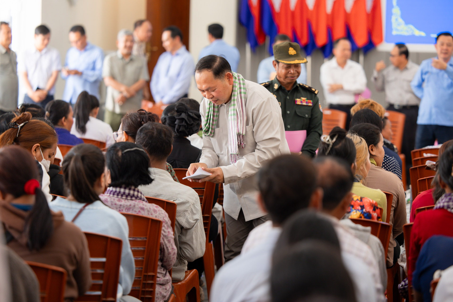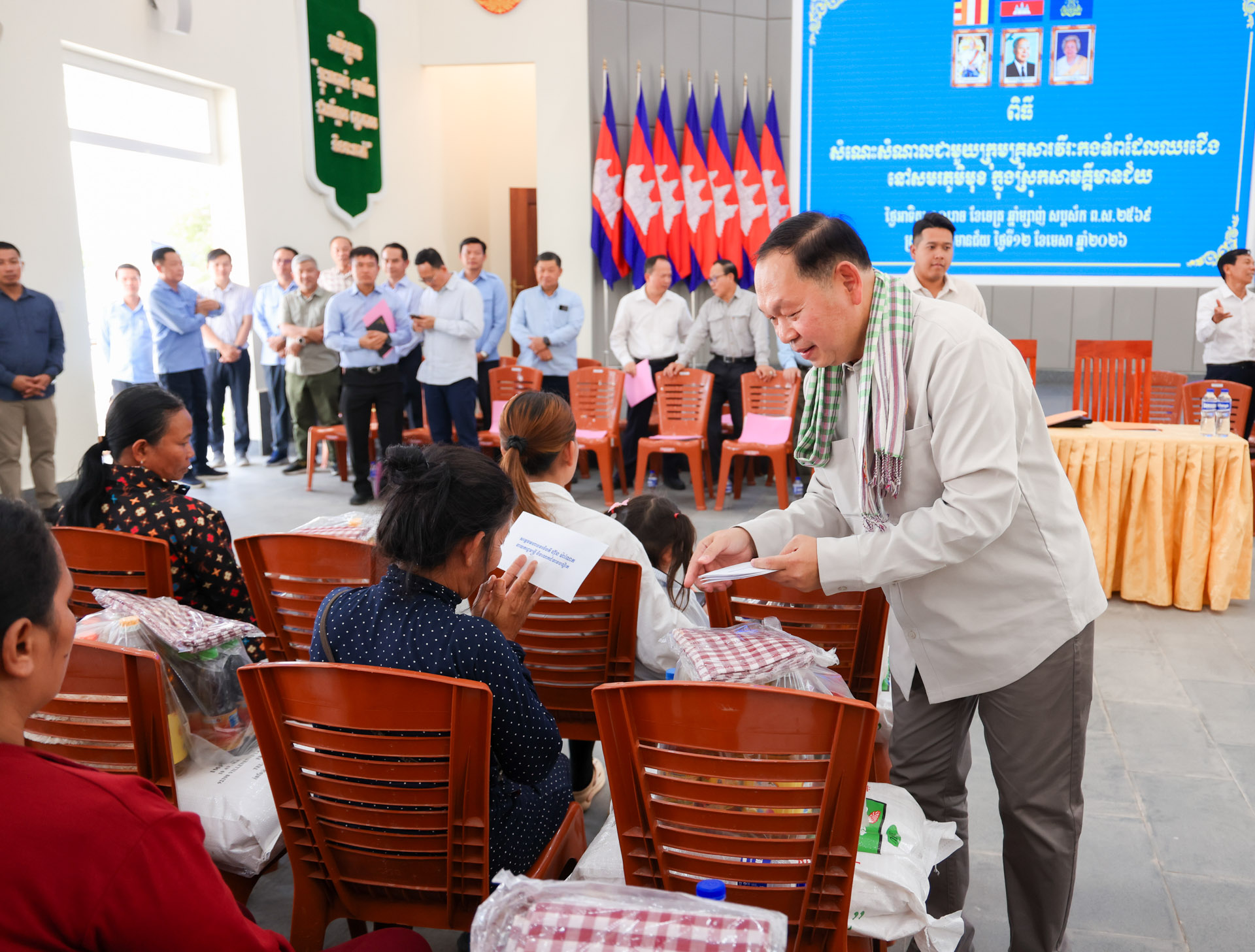(កំពង់ឆ្នាំង)៖ នារសៀលថ្ងៃទី១២ ខែមេសា ឆ្នាំ២០២៦ លោក ឆាយ ឫទ្ធិសែន រដ្ឋមន្ដ្រីក្រសួងអភិវឌ្ឍន៍ជនបទ អនុប្រធានទី១ ក្រុមការងាររាជរដ្ឋាភិបាលចុះមូលដ្ឋានខេត្តកំពង់ឆ្នាំង និងជាប្រធានក្រុមការងាររាជរដ្ឋាភិបាលចុះមូលដ្ឋានស្រុកសាមគ្គីមានជ័យ និងស្រុកទឹកផុស និងលោកជំទាវ បានអញ្ជើញជួបសំណេះសំណាលនិងសួរសុខទុក្ខក្រុមគ្រួសារវីរកងទ័ពកម្ពុជាឈរជើងនៅសមរភូមិមុខចំនួន ៤៣២គ្រួសារ នៅក្នុងស្រុកសាមគ្គីមានជ័យ ខេត្តកំពង់ឆ្នាំង។
