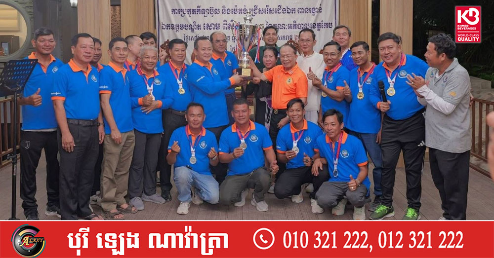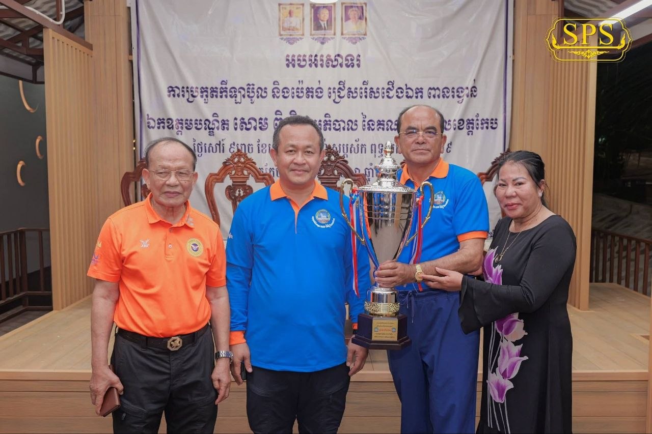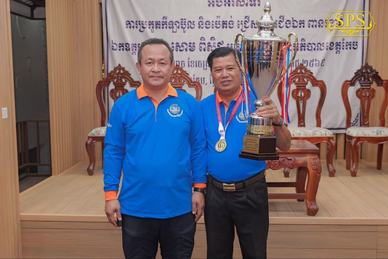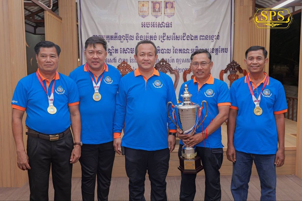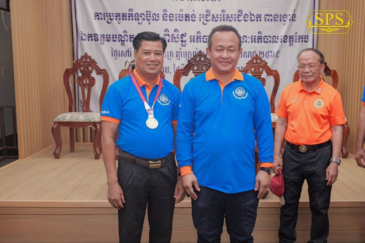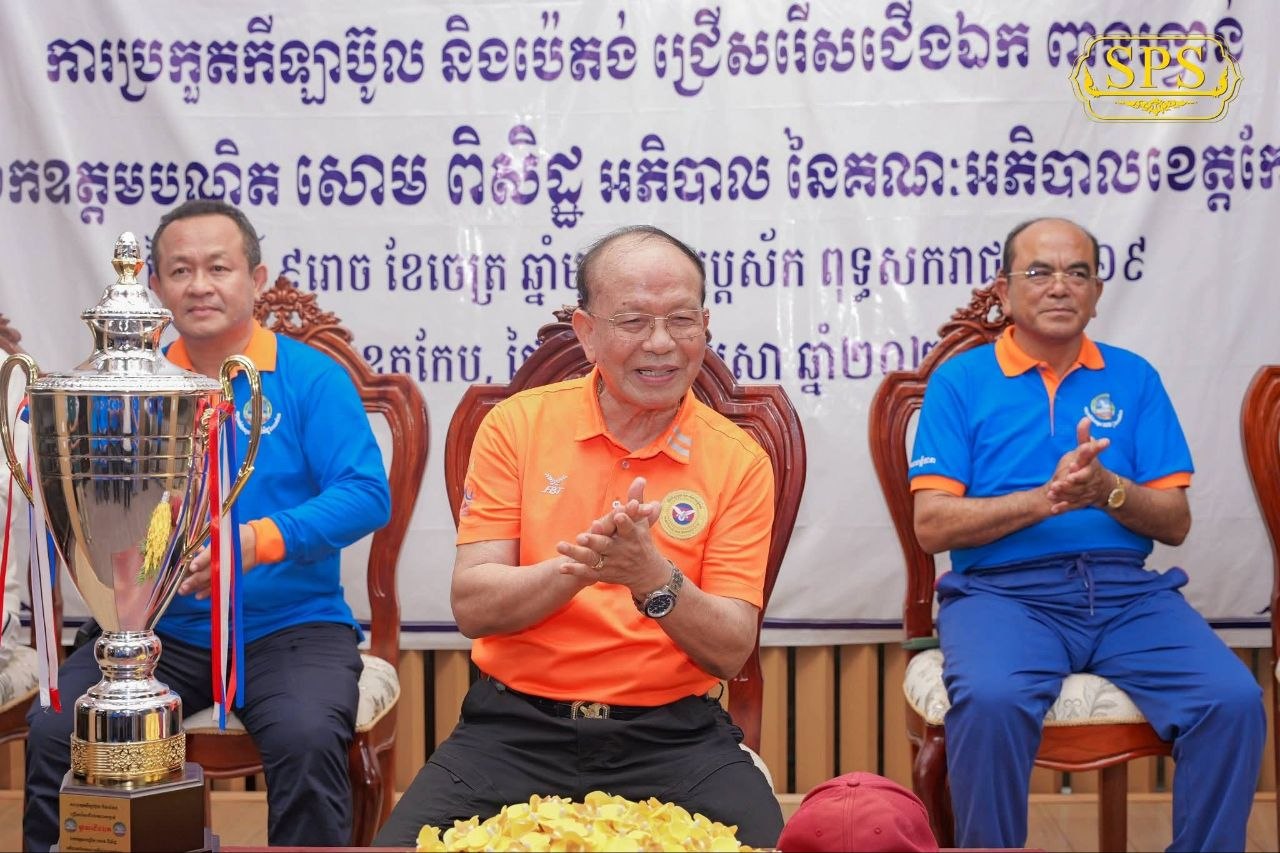 (កែប)៖ ក្រោមការដឹកនាំប្រកបដោយភាពឈ្លាសវៃ និងការយកចិត្តទុកដាក់ខ្ពស់លើវិស័យកីឡាពីសំណាក់ថ្នាក់ដឹកនាំខេត្ត រដ្ឋបាលខេត្តកែប បានរៀបចំព្រឹត្តិការណ៍ប្រកួតកីឡាប៊ូល ដើម្បីជ្រើសរើសជើងឯកឆ្នើមដណ្តើមពានរង្វាន់ របស់លោកបណ្ឌិត សោម ពិសិដ្ឋ អភិបាលខេត្តកែប។