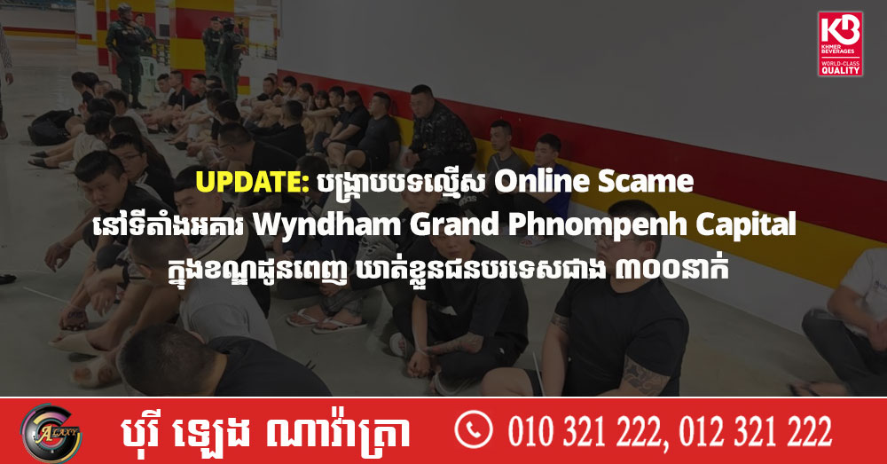 UPDATE: បង្ក្រាបបទល្មើស Online Scame នៅទីតាំងអគារ Wyndham Grand Phnompenh Capital ក្នុងខណ្ឌដូនពេញ ឃាត់ខ្លួនជនបរទេសជាង៣០០នាក់ (Video inside)