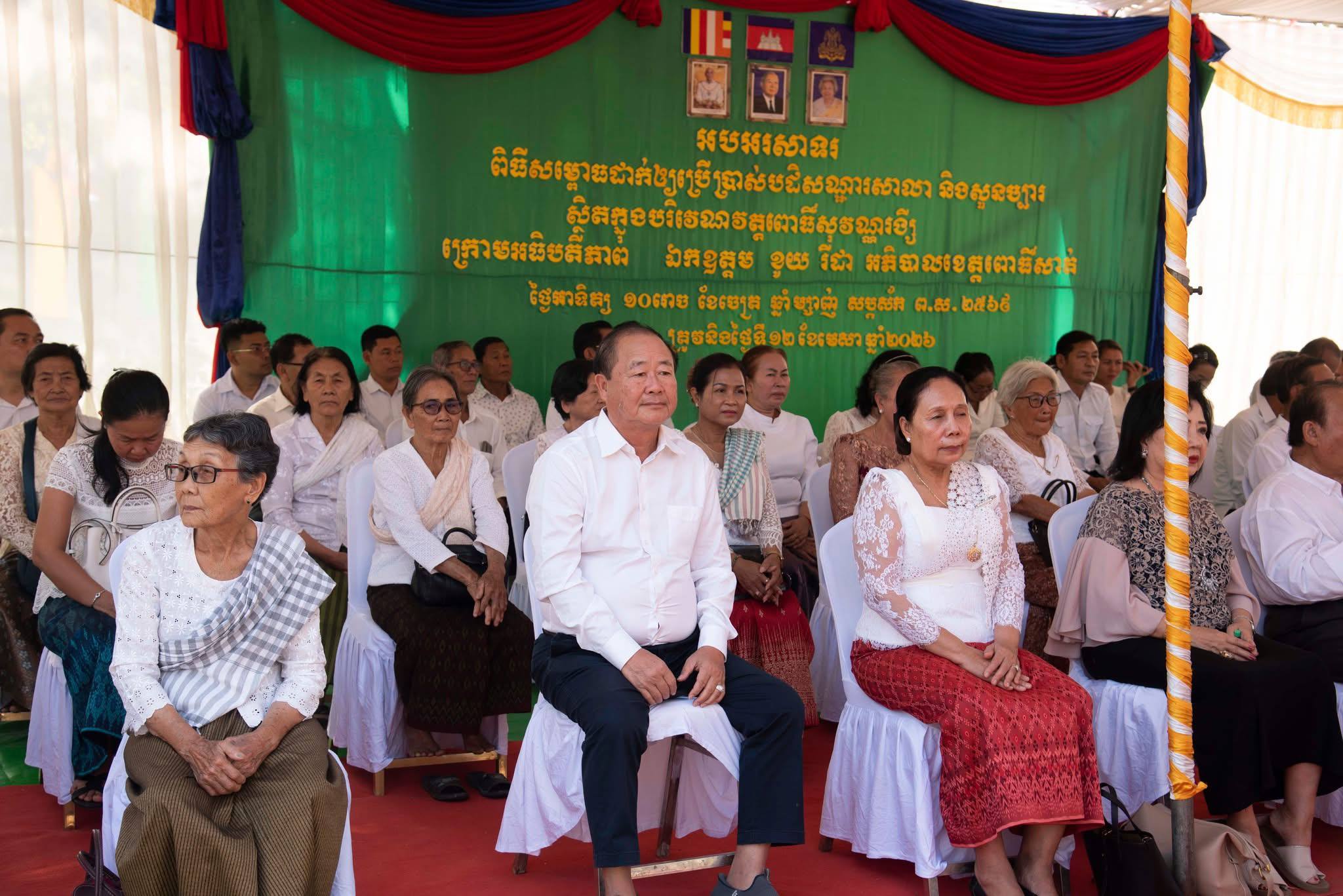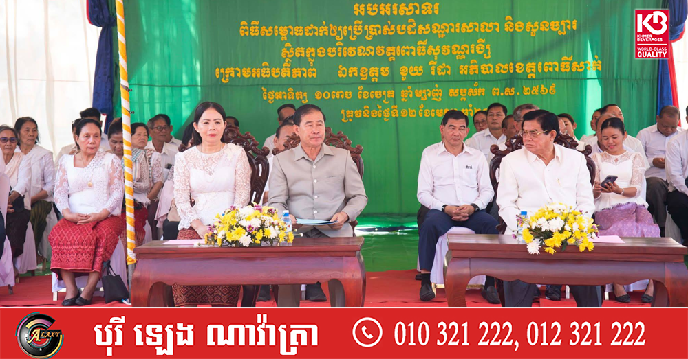 (ពោធិ៍សាត់)៖ នាព្រឹកថ្ងៃទី១២ ខែមេសា ឆ្នាំ២០២៦ នៅបរិវេណវត្តពោធិ៍សុវណ្ណរង្សី ស្ថិតនៅភូមិព្រែកតាវង ឃុំអន្លង់វិល ស្រុកកណ្តៀង ខេត្តពោធិ៍សាត់ បានរៀបចំពិធីកាត់ខ្សែបូ សម្ពោធដាក់ឱ្យប្រើប្រាស់ជាផ្លូវការនូវ «បដិសណ្ឋារសាលា» ដ៏ស្ពៃស្កឹមស្ពៃ ក្រោមអធិបតីភាពលោក ម៉ក់ រ៉ា ប្រធានក្រុមប្រឹក្សាខេត្ត, លោក ខូយ រីដា អភិបាលខេត្តពោធិ៍សាត់ និងលោកស្រី ព្រមទាំងមានការអញ្ជើញចូលរួមពីថ្នាក់ដឹកនាំមន្ទីរអង្គភាព កងកម្លាំងទាំង៣ និងពុទ្ធបរិស័ទយ៉ាងច្រើនកុះករ។