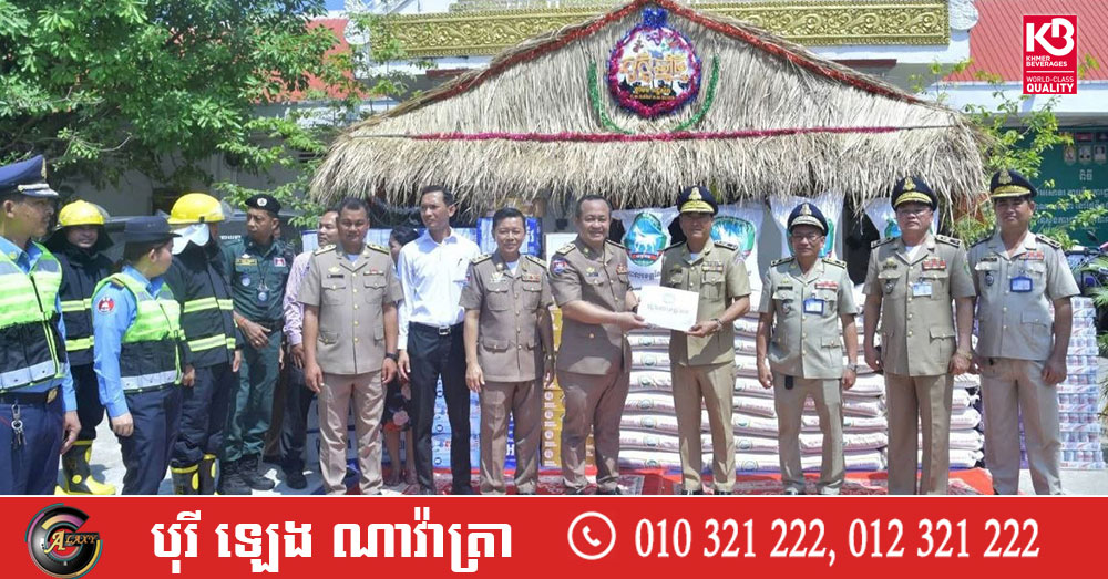 (កែប)៖ លោកបណ្ឌិត សោម ពិសិដ្ឋ អភិបាលខេត្តកែប និងជាប្រធានគណៈបញ្ជាការឯកភាពរដ្ឋបាលខេត្តកែប នាថ្ងៃទី១៣ ខែមេសា ឆ្នាំ២០២៦ ដឹកនាំមន្ត្រី កងកម្លាំងប្រដាប់អាវុធទាំងបីប្រភេទ អាជ្ញាធរពាក់ព័ន្ធក្រោមឱវាទ ចុះជួបសំណេះសំណាល សួរសុខទុក និងនាំយកគ្រឿងឧបភោគ បរិភោគ ចែកជូនកងកម្លាំងនគរបាលជាតិ នៃស្នងការដ្ឋាននគរបាលខេត្តកែប។