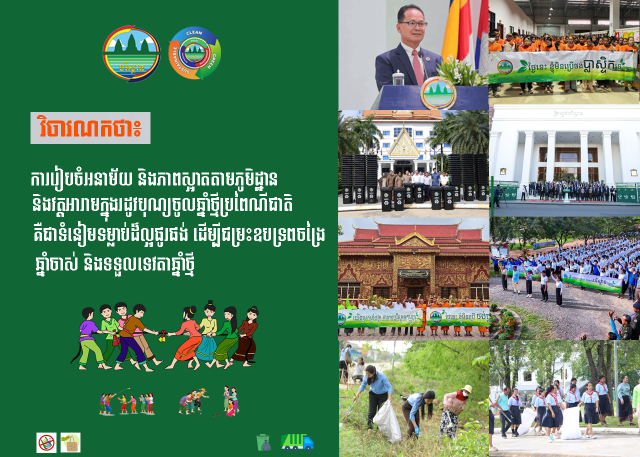 ពិធីបុណ្យចូលឆ្នាំថ្មីប្រពៃណីជាតិ ត្រូវបានប្រារព្ធធ្វើឡើងក្នុងបរិបទ ដែលកម្ពុជាបាននិងកំពុងខិតខំ ជំរុញការអនុវត្តគោល នយោបាយនិងយុទ្ធសាស្រ្តរបស់រាជរដ្ឋាភិបាលកម្ពុជា ក្នុងនោះយុទ្ធសាស្រ្តចក្រាវិស័យបរិស្ថាន ដែលជំរុញឱ្យមានការចូលរួម ដើម្បីធ្វើឱ្យទឹកស្អាត ខ្យល់ស្អាត និងដីស្អាត៕