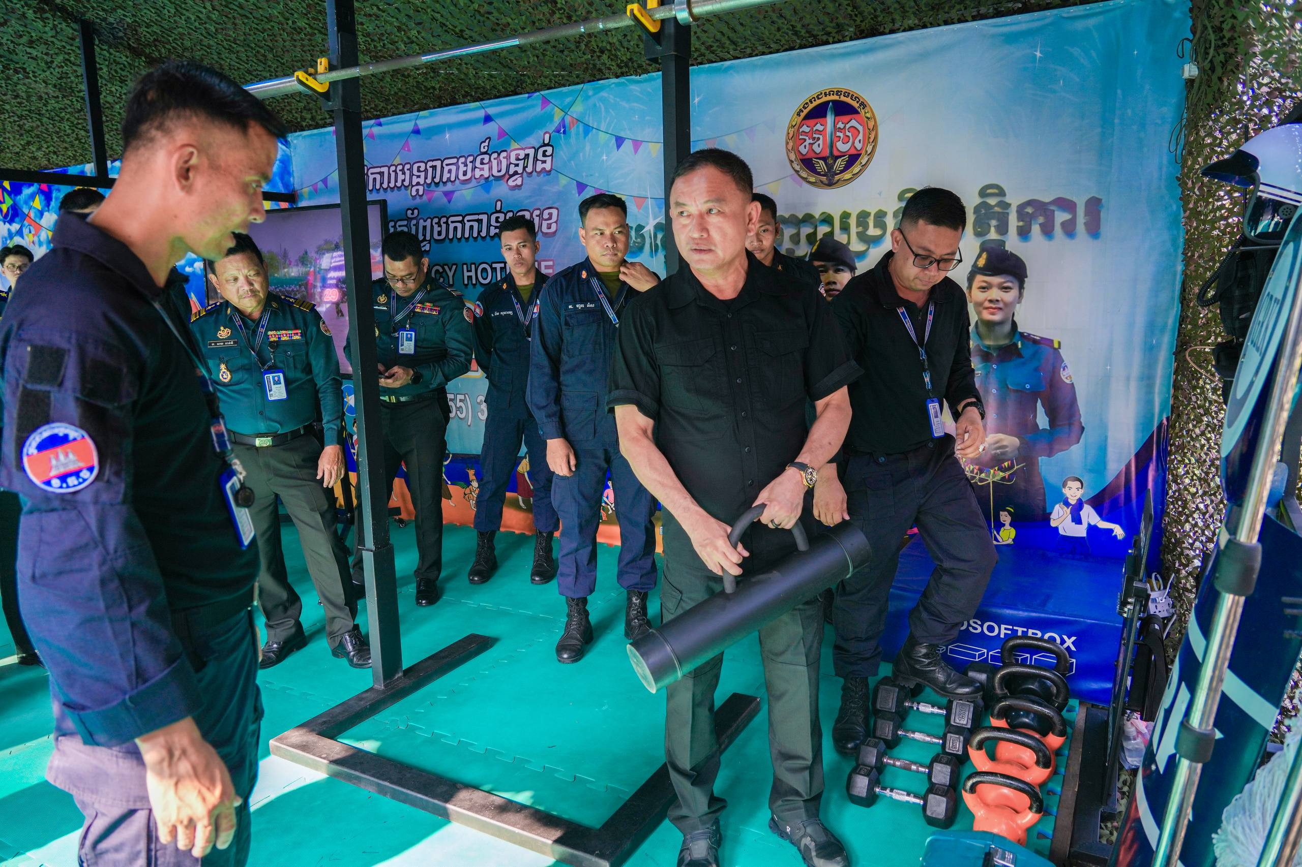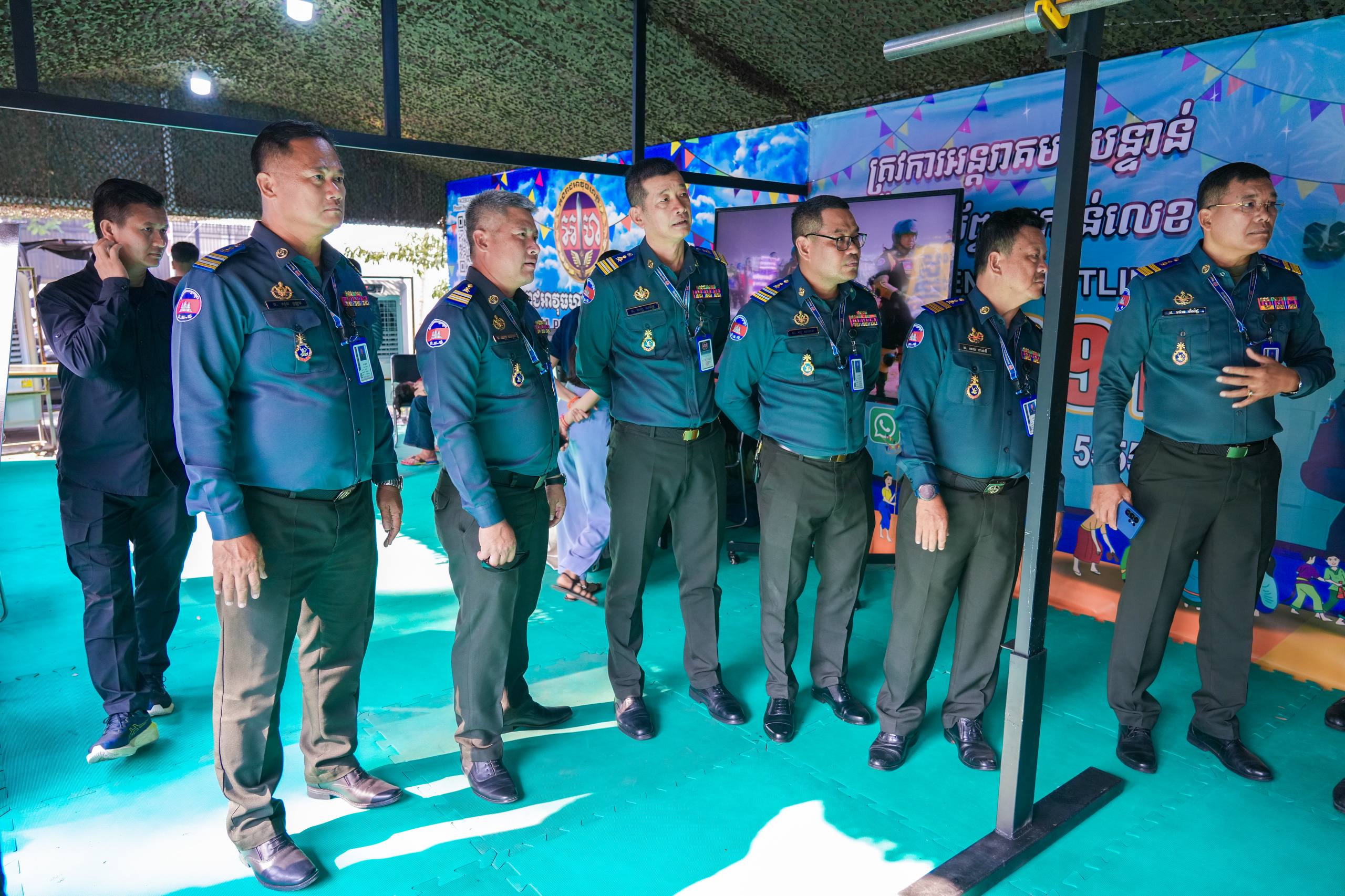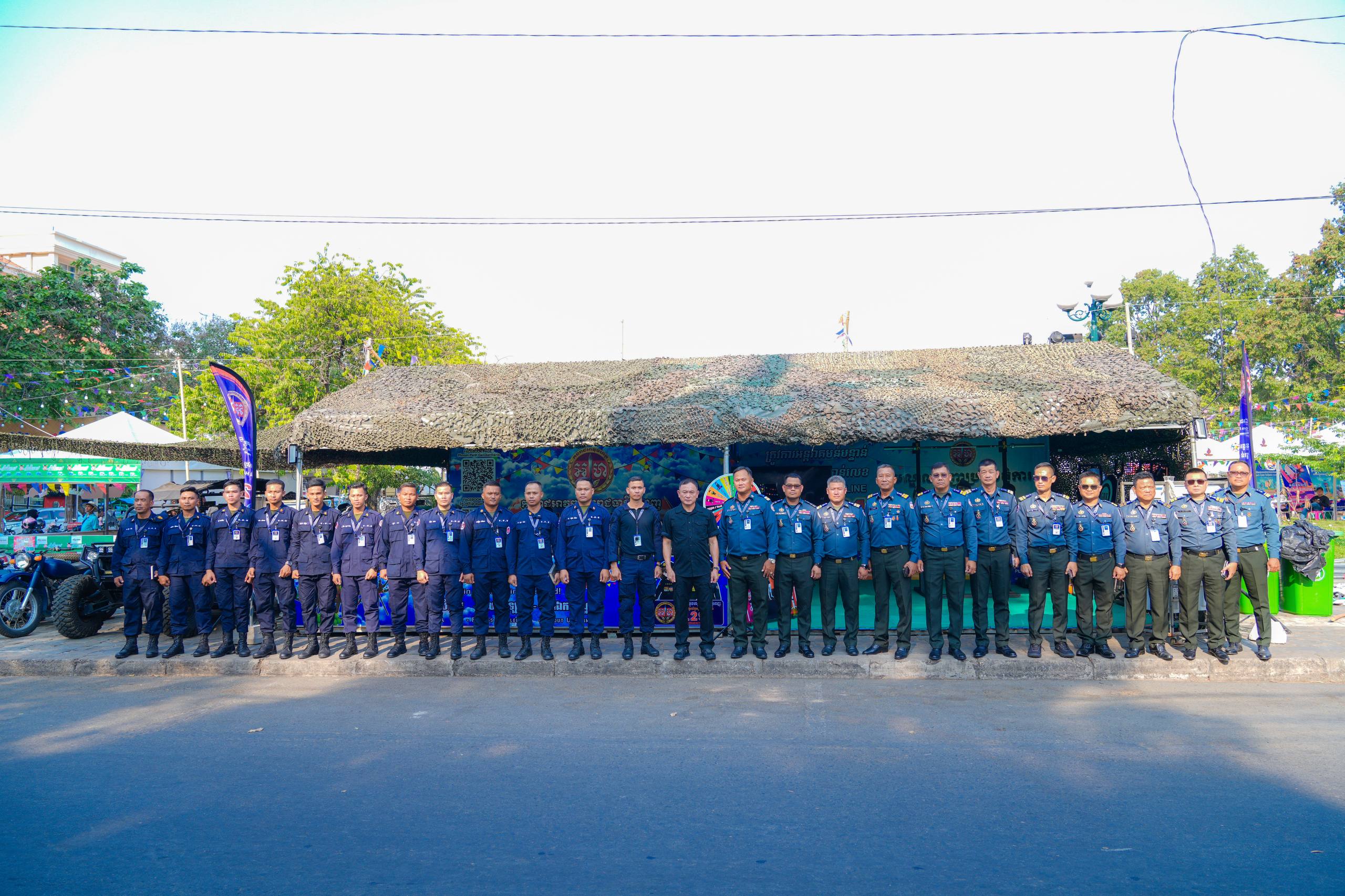 (ភ្នំពេញ)៖ លោកឧត្តមសេនីយ៍ឯក រ័ត្ន ស៊្រាង មេបញ្ជាការរង កងរាជអាវុធហត្ថលើផ្ទៃប្រទេស និងជាមេបញ្ជាការ កងរាជអាវុធហត្ថរាជធានីភ្នំពេញ បានដឹកនាំ លោកមេបញ្ជាការរង លោកមេបញ្ជាការមូលដ្ឋាន អាវុធហត្ថខណ្ឌទាំង១៤ ចំណុះរាជធានីភ្នំពេញ នៅថ្ងៃទី១៣ ខែមេសា ឆ្នាំ២០២៦ ចុះត្រួតពិនិត្យស្តង់ពិព័ណ៌ផ្សព្វផ្សាយពី តួនាទី ភារកិច្ច សកម្មភាពការងាររបស់អាវុធហត្ថរាជធានីភ្នំពេញ និងលេខទូរស័ព្ទអន្តរាគមន៍បន្ទាន់ (Emergency Hotline) 1291 ជូនដល់ភ្ញៀវទេសចរណ៍ជាតិ-អន្តរជាតិ ដែលនឹងមកចូលរួមលេងកម្សាន្តក្នុងព្រឹត្តិការណ៍នគរសង្ក្រាន្ត នាឱកាសពិធីបុណ្យចូលឆ្នាំថ្មី ប្រពៃណីជាតិខ្មែរ ដែលនឹងប្រព្រឹត្តទៅចាប់ពីថ្ងៃទី១៤ ដល់ថ្ងៃទី១៩ ខែមេសា ឆ្នាំ២០២៦ ទីតាំងលើសួនមុនីហទ័យ (ស្ពាននាគ វត្តភ្នំ) នៅផ្លូវ៥១ កែង១០៦ រាជធានីភ្នំពេញ។