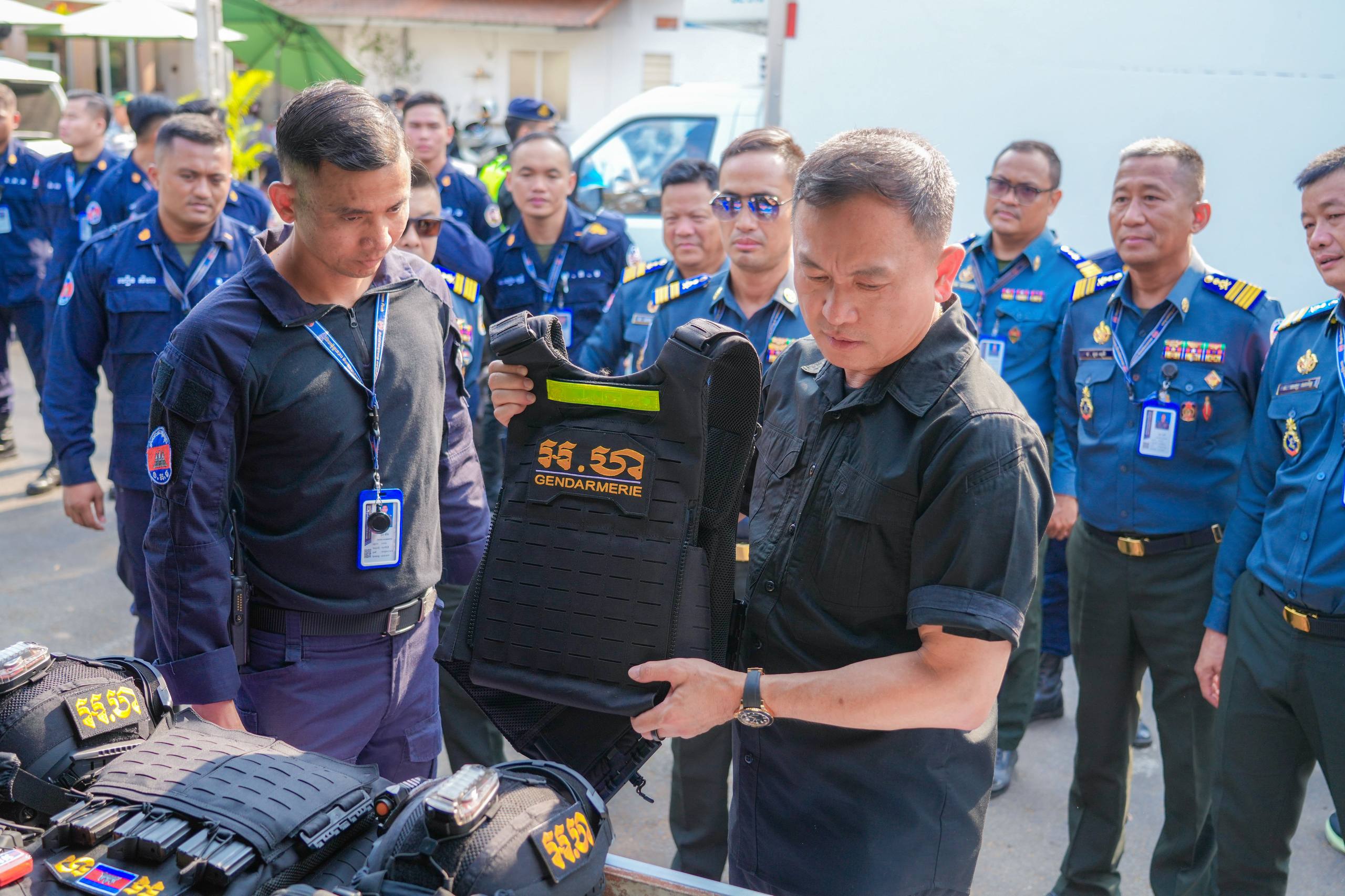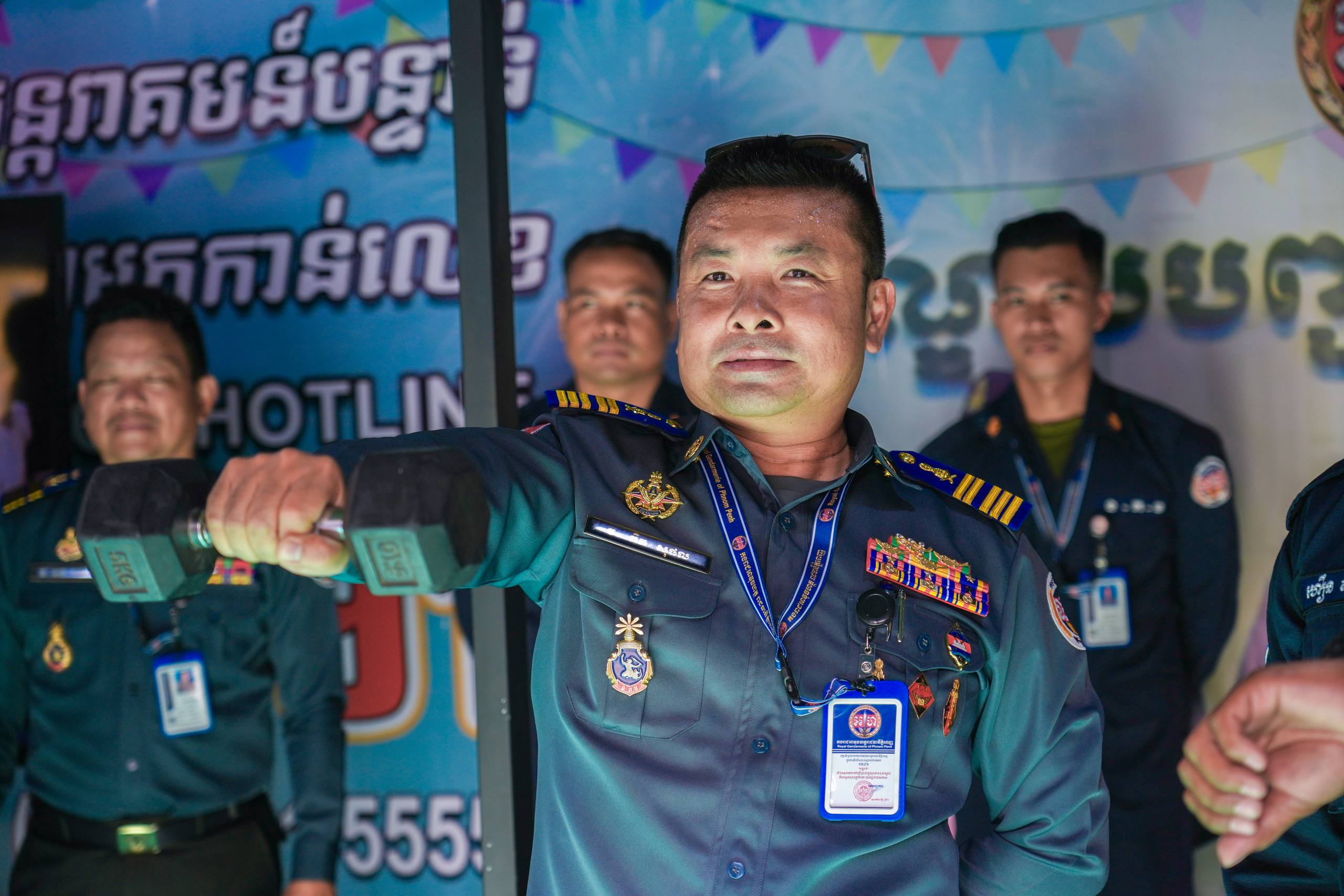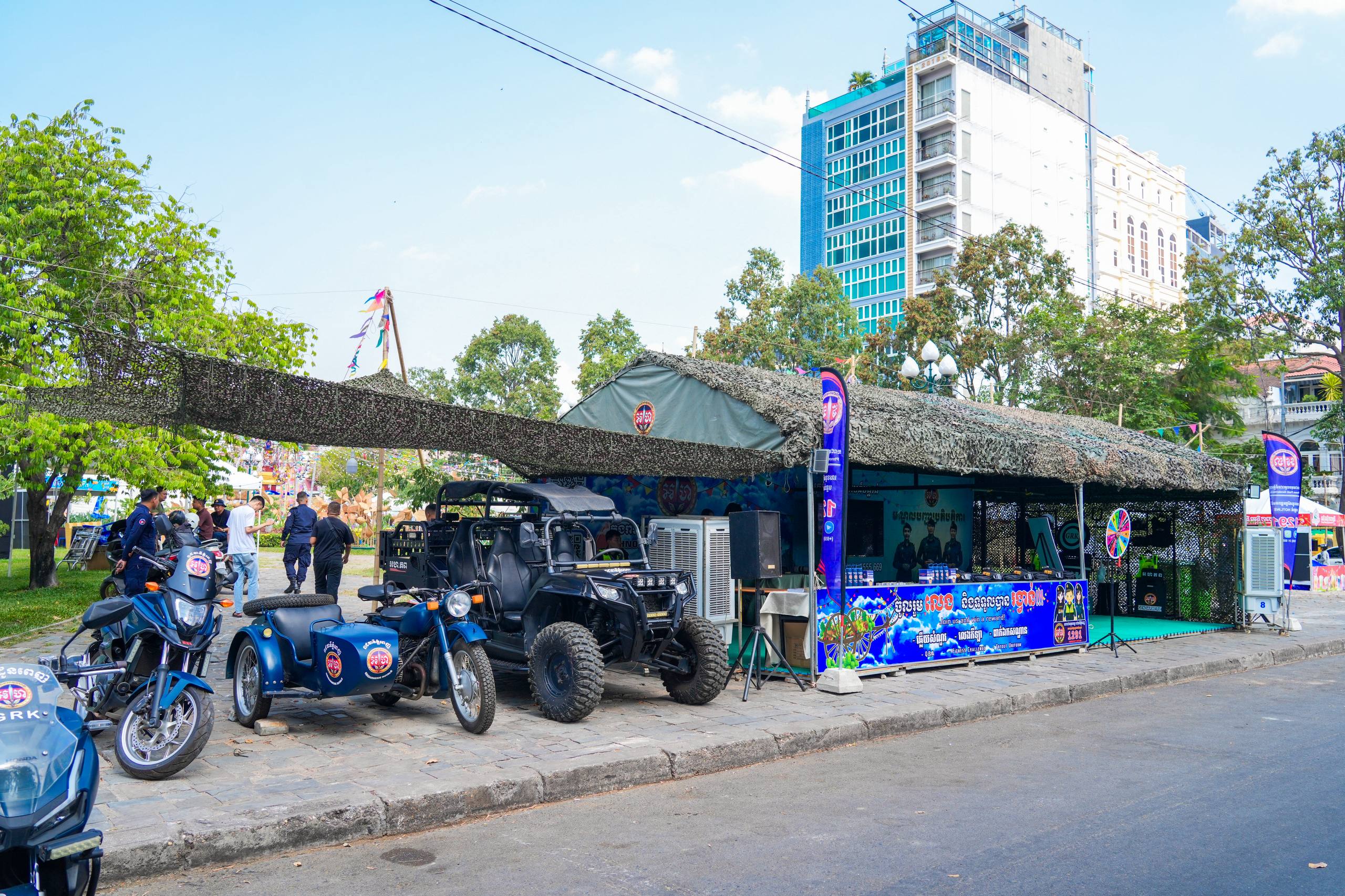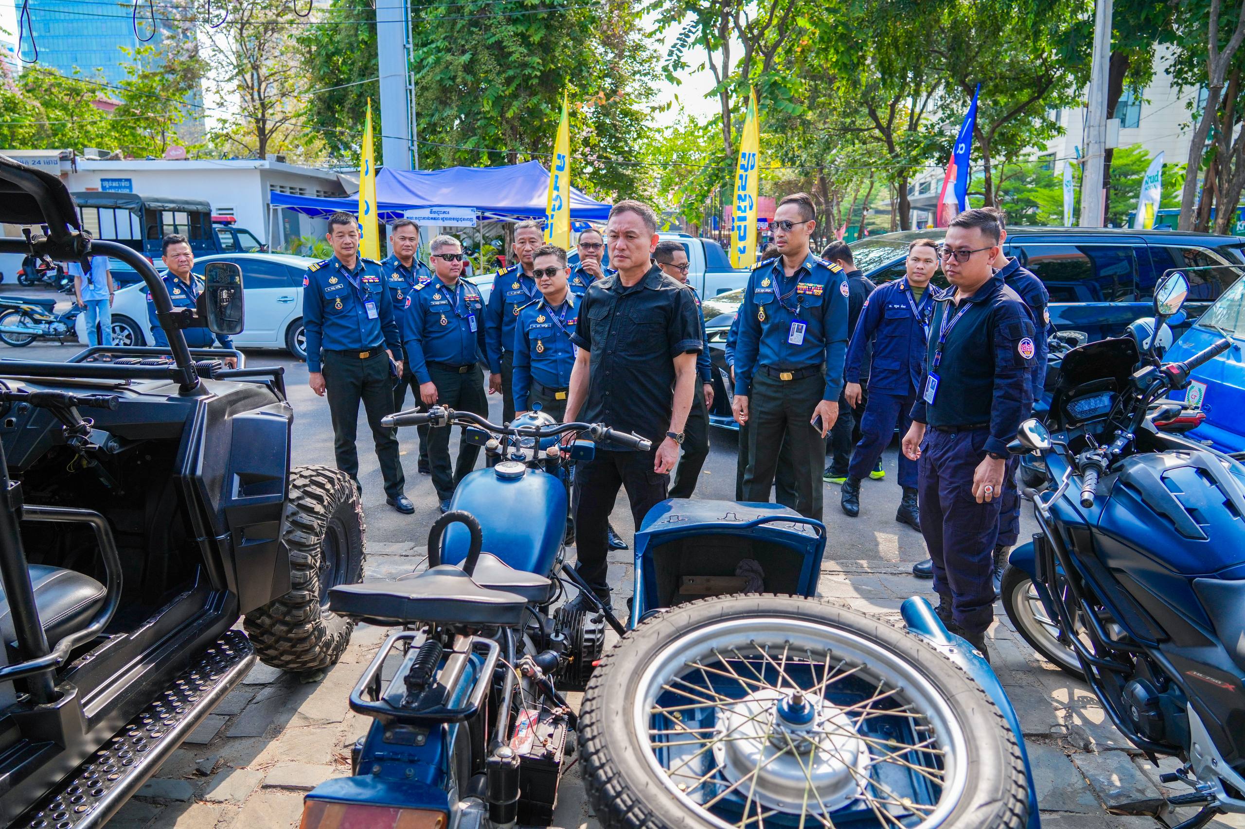 (ភ្នំពេញ)៖ លោកឧត្តមសេនីយ៍ឯក រ័ត្ន ស៊្រាង មេបញ្ជាការរង កងរាជអាវុធហត្ថលើផ្ទៃប្រទេស និងជាមេបញ្ជាការ កងរាជអាវុធហត្ថរាជធានីភ្នំពេញ បានដឹកនាំ លោកមេបញ្ជាការរង លោកមេបញ្ជាការមូលដ្ឋាន អាវុធហត្ថខណ្ឌទាំង១៤ ចំណុះរាជធានីភ្នំពេញ នៅថ្ងៃទី១៣ ខែមេសា ឆ្នាំ២០២៦ ចុះត្រួតពិនិត្យស្តង់ពិព័ណ៌ផ្សព្វផ្សាយពី តួនាទី ភារកិច្ច សកម្មភាពការងាររបស់អាវុធហត្ថរាជធានីភ្នំពេញ និងលេខទូរស័ព្ទអន្តរាគមន៍បន្ទាន់ (Emergency Hotline) 1291 ជូនដល់ភ្ញៀវទេសចរណ៍ជាតិ-អន្តរជាតិ ដែលនឹងមកចូលរួមលេងកម្សាន្តក្នុងព្រឹត្តិការណ៍នគរសង្ក្រាន្ត នាឱកាសពិធីបុណ្យចូលឆ្នាំថ្មី ប្រពៃណីជាតិខ្មែរ ដែលនឹងប្រព្រឹត្តទៅចាប់ពីថ្ងៃទី១៤ ដល់ថ្ងៃទី១៩ ខែមេសា ឆ្នាំ២០២៦ ទីតាំងលើសួនមុនីហទ័យ (ស្ពាននាគ វត្តភ្នំ) នៅផ្លូវ៥១ កែង១០៦ រាជធានីភ្នំពេញ។