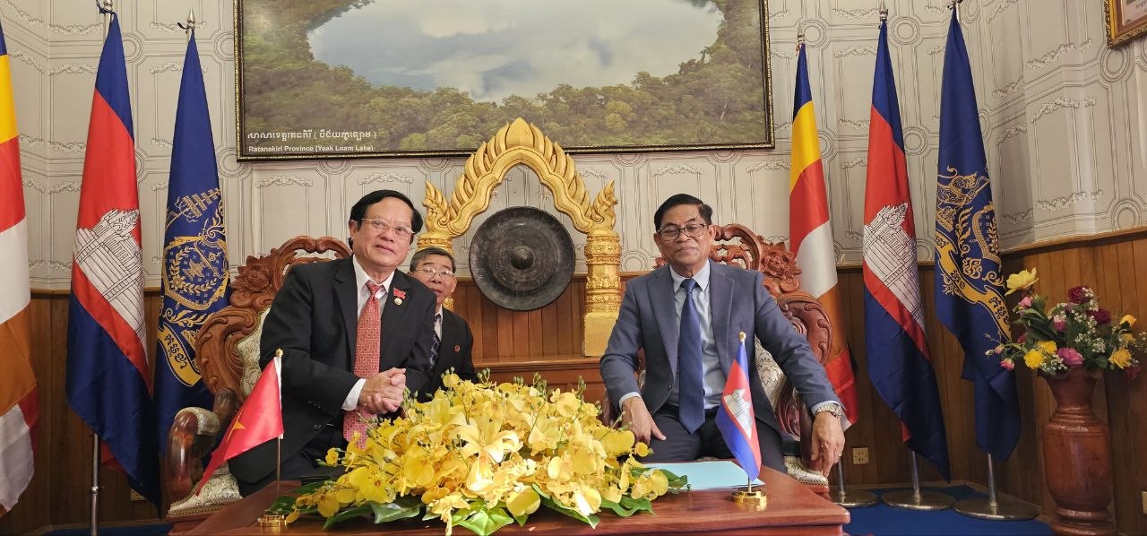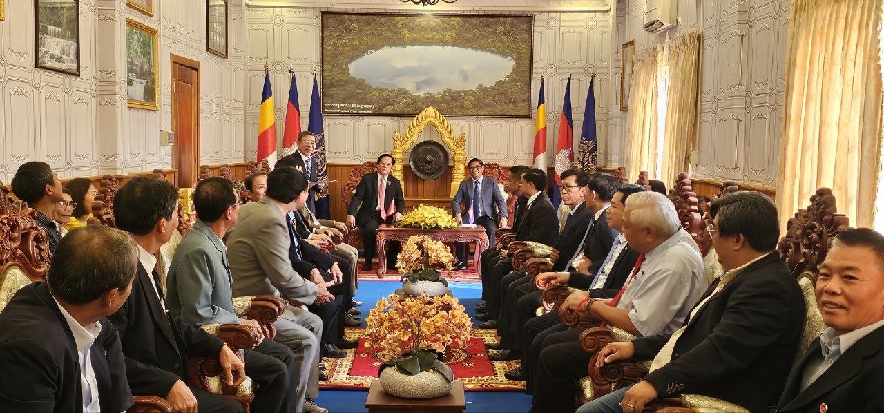 (រតនគិរី)៖ សមាគមមិត្តភាពកម្ពុជា-វៀតណាមខេត្តហ្សាឡាយ ប្រទេសវៀតណាម ចំនួន២៩នាក់ដឹកនាំដោយលោកង្វៀន យ៉ុង ជាអនុប្រធានសមាគមន៍សហព័ន្ធកសិកម្មវៀតណាមបានជួបសំណេះសំណាល សួរសុខទុក្ខ និងជូនពរលោក ញ៉ែម សំអឿនអភិបាលខេត្តរតនគិរី ក្នុងឱកាសនៃពិធីបុណ្យចូលឆ្នាំថ្មី ប្រពៃណីជាតិខ្មែរ ឆ្នាំមមី អដ្ឋស័ក ព.ស២៥៧០ គ.ស២០២៦។