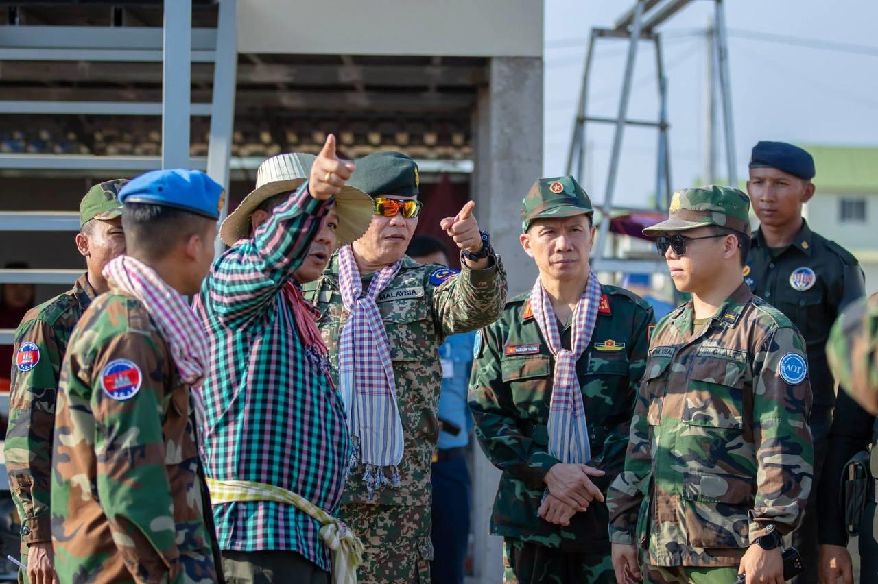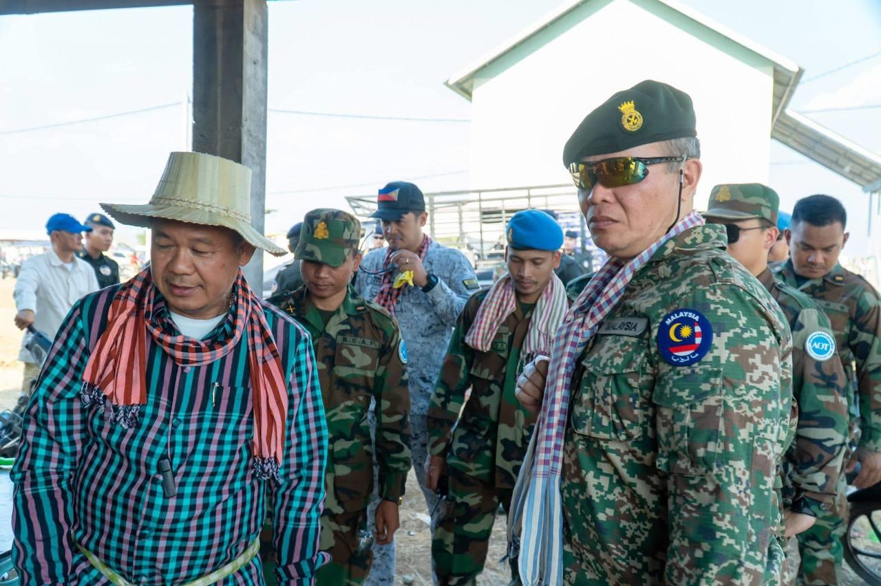 (បន្ទាយមានជ័យ)៖ នៅរសៀលថ្ងៃទី១៤ ខែមេសា ឆ្នាំ២០២៦ លោក អ៊ុំ រាត្រី អភិបាល នៃគណៈអភិបាលខេត្ត ជាមួយក្រុមសម្របសម្រួល (CLG) នៃព្រះរាជាណាចក្រកម្ពុជា បានសម្របសម្រួលដល់ក្រុមអ្នកសង្កេតការណ៍អាស៊ាន (AOT) ចុះសង្កេតការណ៍ ផ្ទៀងផ្ទាត់ និងរាយការណ៍អំពីស្ថានភាព និងការរស់នៅរបស់បងប្អូនភៀសសឹក ដែលកំពុងស្នាក់នៅជម្រកបណ្តោះអាសន្ន(ផ្ទះអតីតយុទ្ធជន) នៅភូមិស្លក្រាម ឃុំស្លក្រាម ស្រុកស្វាយចេក។
