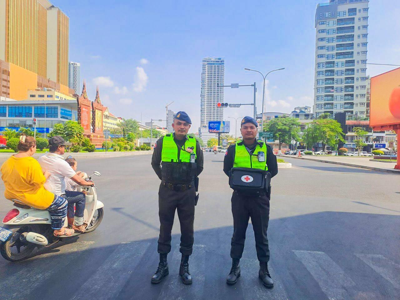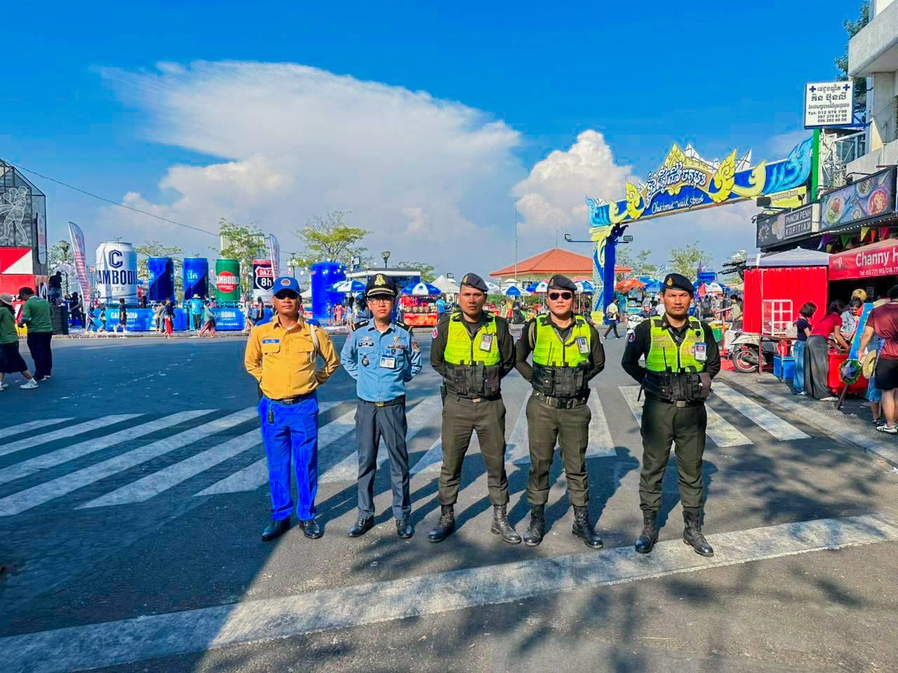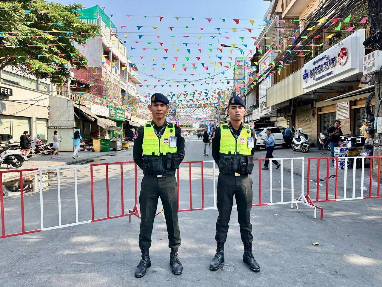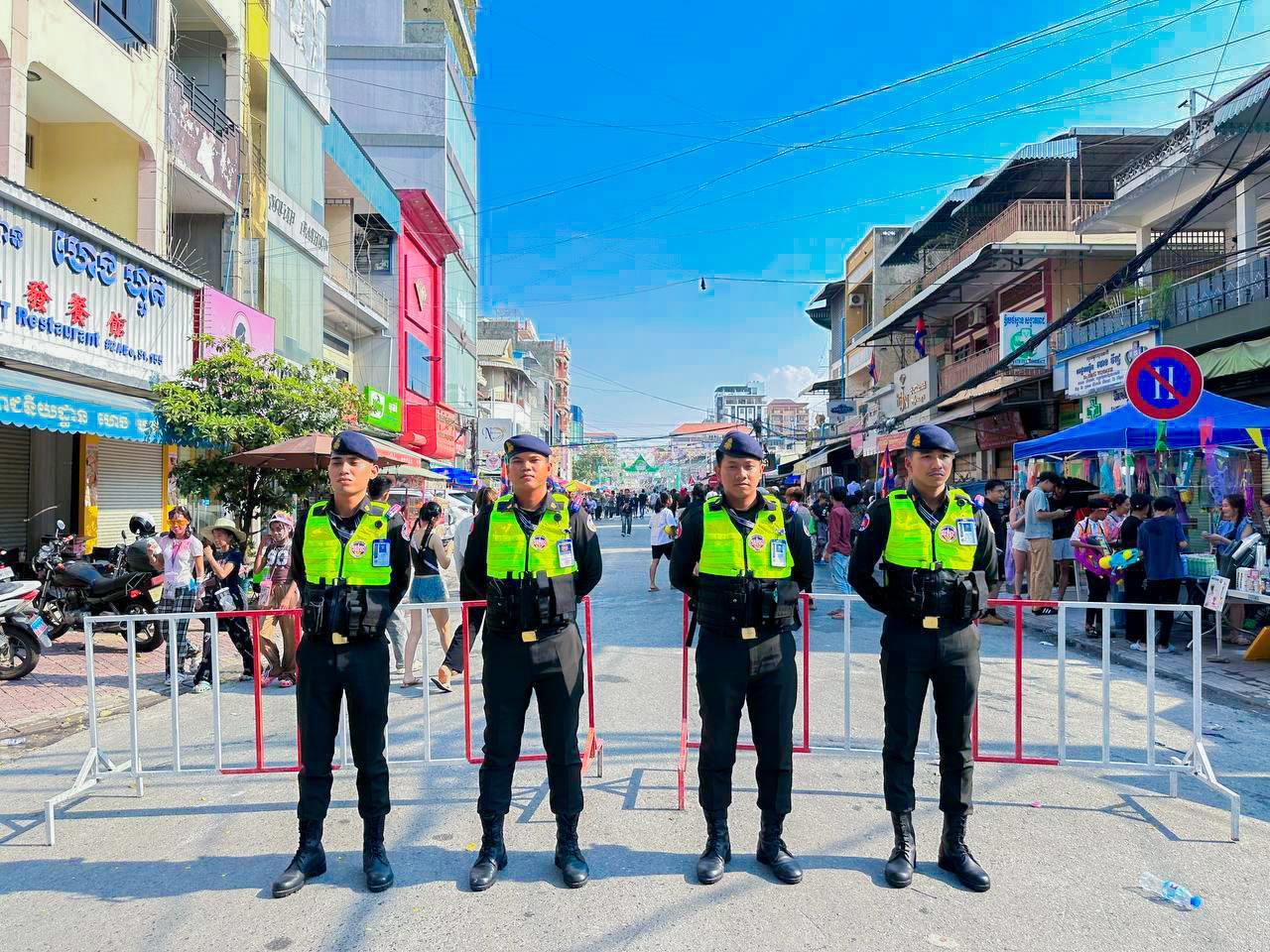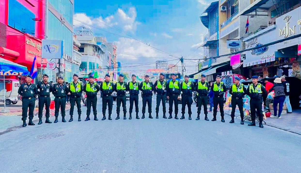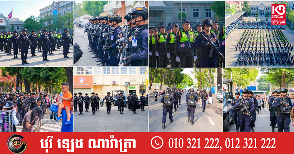 (ភ្នំពេញ)៖ នាថ្ងៃទី១៤ ខែមេសា ឆ្នាំ២០២៦ កម្លាំងកងរាជអាវុធហត្ថរាជធានីភ្នំពេញ ក្នុងទីបញ្ជាការ ក៏ដូចជានៅតាមបណ្ដាមូលដ្ឋានអាវុធហត្ថខណ្ឌទាំង១៤ បានចូលរួមជាមួយសមត្ថកិច្ចចម្រុះ ការពារសន្តិសុខ សុវត្ថិភាព រក្សាសណ្ដាប់ធ្នាប់ និងសង្គ្រោះបន្ទាន់ ជូនដល់ភ្ញៀវទេសចរណ៍ជាតិ-អន្តរជាតិ ដែលបានមកចូលរួមលេងកម្សាន្តក្នុងព្រឹត្តិការណ៍នគរសង្ក្រាន្ត នាឱកាសពិធីបុណ្យចូលឆ្នាំថ្មី ប្រពៃណីជាតិខ្មែរ នៅតាមបណ្តាទីតាំងនានាដែលបានរៀបចំពិធីកំសាន្តសប្បាយ ក្នុងភូមិសាស្ត្ររាជធានីភ្នំពេញ។