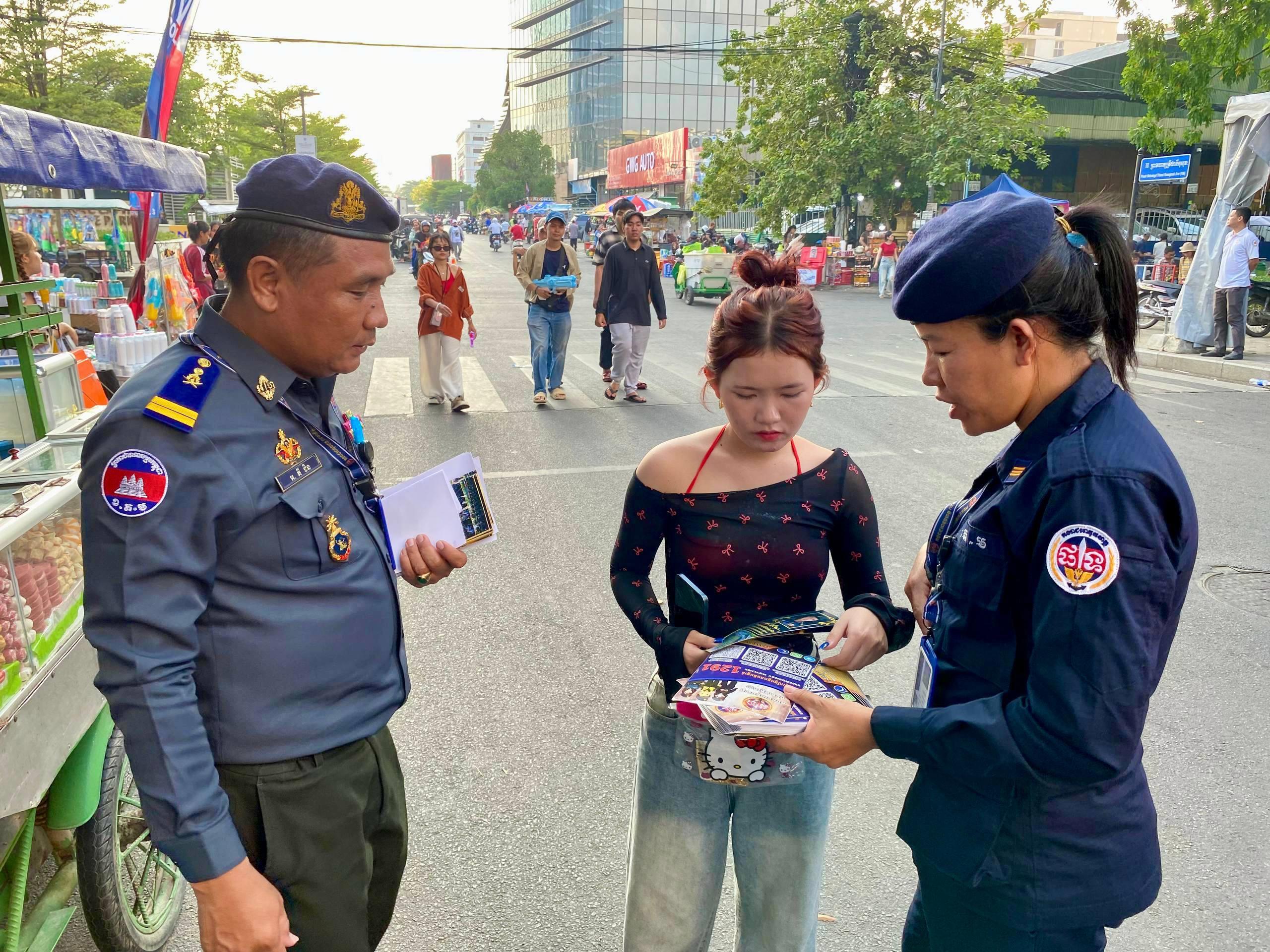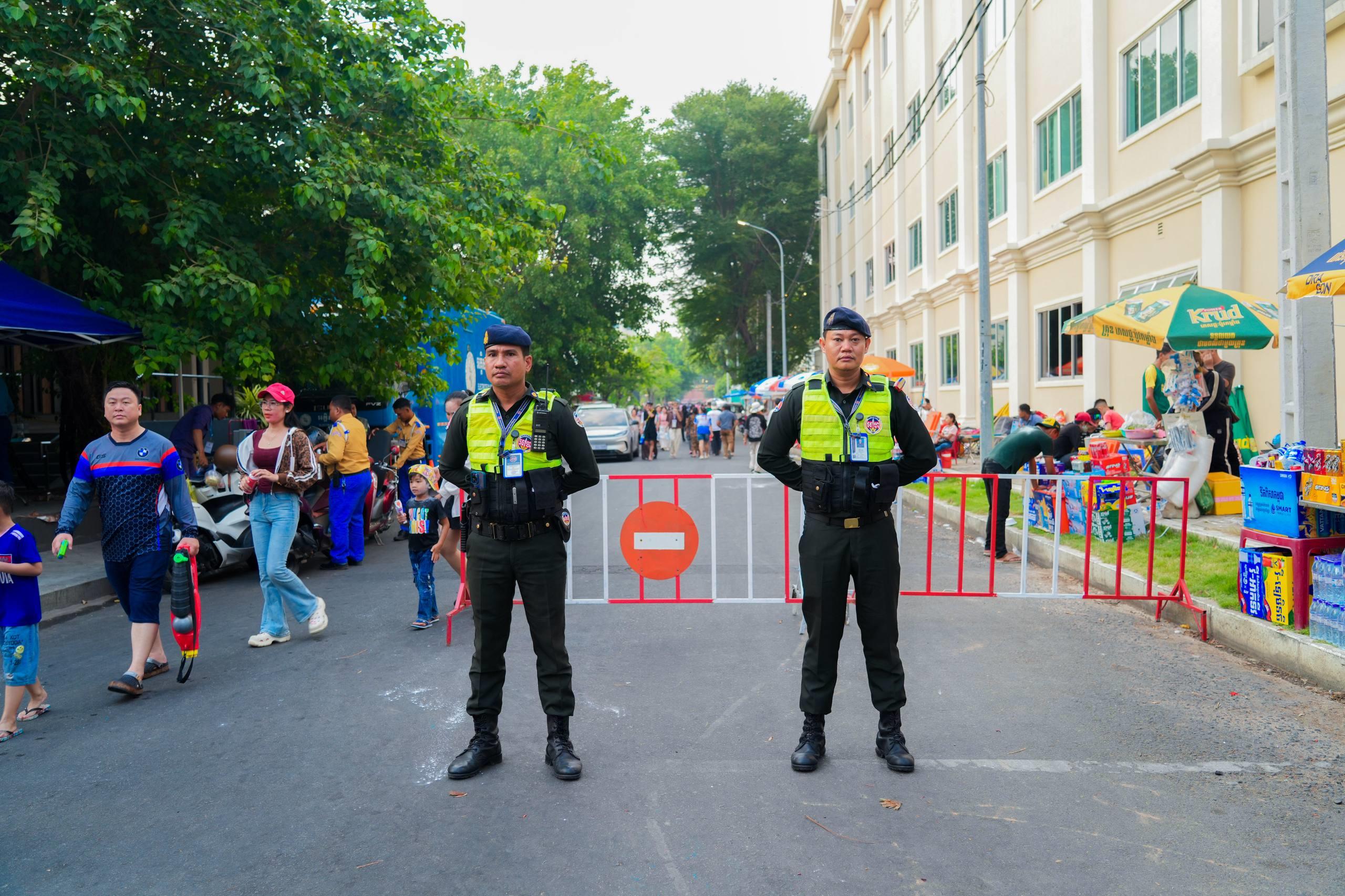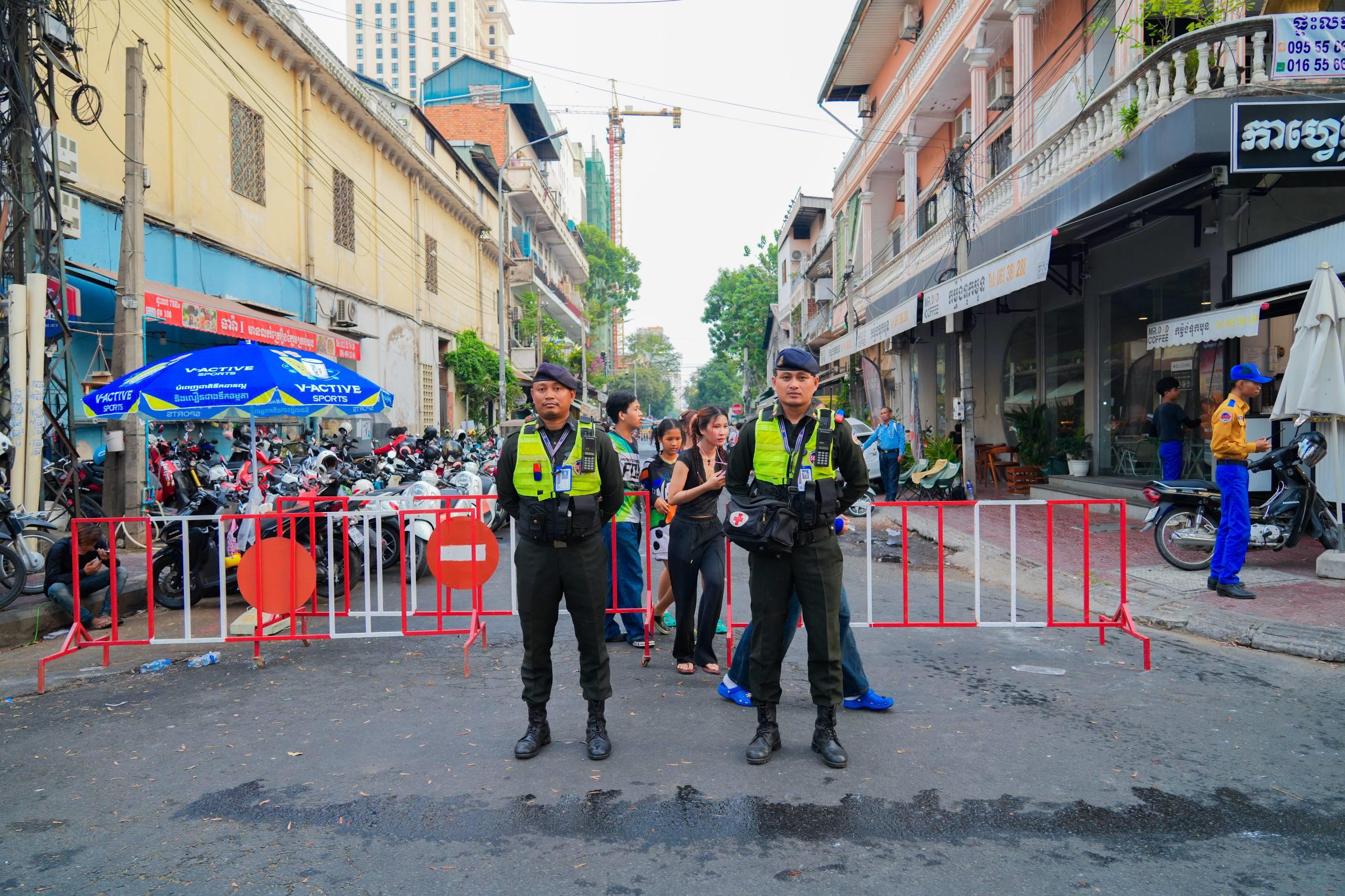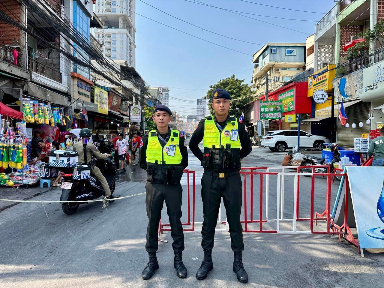 (ភ្នំពេញ)៖ នាថ្ងៃទី១៤ ខែមេសា ឆ្នាំ២០២៦ កម្លាំងកងរាជអាវុធហត្ថរាជធានីភ្នំពេញ ក្នុងទីបញ្ជាការ ក៏ដូចជានៅតាមបណ្ដាមូលដ្ឋានអាវុធហត្ថខណ្ឌទាំង១៤ បានចូលរួមជាមួយសមត្ថកិច្ចចម្រុះ ការពារសន្តិសុខ សុវត្ថិភាព រក្សាសណ្ដាប់ធ្នាប់ និងសង្គ្រោះបន្ទាន់ ជូនដល់ភ្ញៀវទេសចរណ៍ជាតិ-អន្តរជាតិ ដែលបានមកចូលរួមលេងកម្សាន្តក្នុងព្រឹត្តិការណ៍នគរសង្ក្រាន្ត នាឱកាសពិធីបុណ្យចូលឆ្នាំថ្មី ប្រពៃណីជាតិខ្មែរ នៅតាមបណ្តាទីតាំងនានាដែលបានរៀបចំពិធីកំសាន្តសប្បាយ ក្នុងភូមិសាស្ត្ររាជធានីភ្នំពេញ។