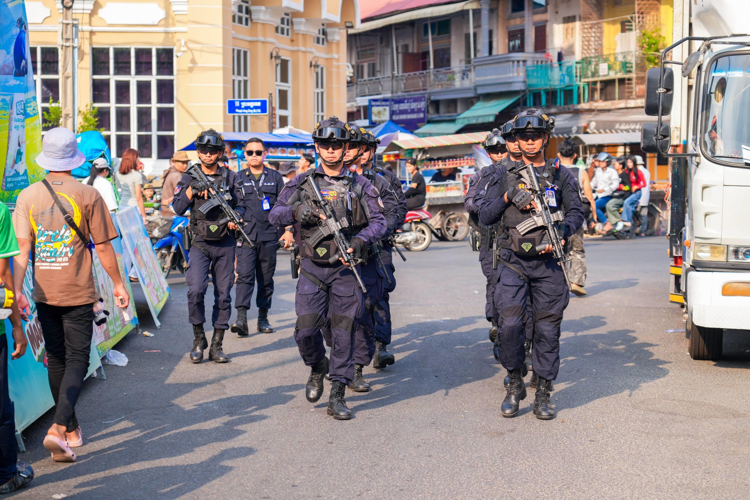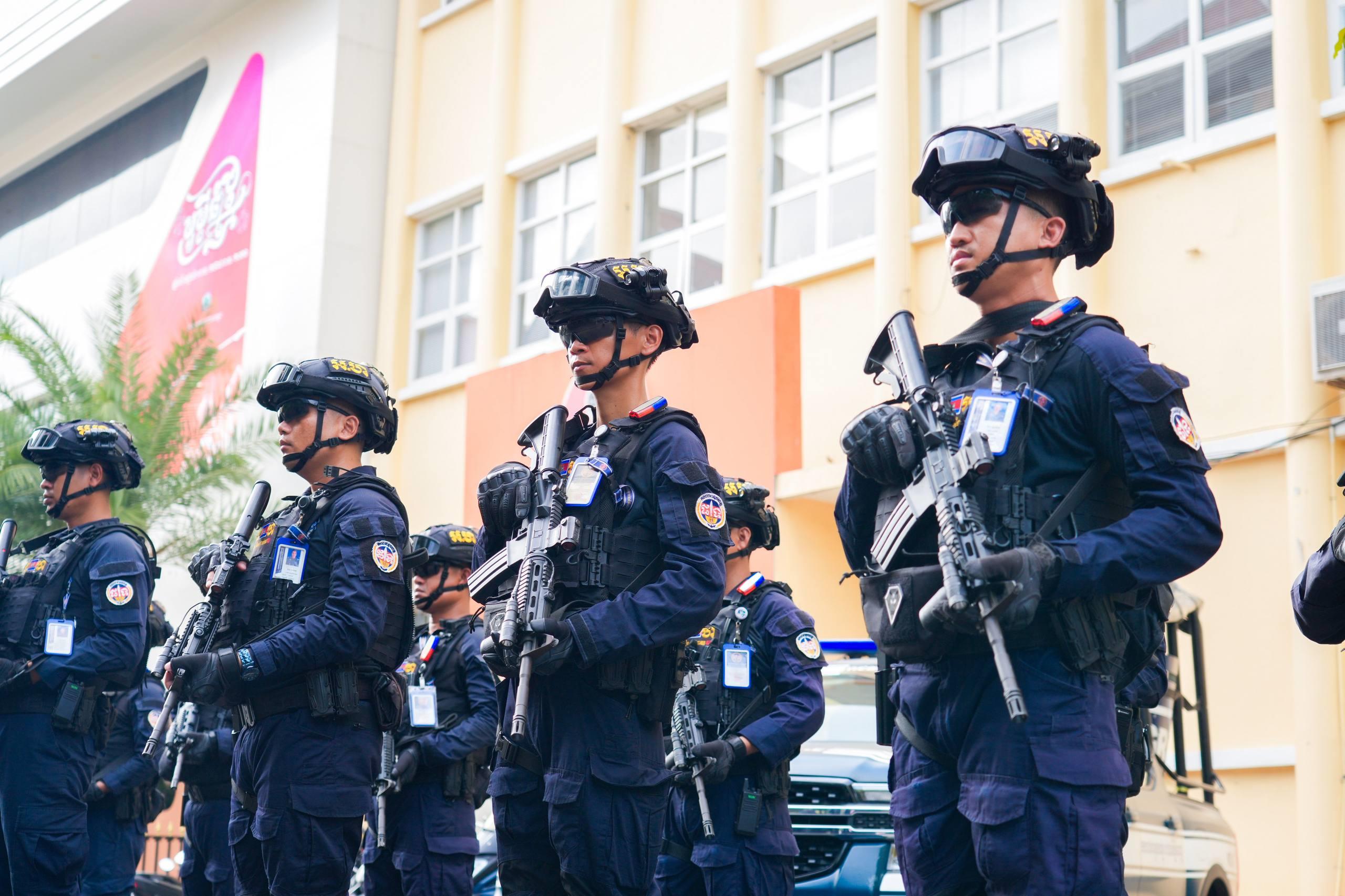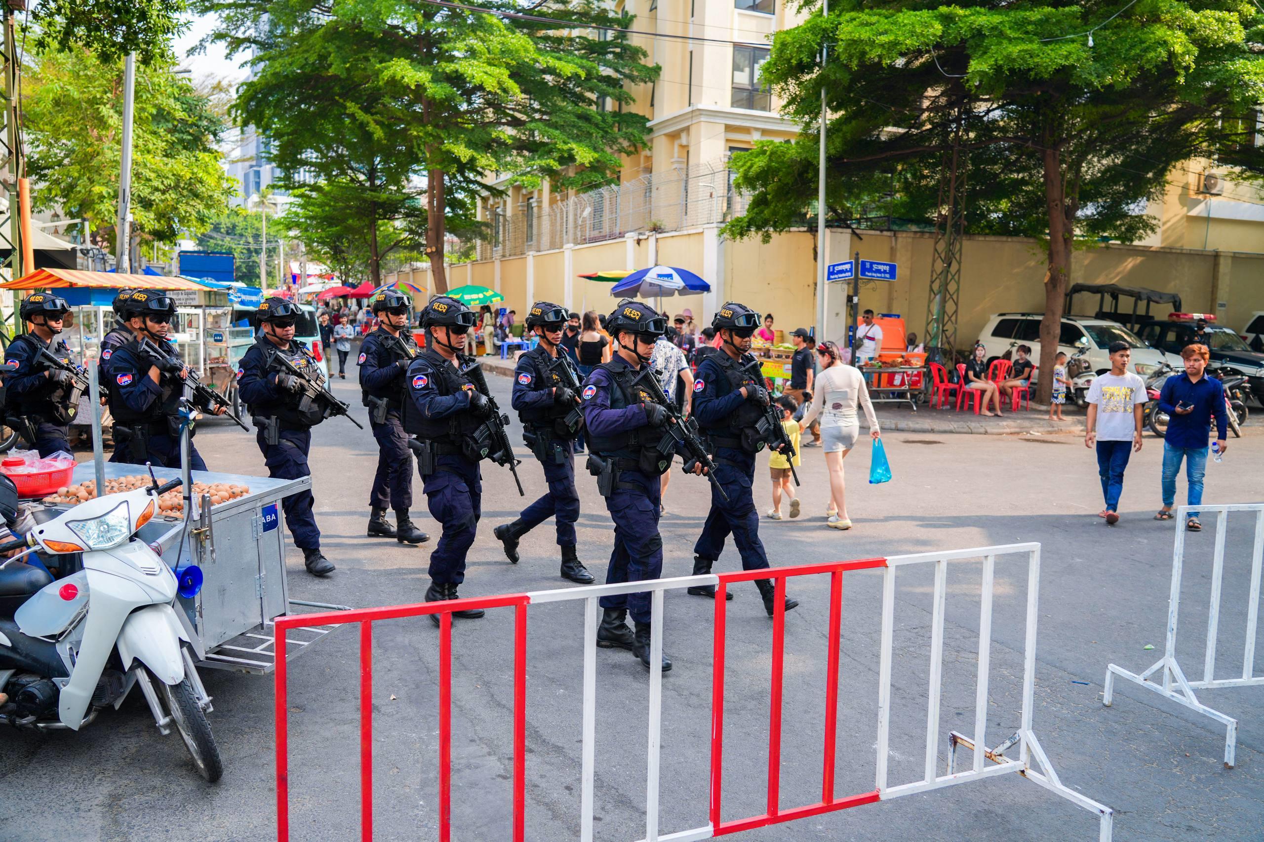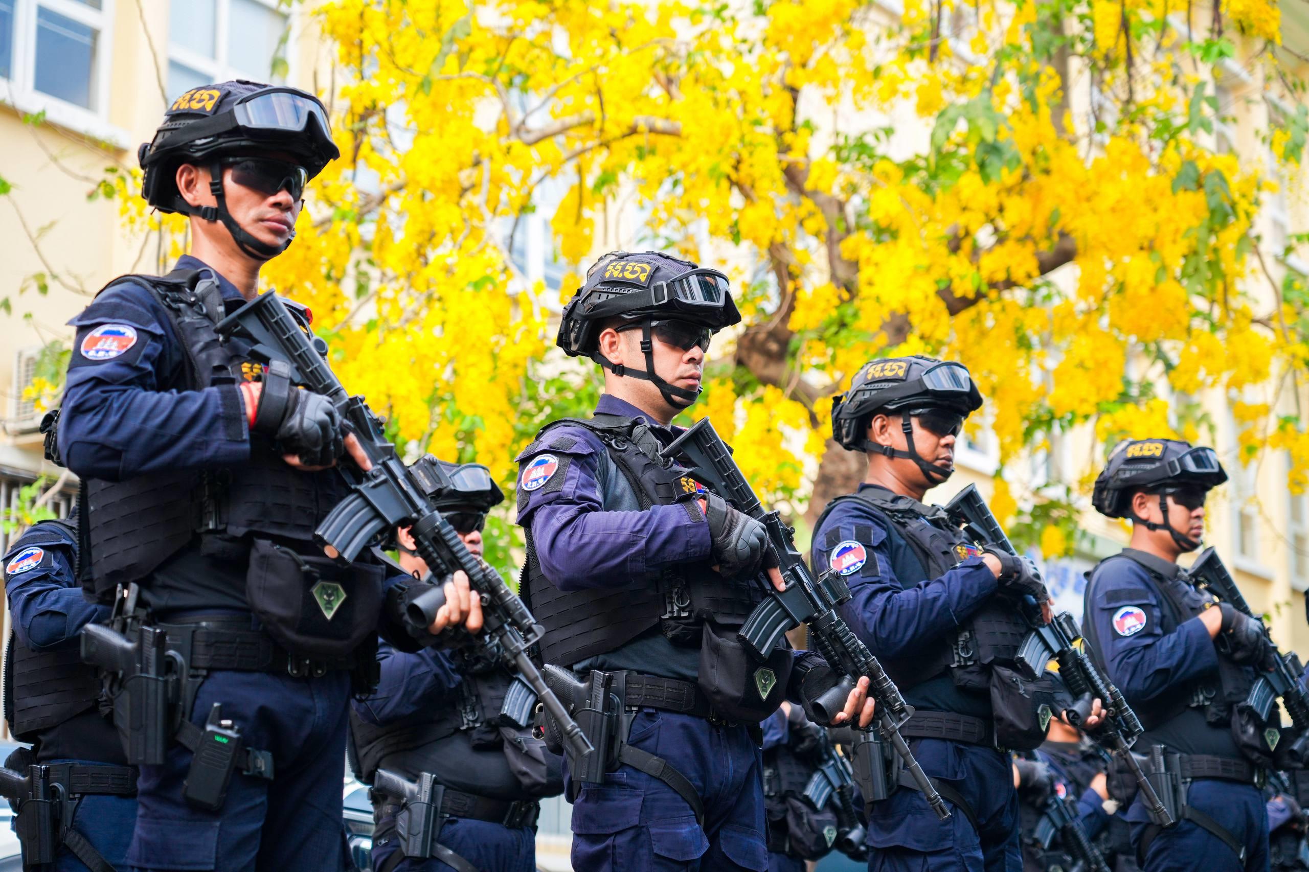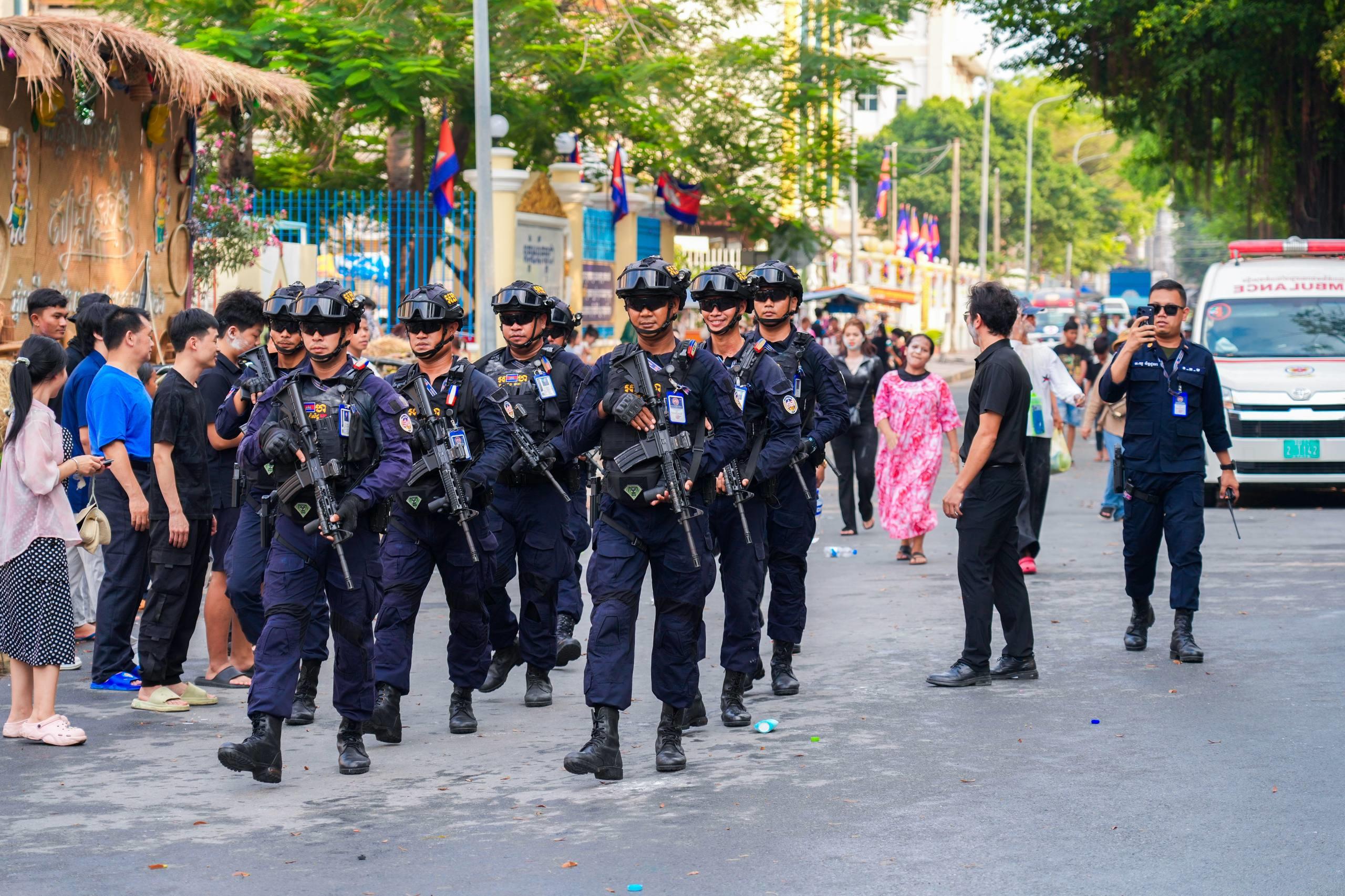 (ភ្នំពេញ)៖ នាថ្ងៃទី១៤ ខែមេសា ឆ្នាំ២០២៦ កម្លាំងកងរាជអាវុធហត្ថរាជធានីភ្នំពេញ ក្នុងទីបញ្ជាការ ក៏ដូចជានៅតាមបណ្ដាមូលដ្ឋានអាវុធហត្ថខណ្ឌទាំង១៤ បានចូលរួមជាមួយសមត្ថកិច្ចចម្រុះ ការពារសន្តិសុខ សុវត្ថិភាព រក្សាសណ្ដាប់ធ្នាប់ និងសង្គ្រោះបន្ទាន់ ជូនដល់ភ្ញៀវទេសចរណ៍ជាតិ-អន្តរជាតិ ដែលបានមកចូលរួមលេងកម្សាន្តក្នុងព្រឹត្តិការណ៍នគរសង្ក្រាន្ត នាឱកាសពិធីបុណ្យចូលឆ្នាំថ្មី ប្រពៃណីជាតិខ្មែរ នៅតាមបណ្តាទីតាំងនានាដែលបានរៀបចំពិធីកំសាន្តសប្បាយ ក្នុងភូមិសាស្ត្ររាជធានីភ្នំពេញ។