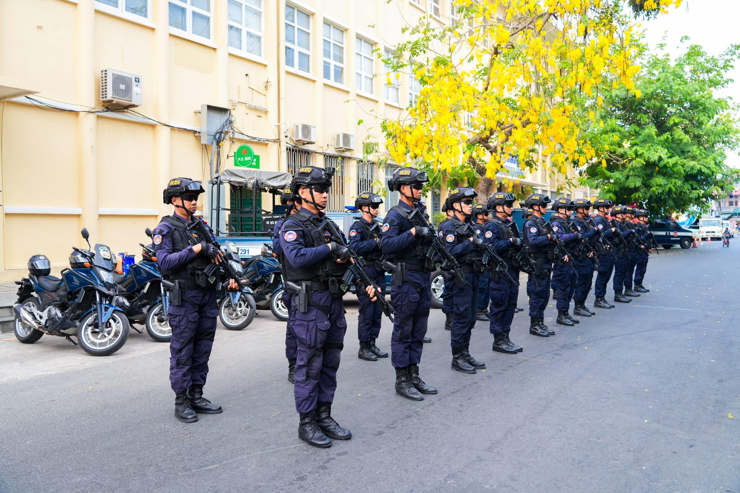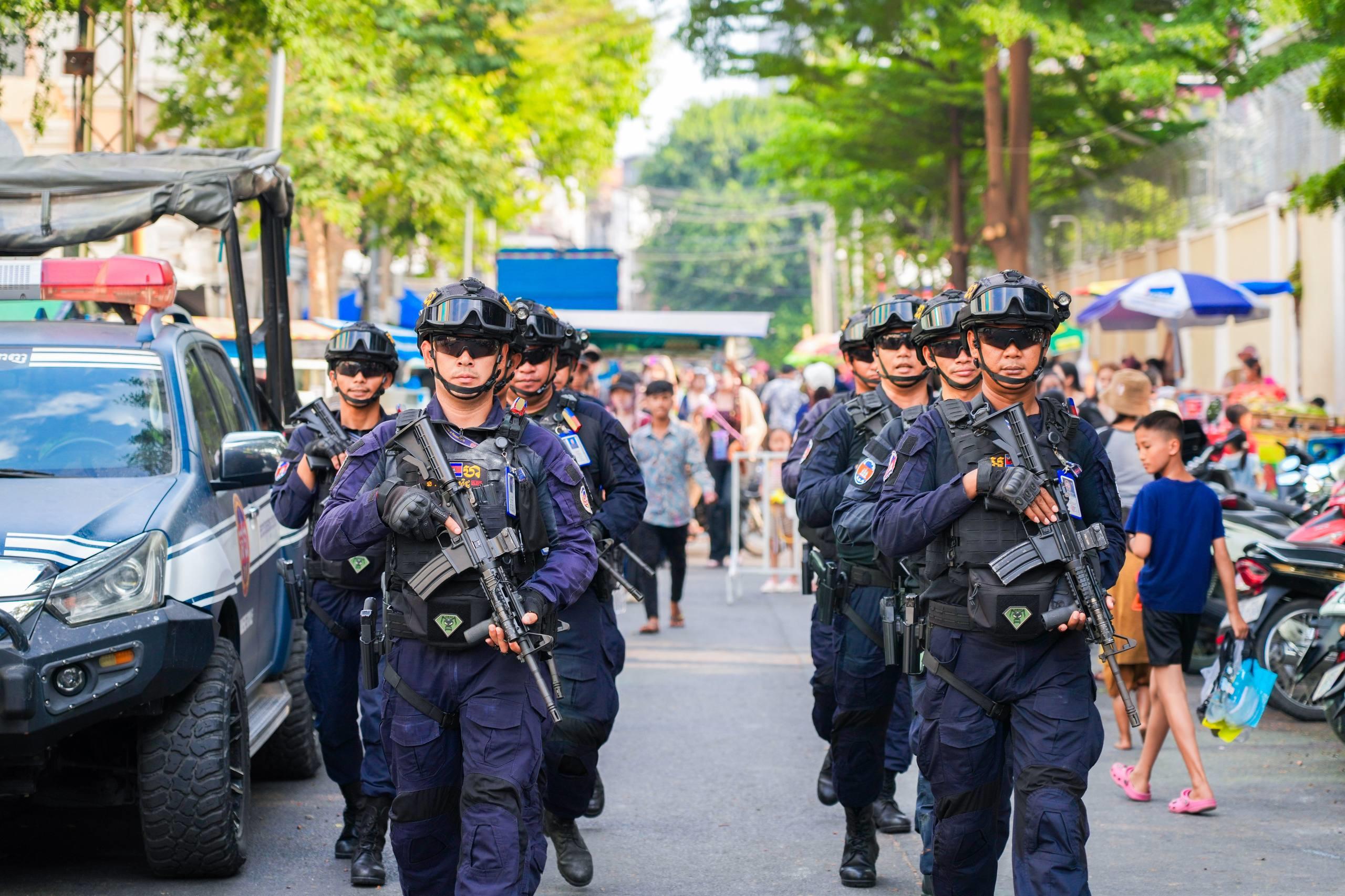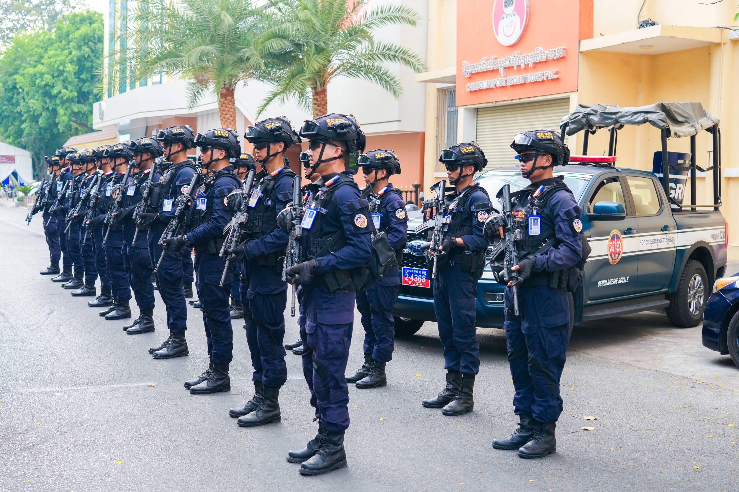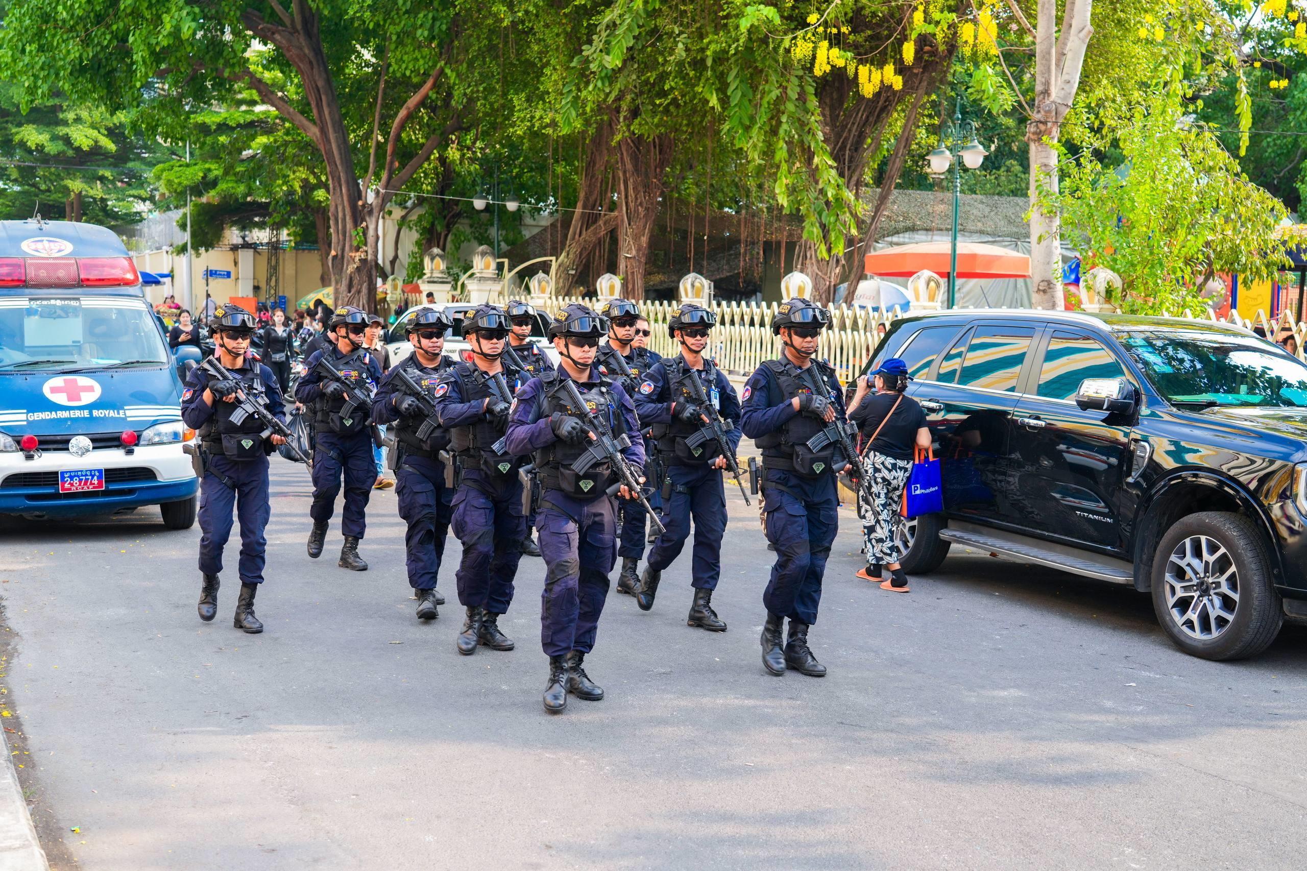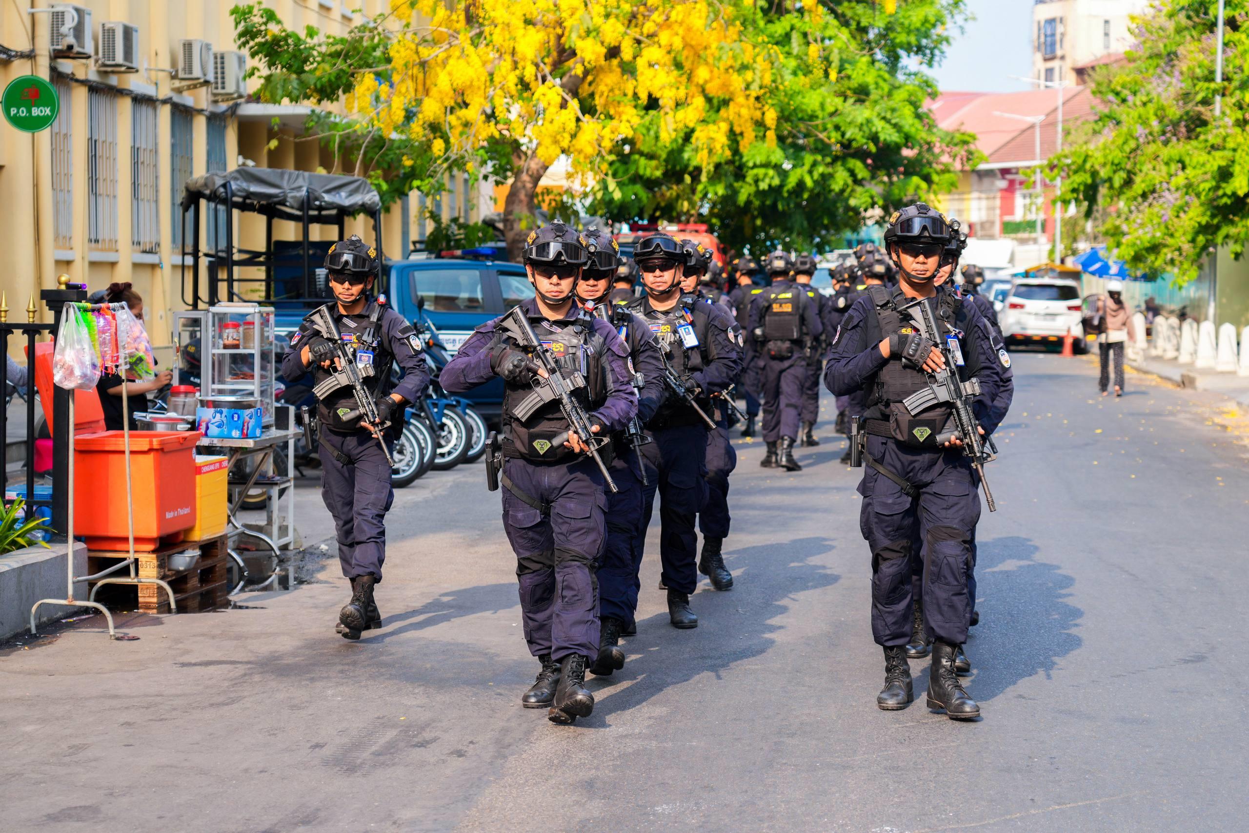 (ភ្នំពេញ)៖ នាថ្ងៃទី១៤ ខែមេសា ឆ្នាំ២០២៦ កម្លាំងកងរាជអាវុធហត្ថរាជធានីភ្នំពេញ ក្នុងទីបញ្ជាការ ក៏ដូចជានៅតាមបណ្ដាមូលដ្ឋានអាវុធហត្ថខណ្ឌទាំង១៤ បានចូលរួមជាមួយសមត្ថកិច្ចចម្រុះ ការពារសន្តិសុខ សុវត្ថិភាព រក្សាសណ្ដាប់ធ្នាប់ និងសង្គ្រោះបន្ទាន់ ជូនដល់ភ្ញៀវទេសចរណ៍ជាតិ-អន្តរជាតិ ដែលបានមកចូលរួមលេងកម្សាន្តក្នុងព្រឹត្តិការណ៍នគរសង្ក្រាន្ត នាឱកាសពិធីបុណ្យចូលឆ្នាំថ្មី ប្រពៃណីជាតិខ្មែរ នៅតាមបណ្តាទីតាំងនានាដែលបានរៀបចំពិធីកំសាន្តសប្បាយ ក្នុងភូមិសាស្ត្ររាជធានីភ្នំពេញ។
