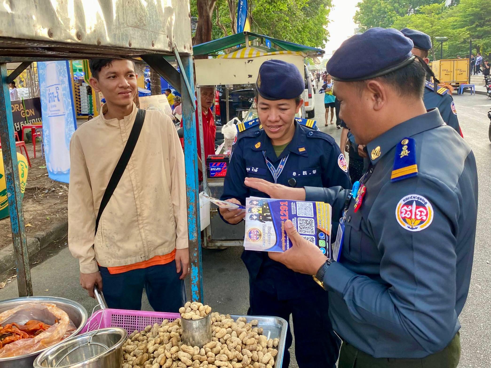 ឆ្លៀតឱកាសនោះ ក្រុមការងារអាវុធហត្ថជធានីភ្នំពេញ ក៏បានចុះផ្សព្វផ្សាយលេខទូរស័ព្ទអន្តរាគមន៏បន្ទាន់ (Emergency Hotline) 1291 ដល់សាធារណជនក៏ដូចជាភ្ញៀវទេសចរណ៍ជាតិ-អន្តរជាតិ ឱ្យបានជ្រួតជ្រាបឲ្យបានកាន់តែច្រើនបំផុត ពេលមានហេតុការណ៍បន្ទាន់កើតឡើង មិនថាយប់ ឬថ្ងៃ ត្រូវការ ការអន្តរាគមន៍ពី កម្លាំងកងរាជអាវុធហត្ថរាជធានីភ្នំពេញ ពួកគាត់អាចហៅទូរស័ព្ទទៅកាន់លេខ 1291 ឬ អាចទាក់ទងមកតាមបណ្តាញ Telegram, WhatsApp របស់កងរាជអាវុធហត្ថរាជធានីភ្នំពេញ តាមរយៈលេខ 031 5555 669 ឬឆាតទៅកាន់ផេកហ្វេសប៊ុករបស់កងរាជអាវុធហត្ថរាជធានីភ្នំពេញ ដែលមានឈ្មោះថា Phnom Penh Gendarmerie៕