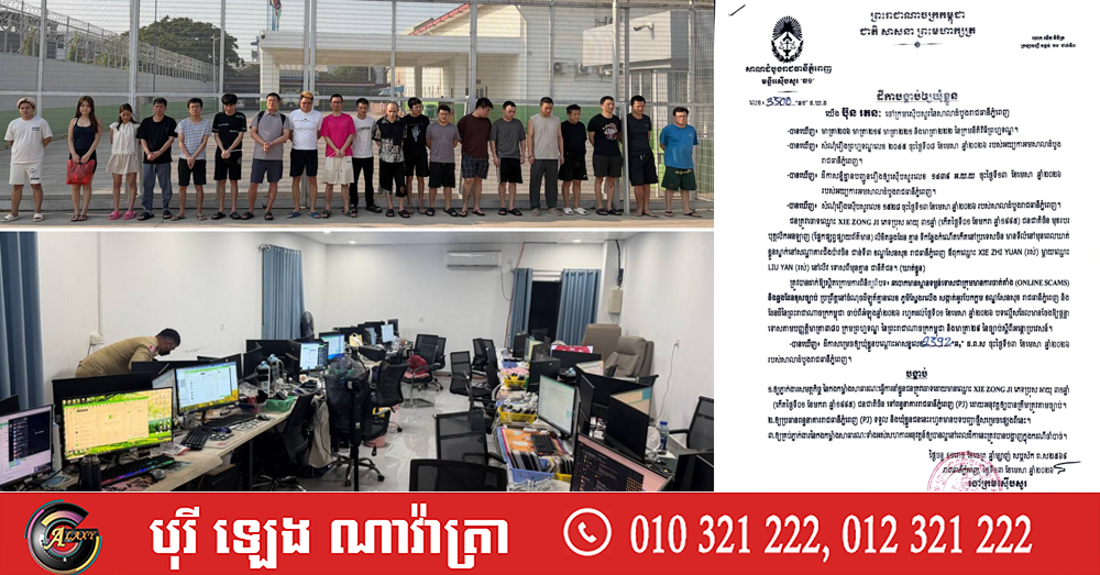 ចៅក្រមស៉ើបសួរសាលាដំបូងរាជធានីភ្នំពេញ សម្រេចឃុំខ្លួនជនជាតិចិន២០នាក់ ពាក់ព័ន្ធបទល្មើស Online Scams