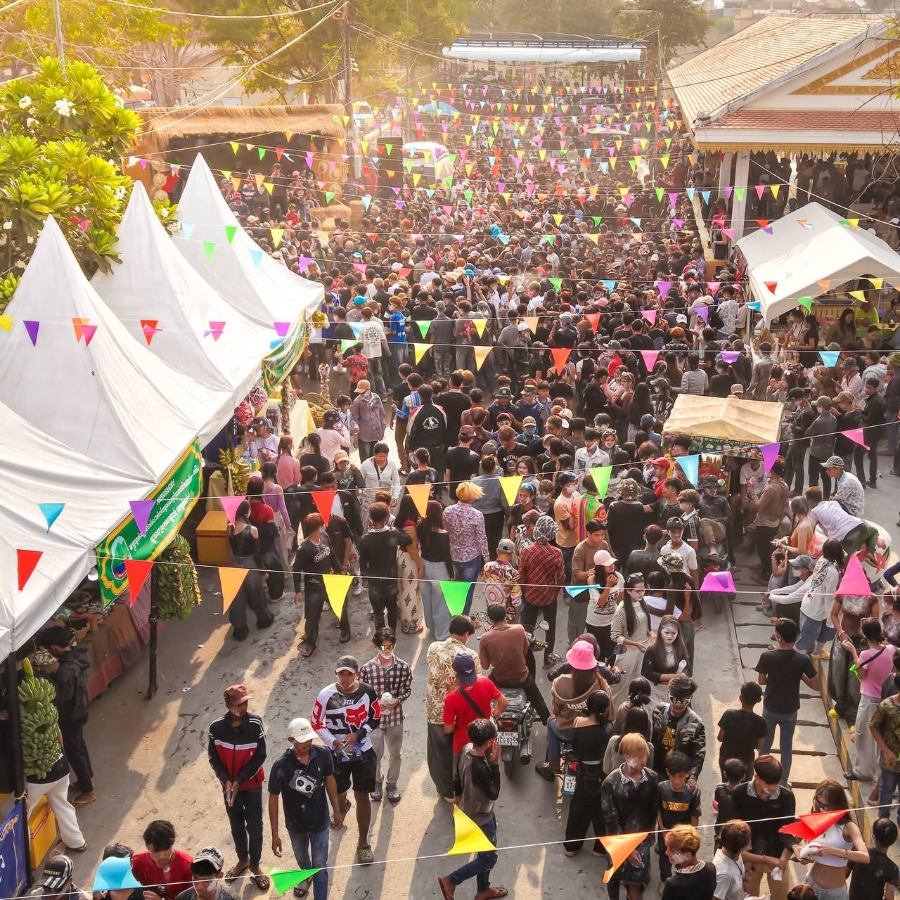 ទីនោះមានការរៀបចំជាការលេងល្បែងប្រជាប្រិយ រាំកម្សាន្ត និងការតាំងពិព័រណ៍ផ្សេងៗ បង្កើតបានជាបរិយាកាសសប្បាយរីករាយយ៉ាងក្រៃលែង។