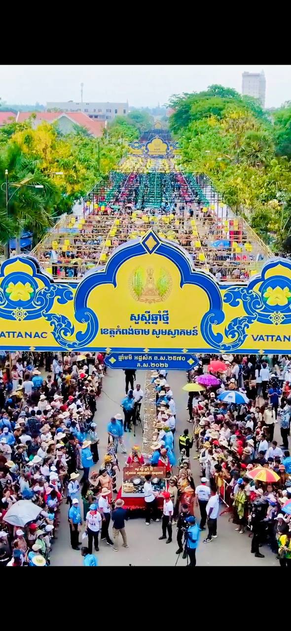 (កំពង់ចាម)៖ លោក ហួត ហាក់ រដ្ឋមន្ត្រីក្រសួងទេសចរណ៍ រួមជាមួយលោក អ៊ុន ចាន់ដា អភិបាល នៃគណៈអភិបាលខេត្តកំពង់ចាម អញ្ជើញជាអធិបតីក្នុងពិធីបើកសង្ក្រាន្តកំពង់ចាម និងព្រឹត្តិការណ៍លៀសហាល ទម្ងន់ ៥តោន ចម្ងាយ ១,២០០ម៉ែត្រ នៃព្រឹត្តិការណ៍សង្ក្រាន្តកំពង់ចាម នៅតាមដងផ្លូវមុខសាលាខេត្តកំពង់ចាម នៅថ្ងៃទី១៥ ខែមេសា ឆ្នាំ២០២៦។
