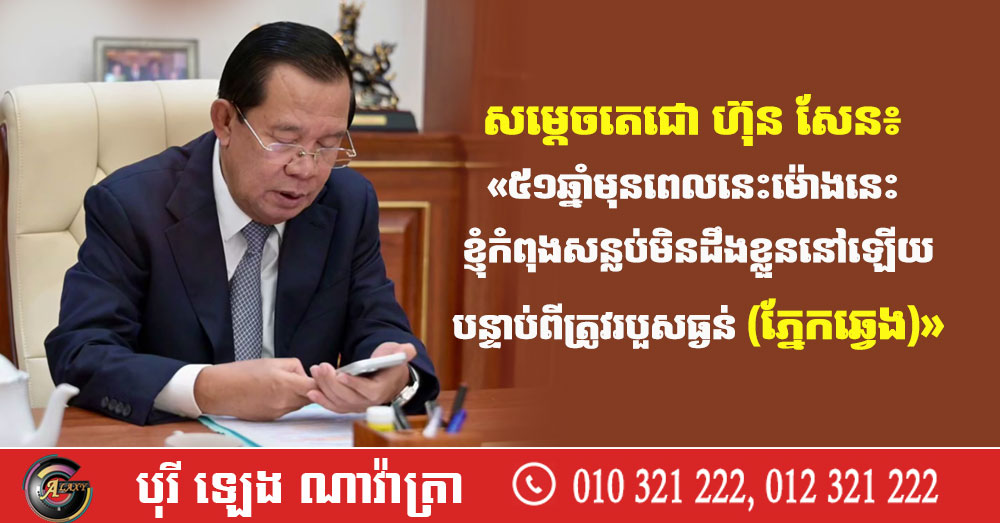 សម្តេចតេជោ ហ៊ុន សែន៖ «៥១ឆ្នាំមុនពេលនេះម៉ោងនេះ ខ្ញុំកំពុងសន្លប់មិនដឹងខ្លួននៅឡើយបន្ទាប់ពីត្រូវរបួសធ្ងន់ (ភ្នែកឆ្វេង)»