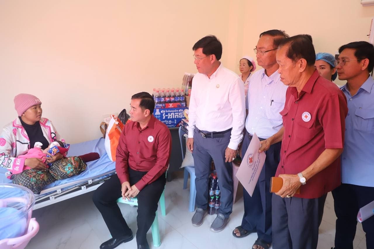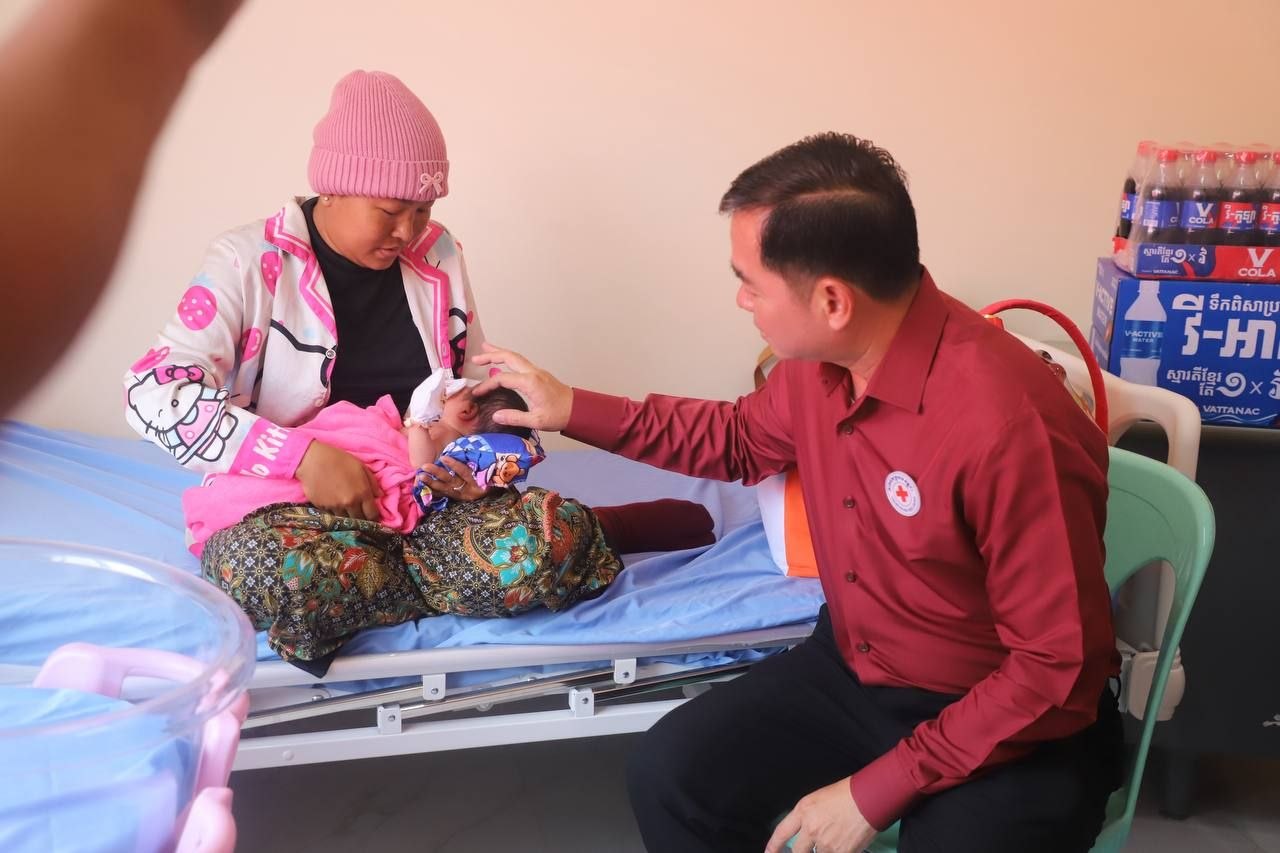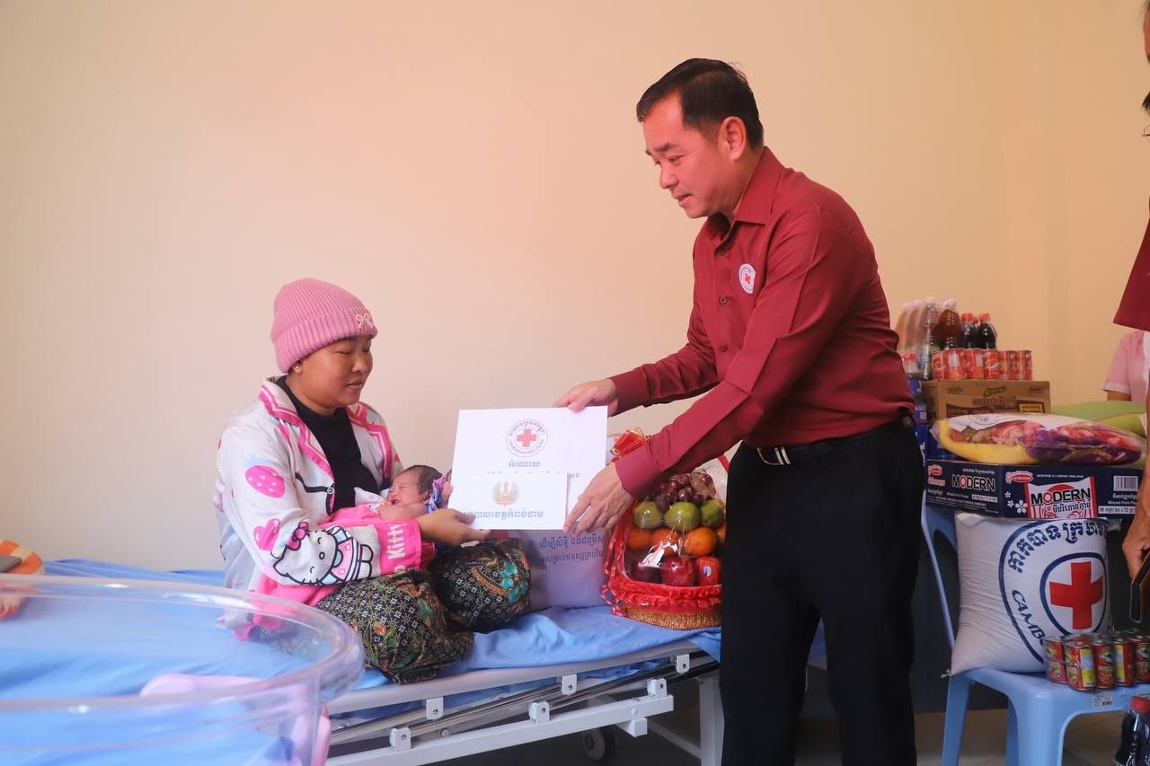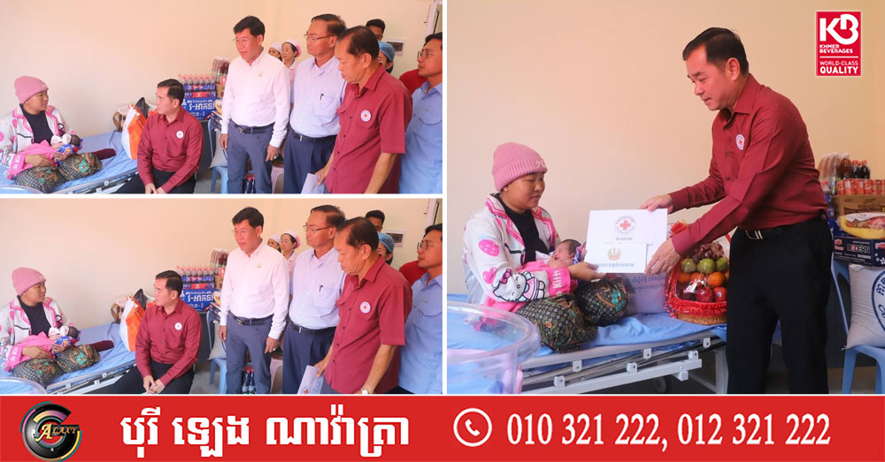 ប្រធានសាខាកាកបាទក្រហមខេត្តកំពង់ចាម នាំអំណោយចុះសួរសុខទុក្ខ ភរិយាយោធិនជួរមុខ ដែលសម្រាលកូនក្នុងមន្ទីរពេទ្យបង្អែកខេត្ត