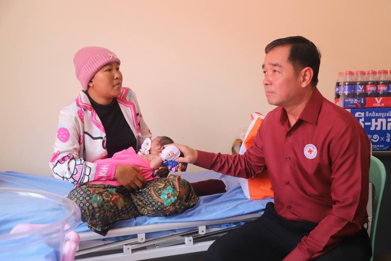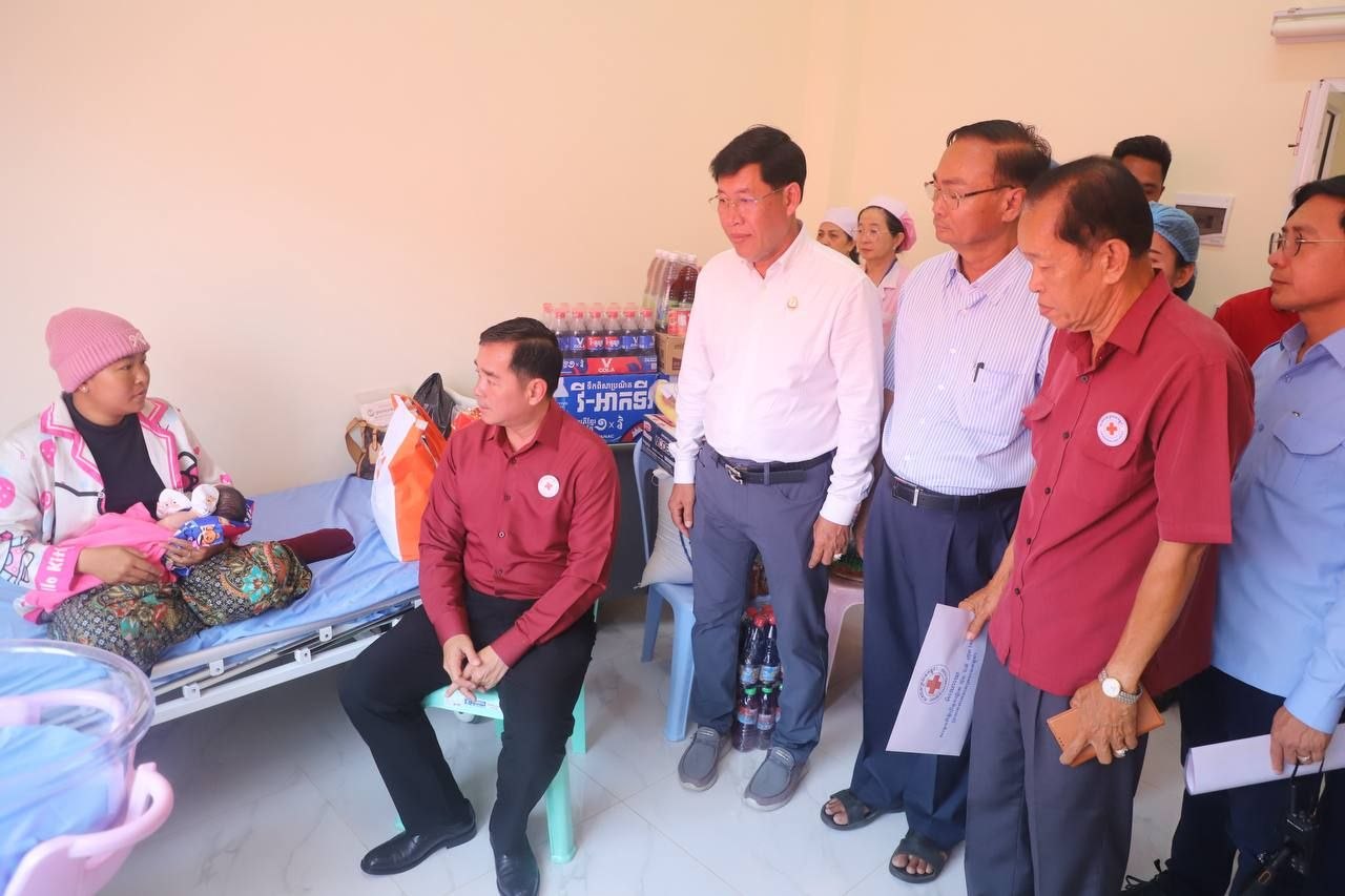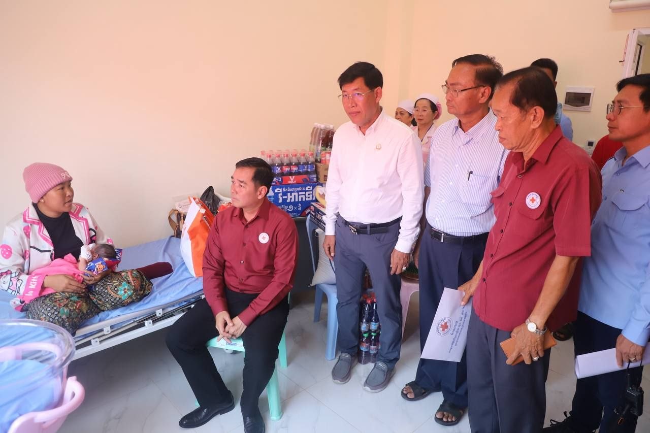 ប្រធានសាខាកាកបាទក្រហមខេត្តកំពង់ចាម នាំអំណោយចុះសួរសុខទុក្ខ ភរិយាយោធិនជួរមុខ ដែលសម្រាលកូនក្នុងមន្ទីរពេទ្យបង្អែកខេត្ត