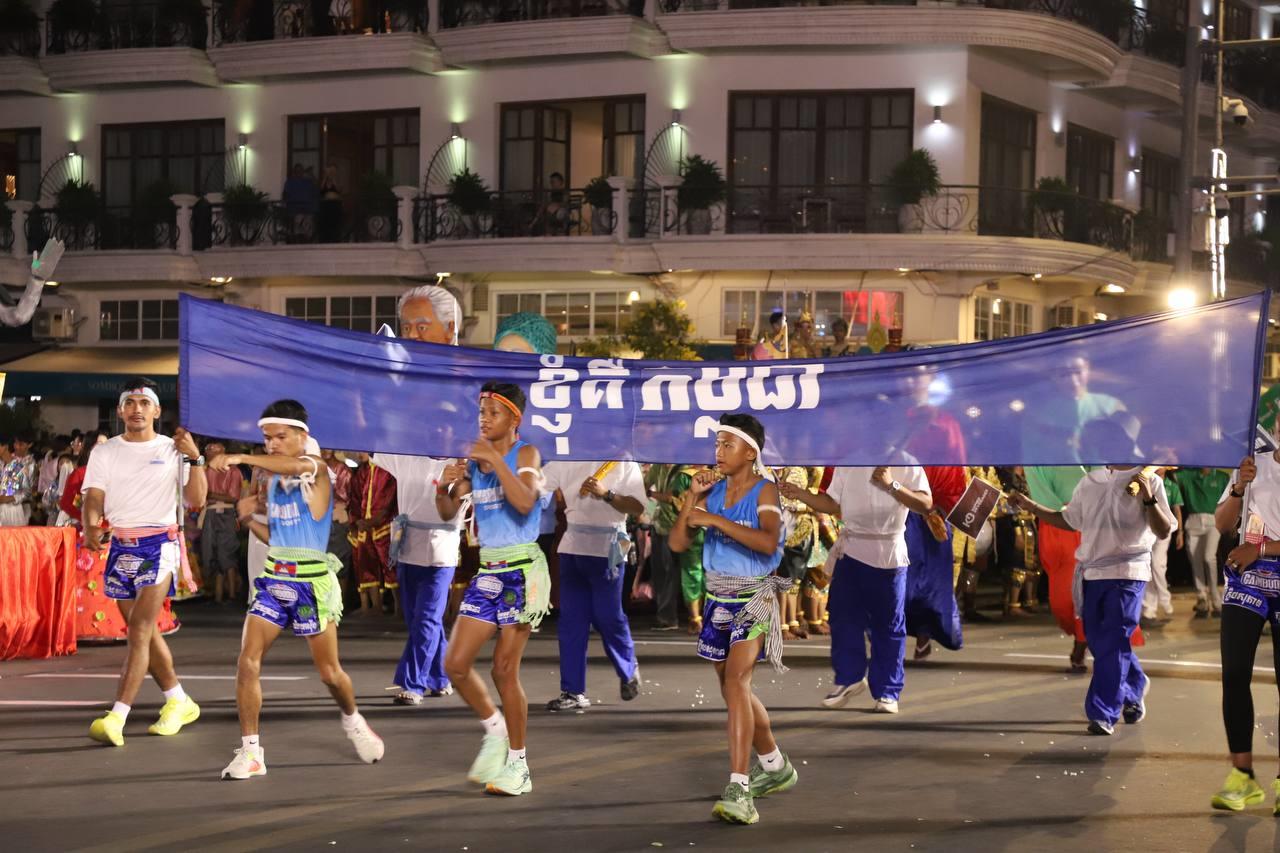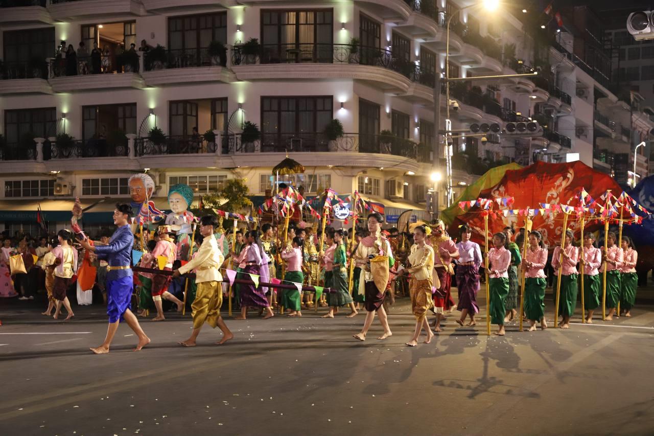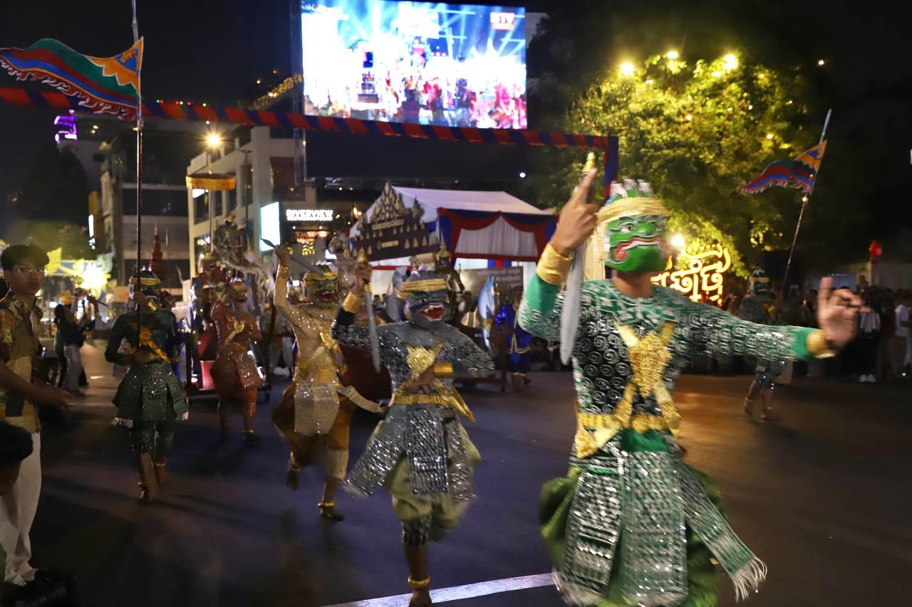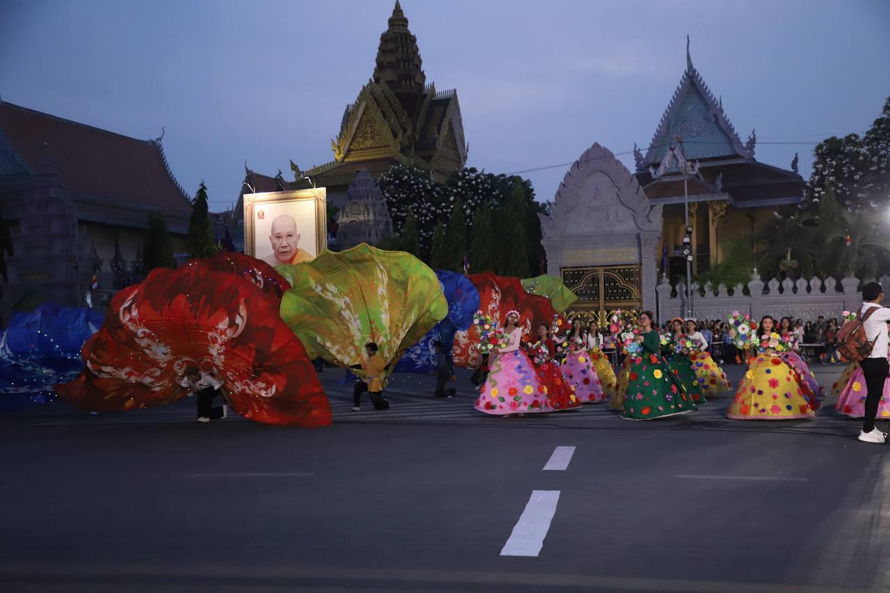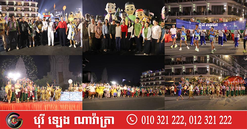 (ភ្នំពេញ)៖ លោក ឃួង ស្រេង អភិបាលរាជធានីភ្នំពេញ តំណាងលោក ហ៊ុន ម៉ានី ឧបនាយករដ្ឋមន្ត្រី រដ្ឋមន្ត្រីក្រសួងមុខងារសាធារណៈ និងជាប្រធានសហភាពសហព័ន្ធយុវជនកម្ពុជា (ស.ស.យ.ក.) និងលោកស្រី នៅល្ងាចថ្ងៃទី១៨ ខែមេសា ដែលជាថ្ងៃទី៥ នៃព្រឹត្តិការណ៍នគរសង្រា្កន្ត ឆ្នាំ២០២៦ ក្នុងពិធីបុណ្យចូលឆ្នាំថ្មីប្រពៃណីជាតិខ្មែរ ឆ្នាំមមី បានដឹកនាំយុវជនយ៉ាងច្រើនកុះករ ដង្ហែក្បួន នគរសង្ក្រាន្តឆ្នាំ២០២៦ លើកទី២ នៅបរិវេណផ្លូវថ្មើរជើងចតុមុខ មុខវត្តឧណ្ណាលោម។