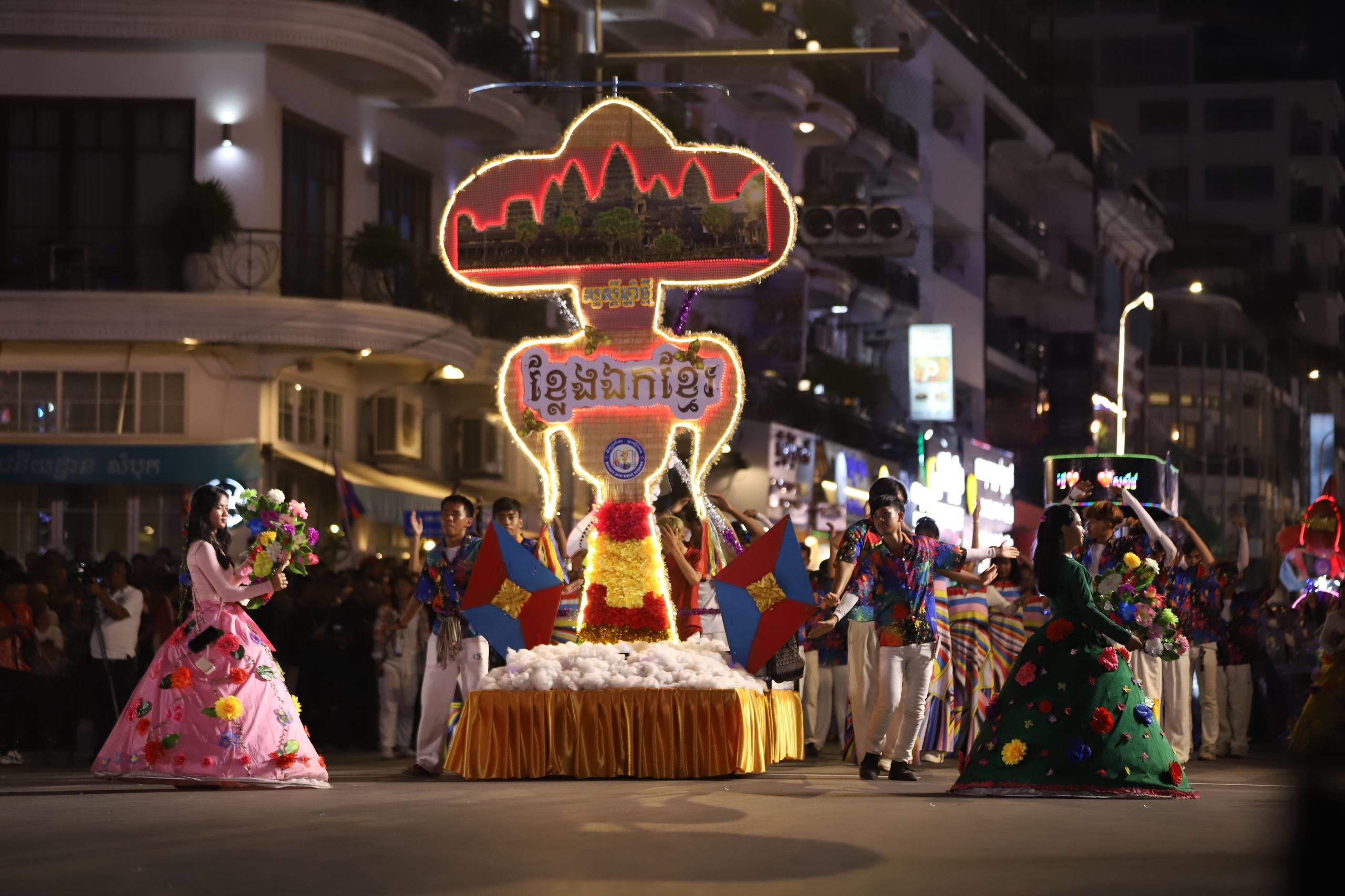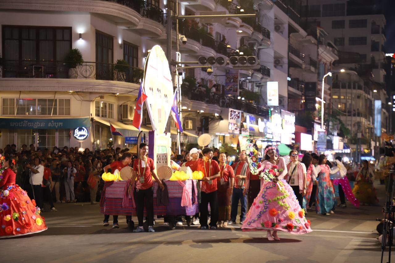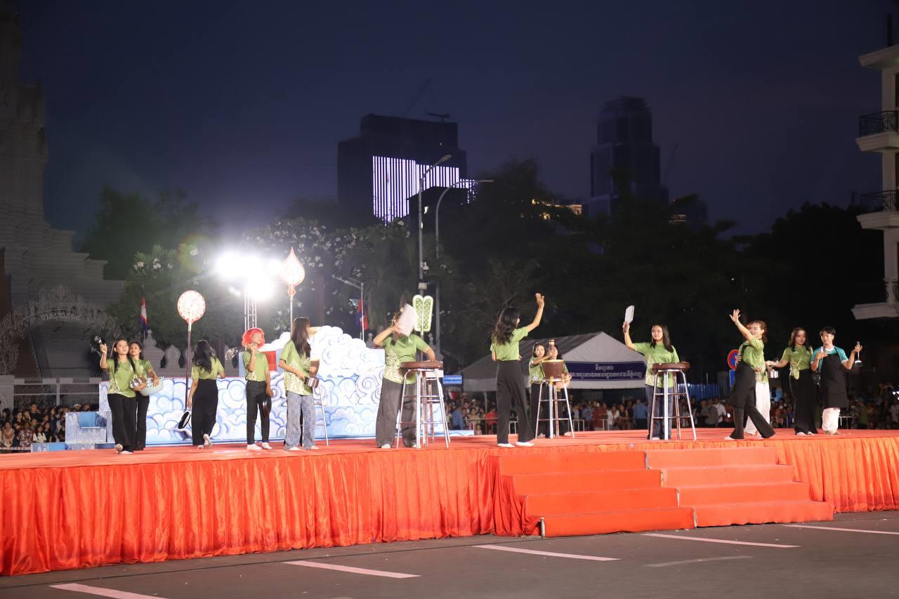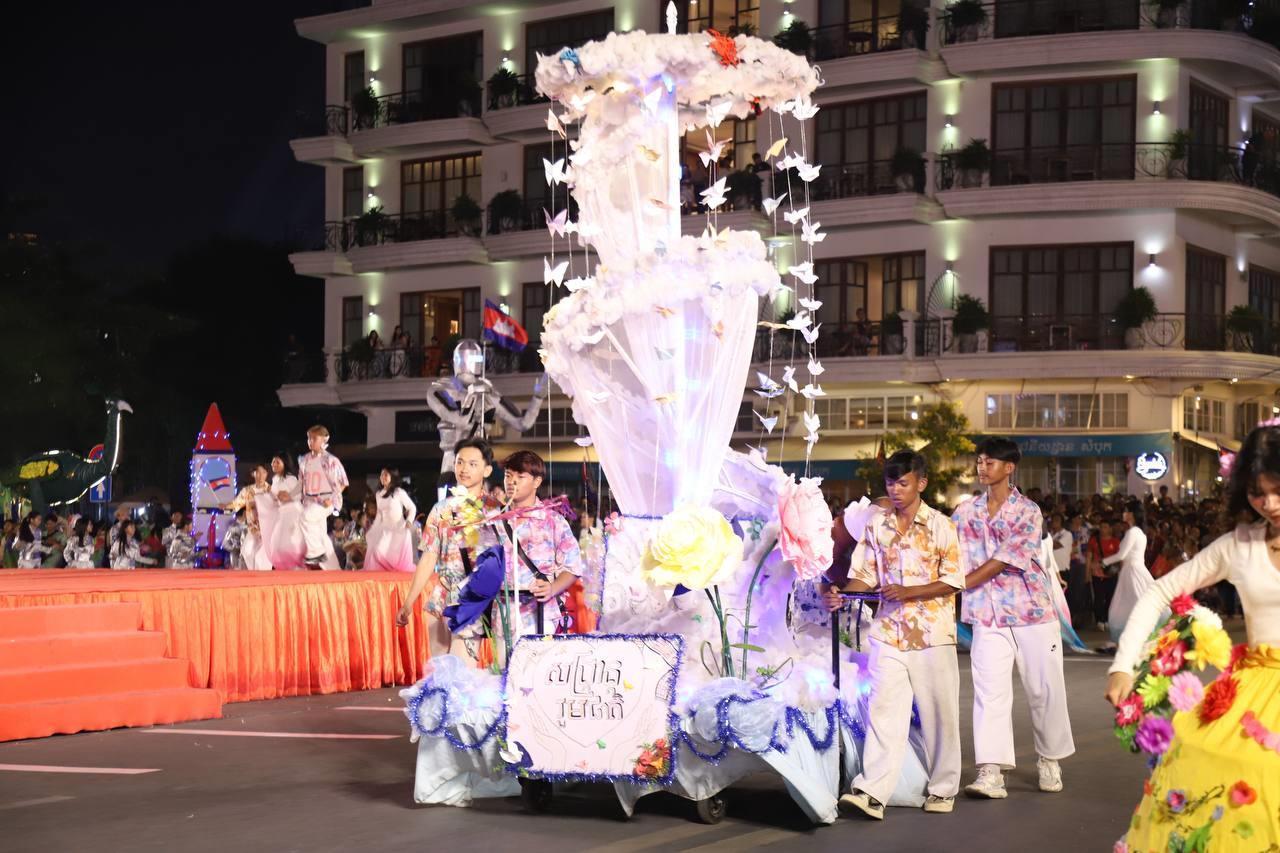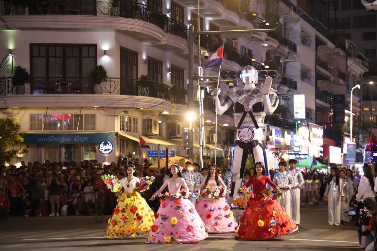 (ភ្នំពេញ)៖ លោក ឃួង ស្រេង អភិបាលរាជធានីភ្នំពេញ តំណាងលោក ហ៊ុន ម៉ានី ឧបនាយករដ្ឋមន្ត្រី រដ្ឋមន្ត្រីក្រសួងមុខងារសាធារណៈ និងជាប្រធានសហភាពសហព័ន្ធយុវជនកម្ពុជា (ស.ស.យ.ក.) និងលោកស្រី នៅល្ងាចថ្ងៃទី១៨ ខែមេសា ដែលជាថ្ងៃទី៥ នៃព្រឹត្តិការណ៍នគរសង្រា្កន្ត ឆ្នាំ២០២៦ ក្នុងពិធីបុណ្យចូលឆ្នាំថ្មីប្រពៃណីជាតិខ្មែរ ឆ្នាំមមី បានដឹកនាំយុវជនយ៉ាងច្រើនកុះករ ដង្ហែក្បួន នគរសង្ក្រាន្តឆ្នាំ២០២៦ លើកទី២ នៅបរិវេណផ្លូវថ្មើរជើងចតុមុខ មុខវត្តឧណ្ណាលោម។