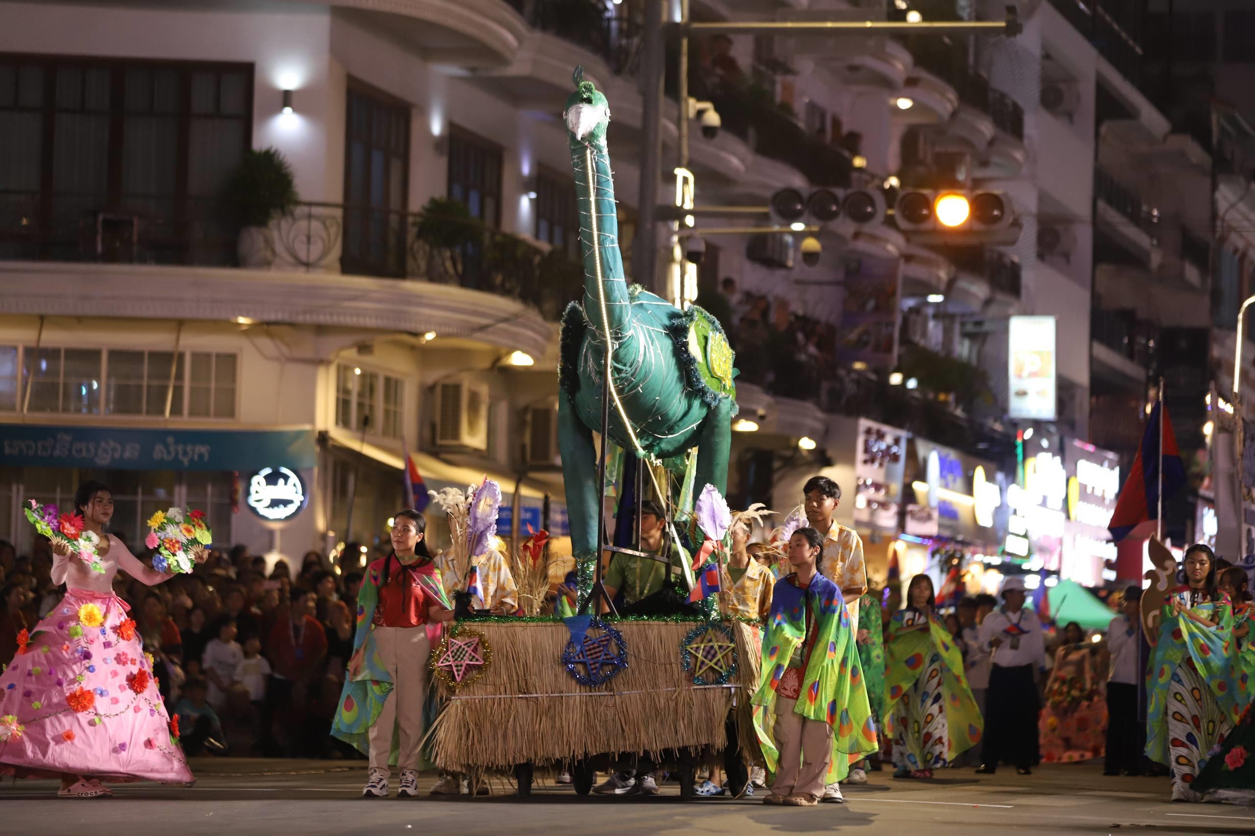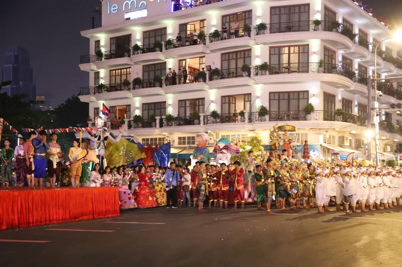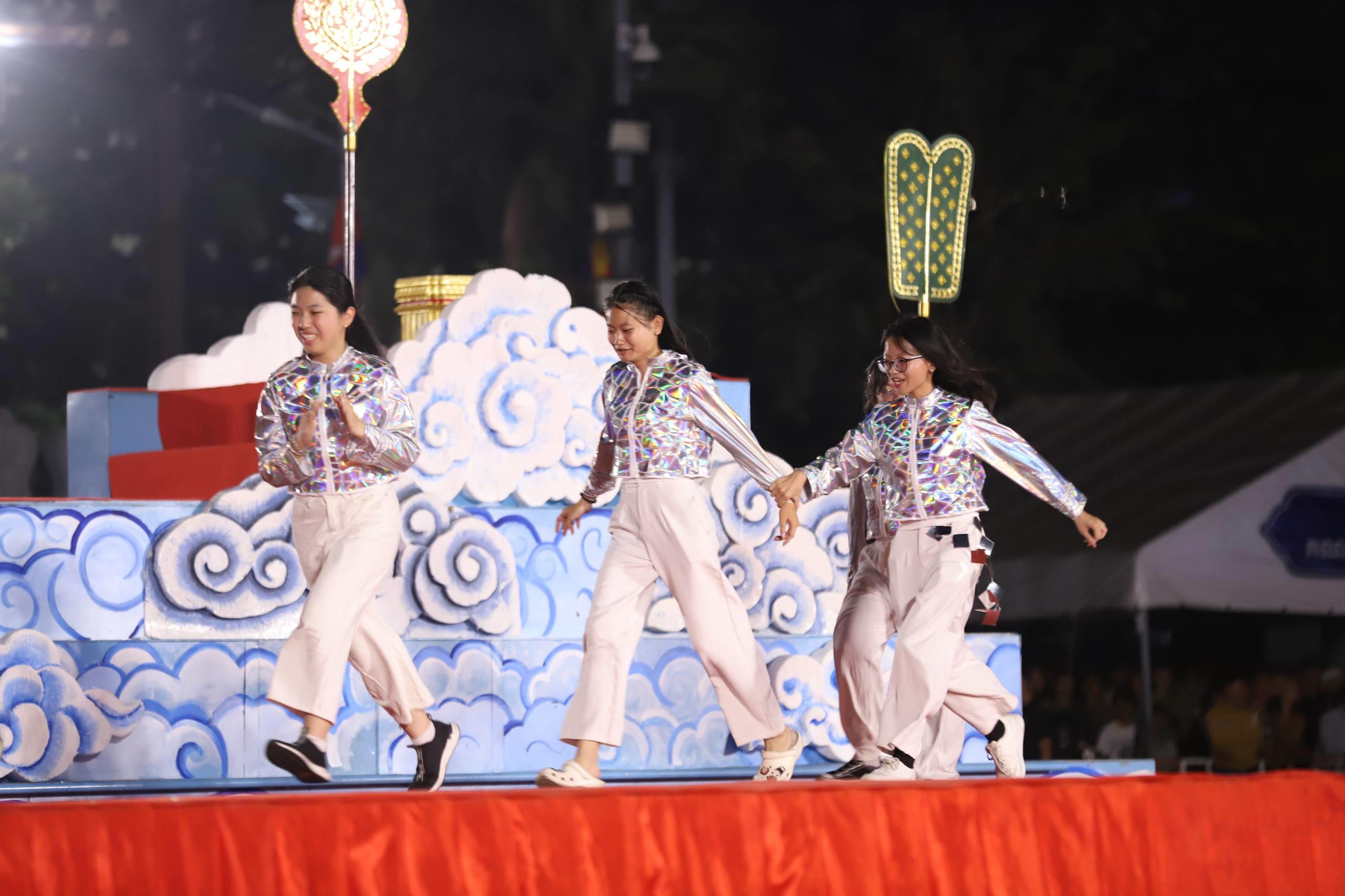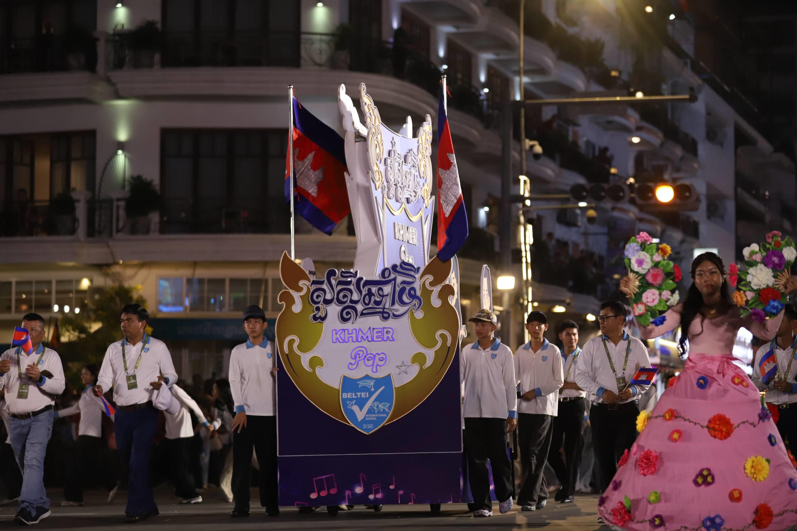 (ភ្នំពេញ)៖ លោក ឃួង ស្រេង អភិបាលរាជធានីភ្នំពេញ តំណាងលោក ហ៊ុន ម៉ានី ឧបនាយករដ្ឋមន្ត្រី រដ្ឋមន្ត្រីក្រសួងមុខងារសាធារណៈ និងជាប្រធានសហភាពសហព័ន្ធយុវជនកម្ពុជា (ស.ស.យ.ក.) និងលោកស្រី នៅល្ងាចថ្ងៃទី១៨ ខែមេសា ដែលជាថ្ងៃទី៥ នៃព្រឹត្តិការណ៍នគរសង្រា្កន្ត ឆ្នាំ២០២៦ ក្នុងពិធីបុណ្យចូលឆ្នាំថ្មីប្រពៃណីជាតិខ្មែរ ឆ្នាំមមី បានដឹកនាំយុវជនយ៉ាងច្រើនកុះករ ដង្ហែក្បួន នគរសង្ក្រាន្តឆ្នាំ២០២៦ លើកទី២ នៅបរិវេណផ្លូវថ្មើរជើងចតុមុខ មុខវត្តឧណ្ណាលោម។