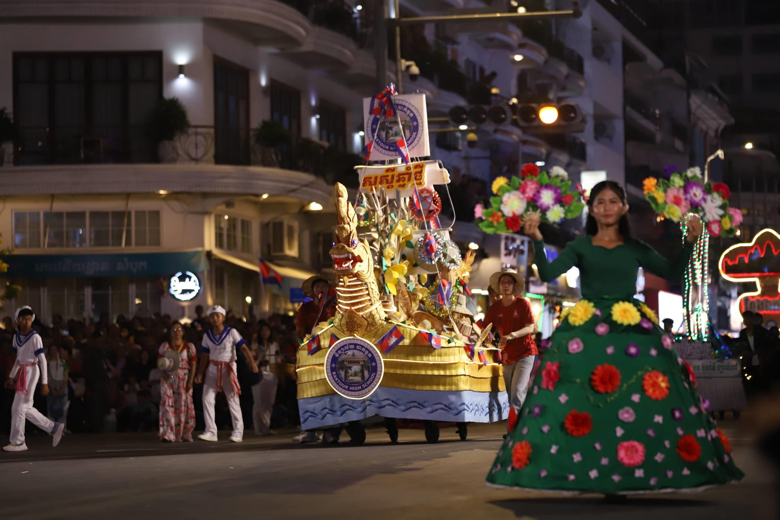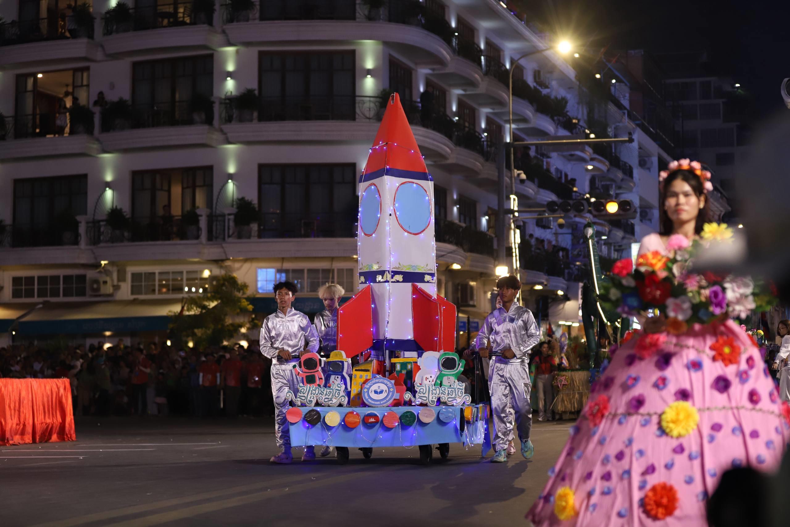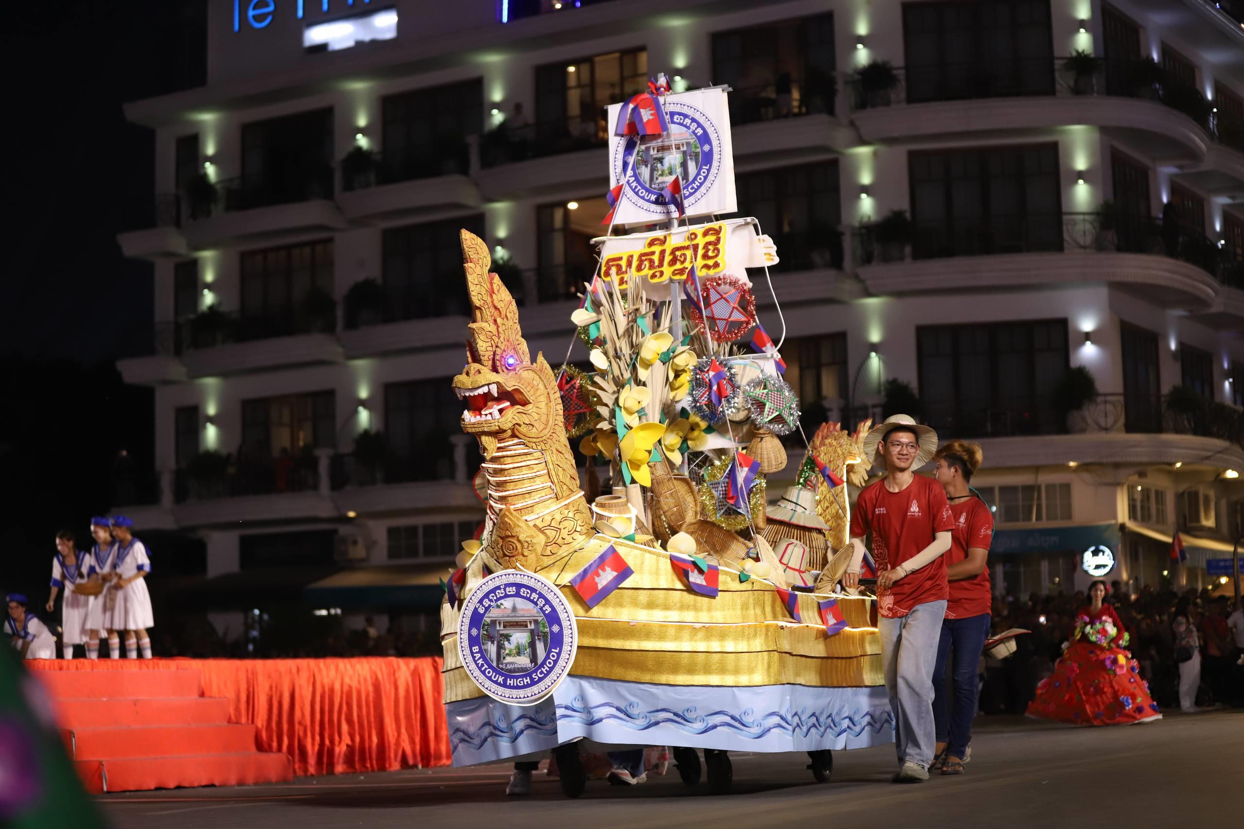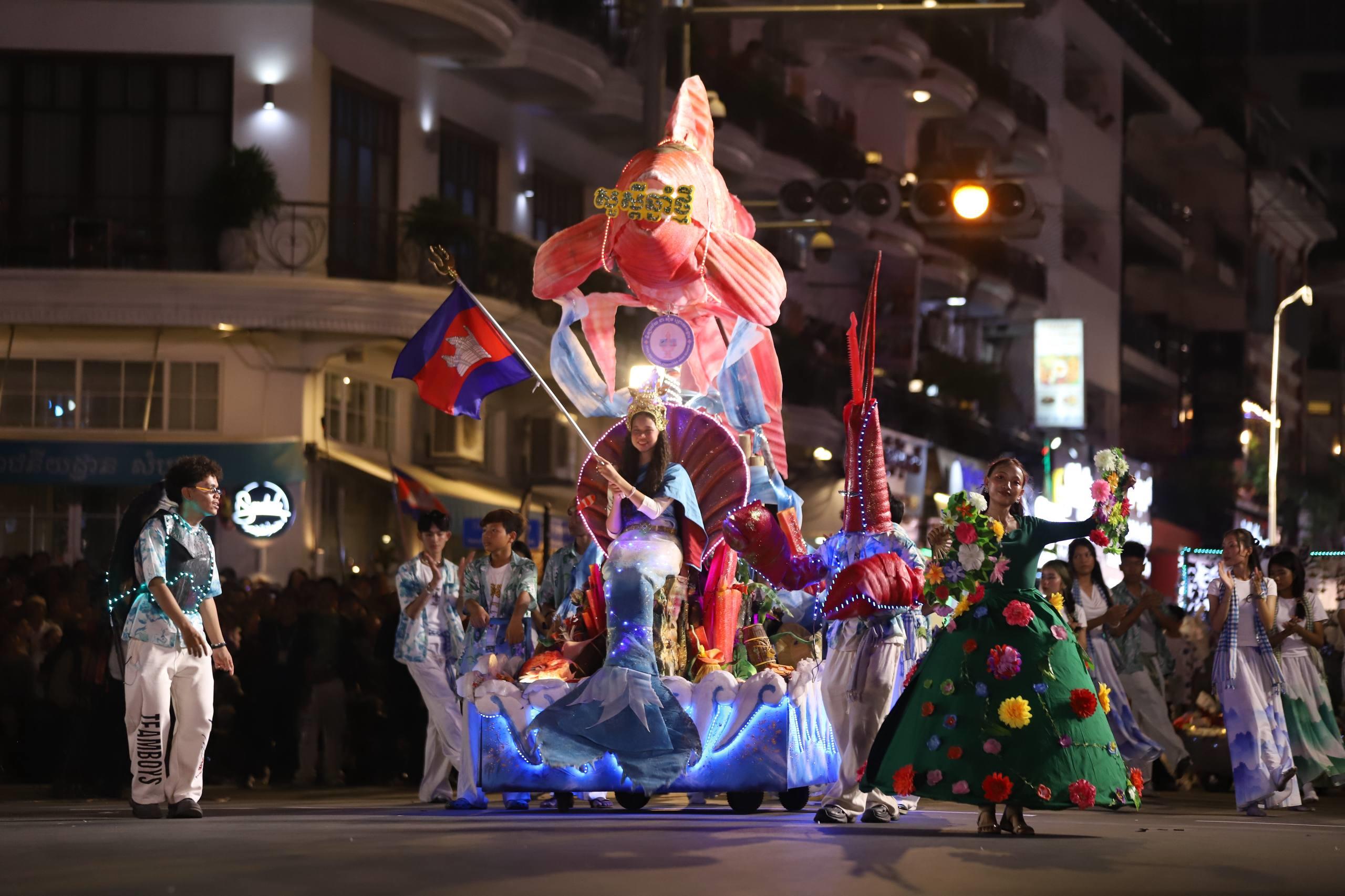 (ភ្នំពេញ)៖ លោក ឃួង ស្រេង អភិបាលរាជធានីភ្នំពេញ តំណាងលោក ហ៊ុន ម៉ានី ឧបនាយករដ្ឋមន្ត្រី រដ្ឋមន្ត្រីក្រសួងមុខងារសាធារណៈ និងជាប្រធានសហភាពសហព័ន្ធយុវជនកម្ពុជា (ស.ស.យ.ក.) និងលោកស្រី នៅល្ងាចថ្ងៃទី១៨ ខែមេសា ដែលជាថ្ងៃទី៥ នៃព្រឹត្តិការណ៍នគរសង្រា្កន្ត ឆ្នាំ២០២៦ ក្នុងពិធីបុណ្យចូលឆ្នាំថ្មីប្រពៃណីជាតិខ្មែរ ឆ្នាំមមី បានដឹកនាំយុវជនយ៉ាងច្រើនកុះករ ដង្ហែក្បួន នគរសង្ក្រាន្តឆ្នាំ២០២៦ លើកទី២ នៅបរិវេណផ្លូវថ្មើរជើងចតុមុខ មុខវត្តឧណ្ណាលោម។