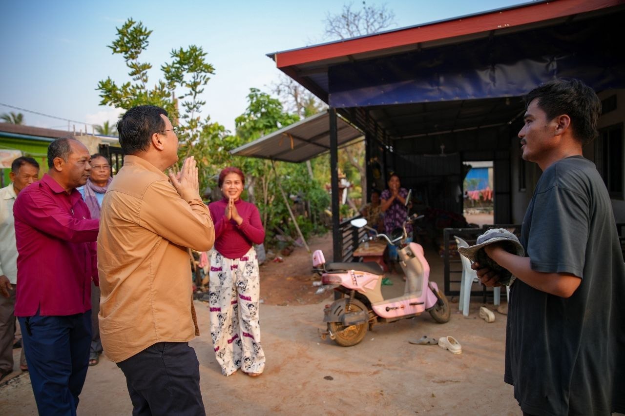 (បន្ទាយមានជ័យ)៖ លោក ឌិត ទីណា រដ្ឋមន្ត្រីក្រសួងកសិកម្ម រុក្ខាប្រមាញ់ និងនេសាទ និងជាប្រធានក្រុមការងាររាជរដ្ឋាភិបាលចុះមូលដ្ឋានខេត្តបន្ទាយមានជ័យ នៅរសៀលថ្ងៃទី១៨ ខែមេសា ឆ្នាំ២០២៦ បានអញ្ជើញចុះពិនិត្យ និងនាំយកជំនួយចែកជូនដល់បងប្អូនប្រជាពលរដ្ឋដែលរងផលប៉ះពាល់ដោយខ្យល់កន្ត្រាក់កាលពីថ្ងៃទី១៥ ខែមេសា ឆ្នាំ២០២៦ នៅភូមិគោកព្រេច ឃុំគោករមៀត ស្រុកថ្មពួក ខេត្តបន្ទាយមានជ័យ។