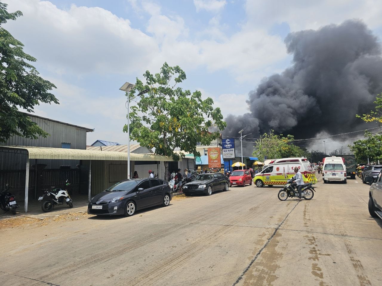 នៅពេលនេះកម្លាំងសមត្ថកិច្ច បាននិងកំពុងជួយអន្តរាគមន៍បាញ់ពន្លត់។
