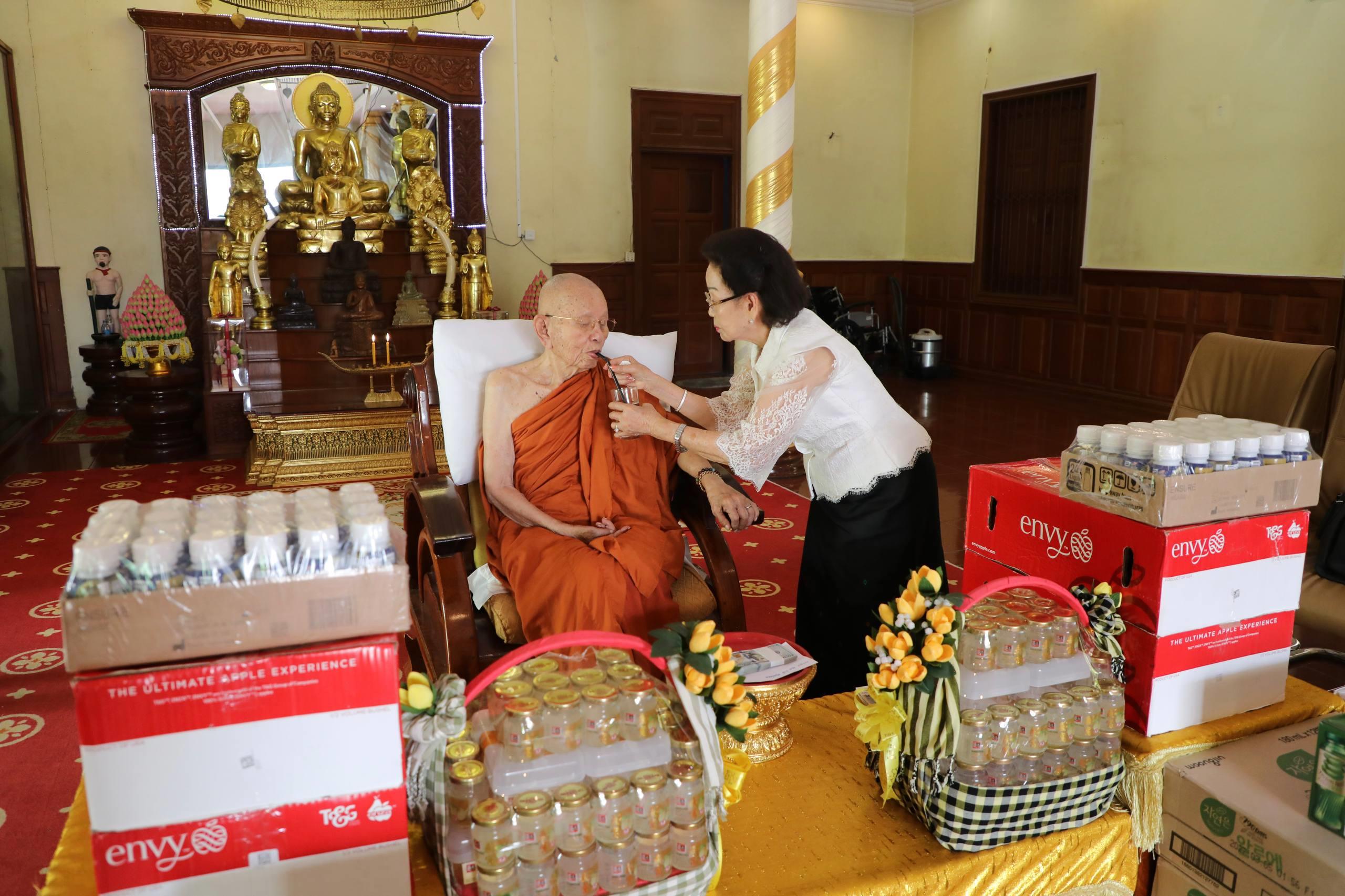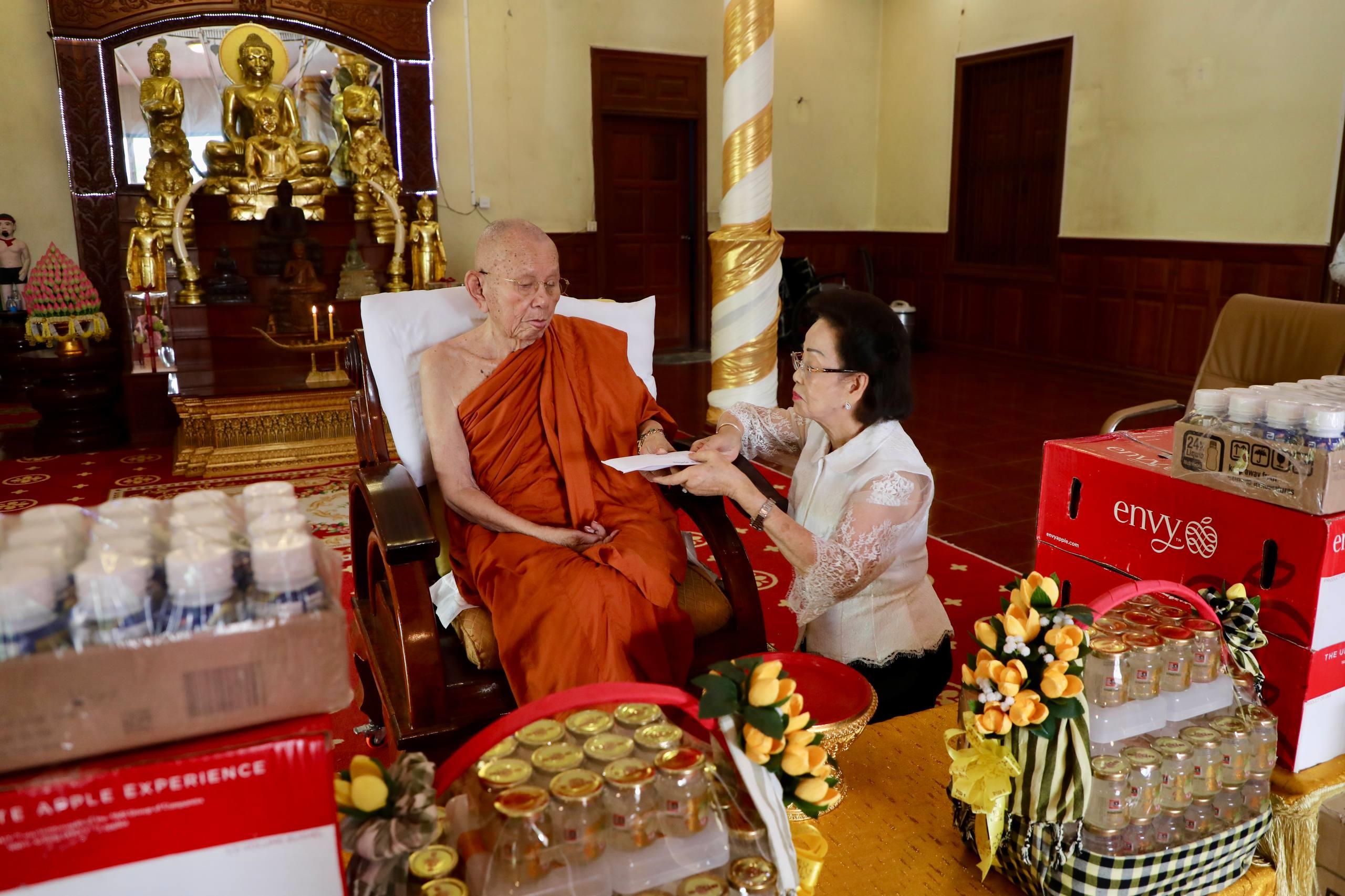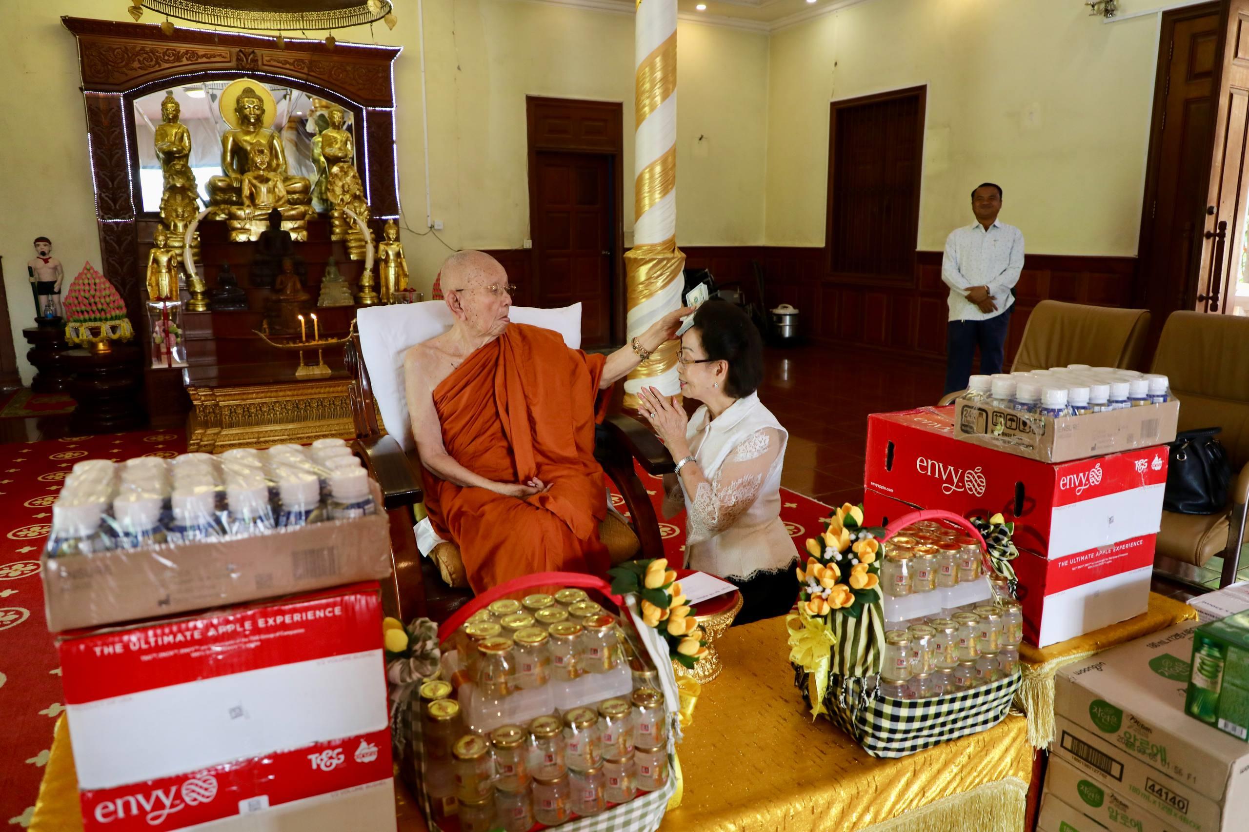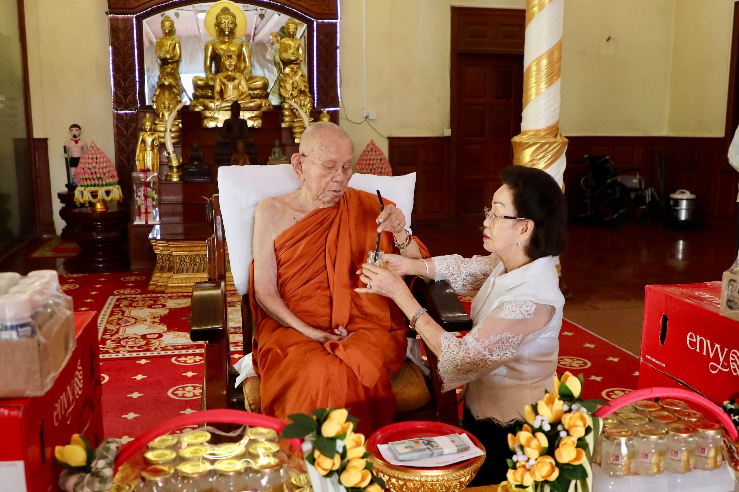 (ភ្នំពេញ)៖ នៅព្រឹកថ្ងៃអាទិត្យ ៣កើត ខែពិសាខ ឆ្នាំមមី អដ្ឋស័ក ពុទ្ធសករាជ ២៥៦៩ ត្រូវនឹងថ្ងៃទី១៩ ខែមេសា ឆ្នាំ២០២៦នេះ សម្តេចកិត្តិព្រឹទ្ធបណ្ឌិត ប៊ុន រ៉ានី ហ៊ុនសែន ប្រធានកាកបាទក្រហមកម្ពុជា បានចាត់ឱ្យលោកស្រីបណ្ឌិត អ៊ុក ម៉ាលី សមាជិកាព្រឹទ្ធសភានៃព្រះរាជាណាចក្រកម្ពុជា និងជាអគ្គហេរញ្ញិកកាកបាទក្រហមកម្ពុជា ជាតំណាងដ៏ខ្ពង់ខ្ពស់ អញ្ជើញចូលក្រាបថ្វាយបង្គំ និងនាំយកទេយ្យវត្ថុ រួមទាំងបច្ច័យចំនួន ១០,០០០ដុល្លារ (មួយម៉ឺនដុល្លារអាមេរិក) ថ្វាយប្រគេនសម្តេចព្រះអគ្គមហាសង្ឃរាជាធិបតី កិត្តិឧទ្ទេសបណ្ឌិត នន្ទ ង៉ែត សម្តេចព្រះមហាសង្ឃរាជ នៃព្រះរាជាណាចក្រកម្ពុជា និងជាសម្តេចព្រះចៅអធិការវត្តបទុមវតីរាជវរារាម ក្នុងវរោកាសនៃព្រះរាជពិធីបុណ្យចម្រើនព្រះជន្មវស្សារបស់សម្តេចជាអម្ចាស់ គម្រប់១០២ យាងចូល១០៣ព្រះវស្សា។
