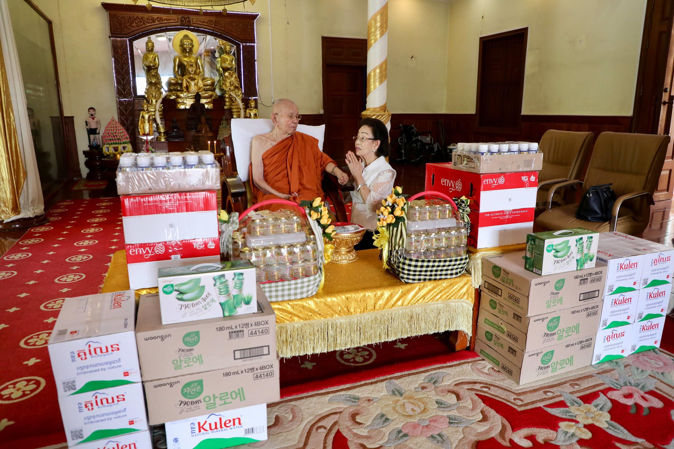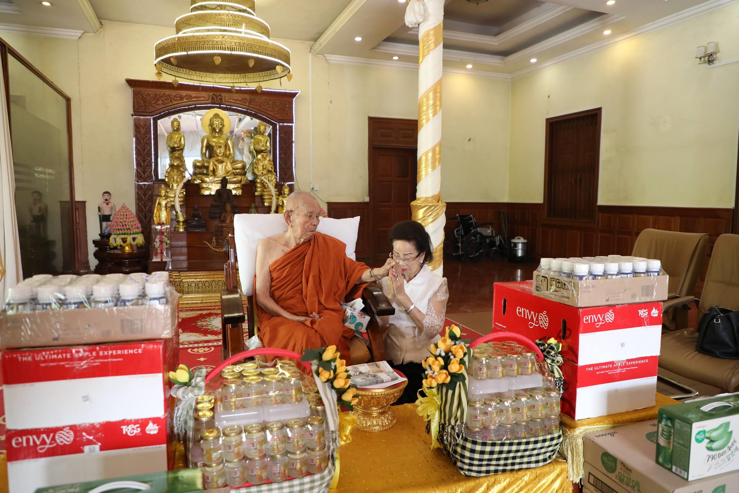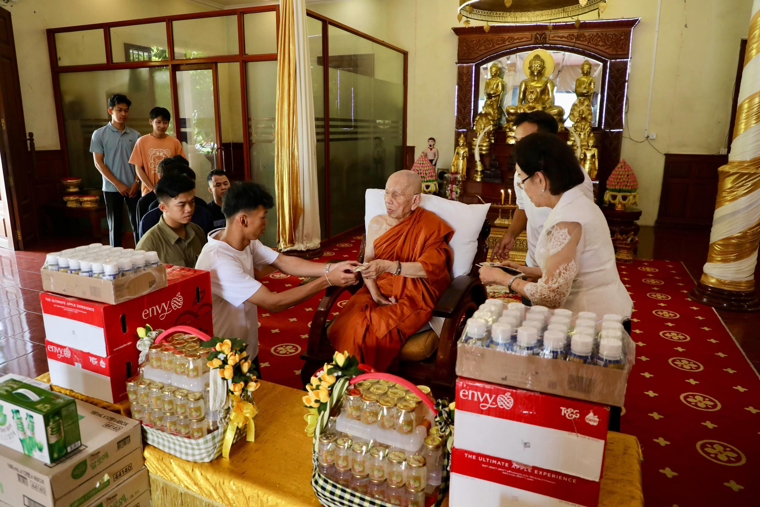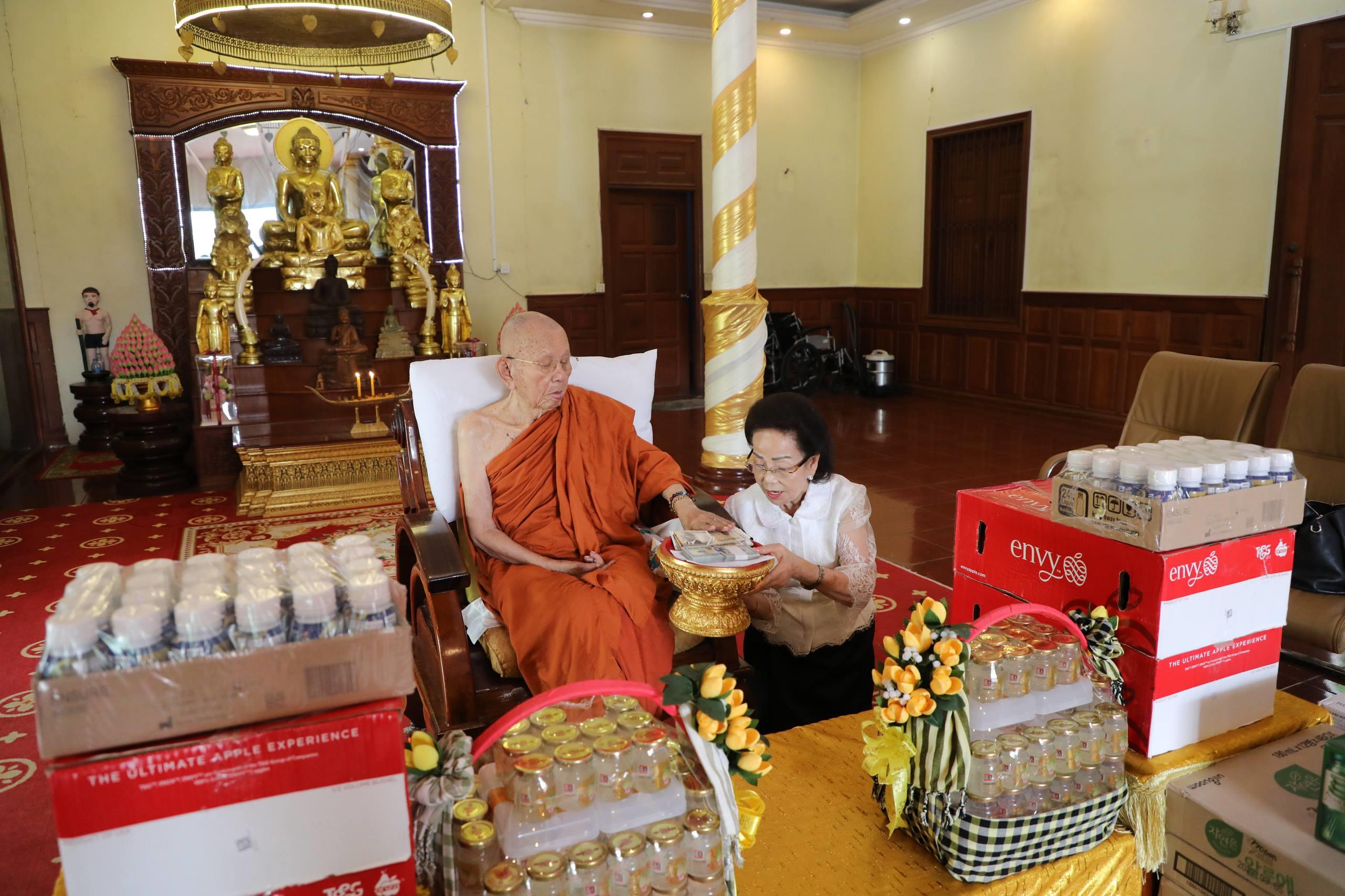 (ភ្នំពេញ)៖ នៅព្រឹកថ្ងៃអាទិត្យ ៣កើត ខែពិសាខ ឆ្នាំមមី អដ្ឋស័ក ពុទ្ធសករាជ ២៥៦៩ ត្រូវនឹងថ្ងៃទី១៩ ខែមេសា ឆ្នាំ២០២៦នេះ សម្តេចកិត្តិព្រឹទ្ធបណ្ឌិត ប៊ុន រ៉ានី ហ៊ុនសែន ប្រធានកាកបាទក្រហមកម្ពុជា បានចាត់ឱ្យលោកស្រីបណ្ឌិត អ៊ុក ម៉ាលី សមាជិកាព្រឹទ្ធសភានៃព្រះរាជាណាចក្រកម្ពុជា និងជាអគ្គហេរញ្ញិកកាកបាទក្រហមកម្ពុជា ជាតំណាងដ៏ខ្ពង់ខ្ពស់ អញ្ជើញចូលក្រាបថ្វាយបង្គំ និងនាំយកទេយ្យវត្ថុ រួមទាំងបច្ច័យចំនួន ១០,០០០ដុល្លារ (មួយម៉ឺនដុល្លារអាមេរិក) ថ្វាយប្រគេនសម្តេចព្រះអគ្គមហាសង្ឃរាជាធិបតី កិត្តិឧទ្ទេសបណ្ឌិត នន្ទ ង៉ែត សម្តេចព្រះមហាសង្ឃរាជ នៃព្រះរាជាណាចក្រកម្ពុជា និងជាសម្តេចព្រះចៅអធិការវត្តបទុមវតីរាជវរារាម ក្នុងវរោកាសនៃព្រះរាជពិធីបុណ្យចម្រើនព្រះជន្មវស្សារបស់សម្តេចជាអម្ចាស់ គម្រប់១០២ យាងចូល១០៣ព្រះវស្សា។